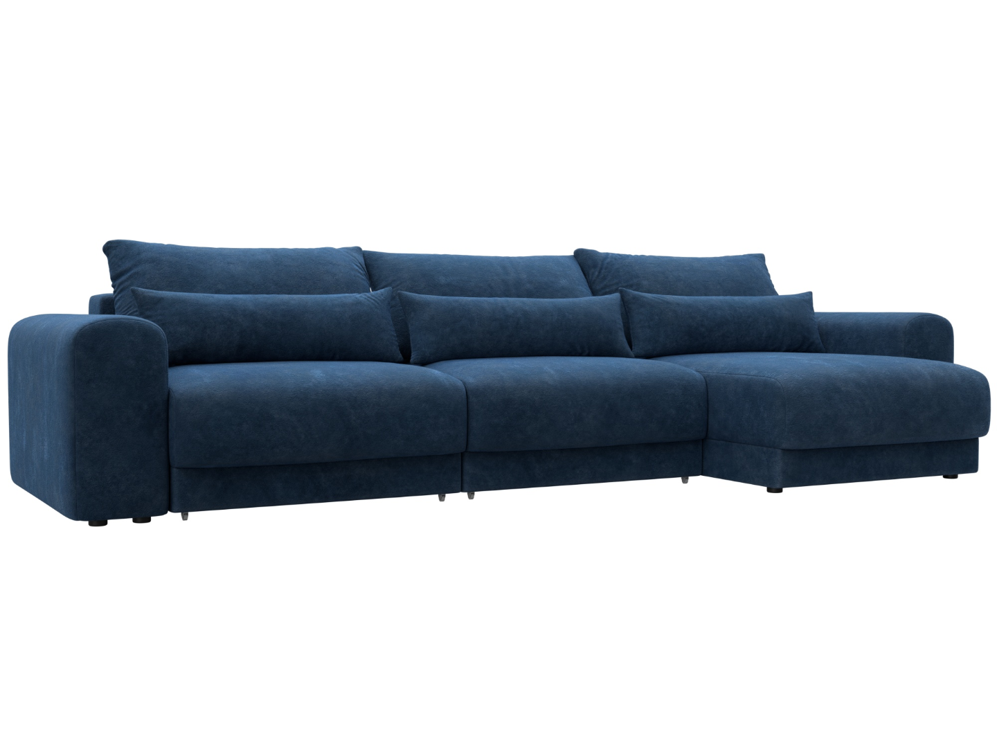 Диван угловой Лига-056 НПБ Лонг угол универсальный Синий, Велюр