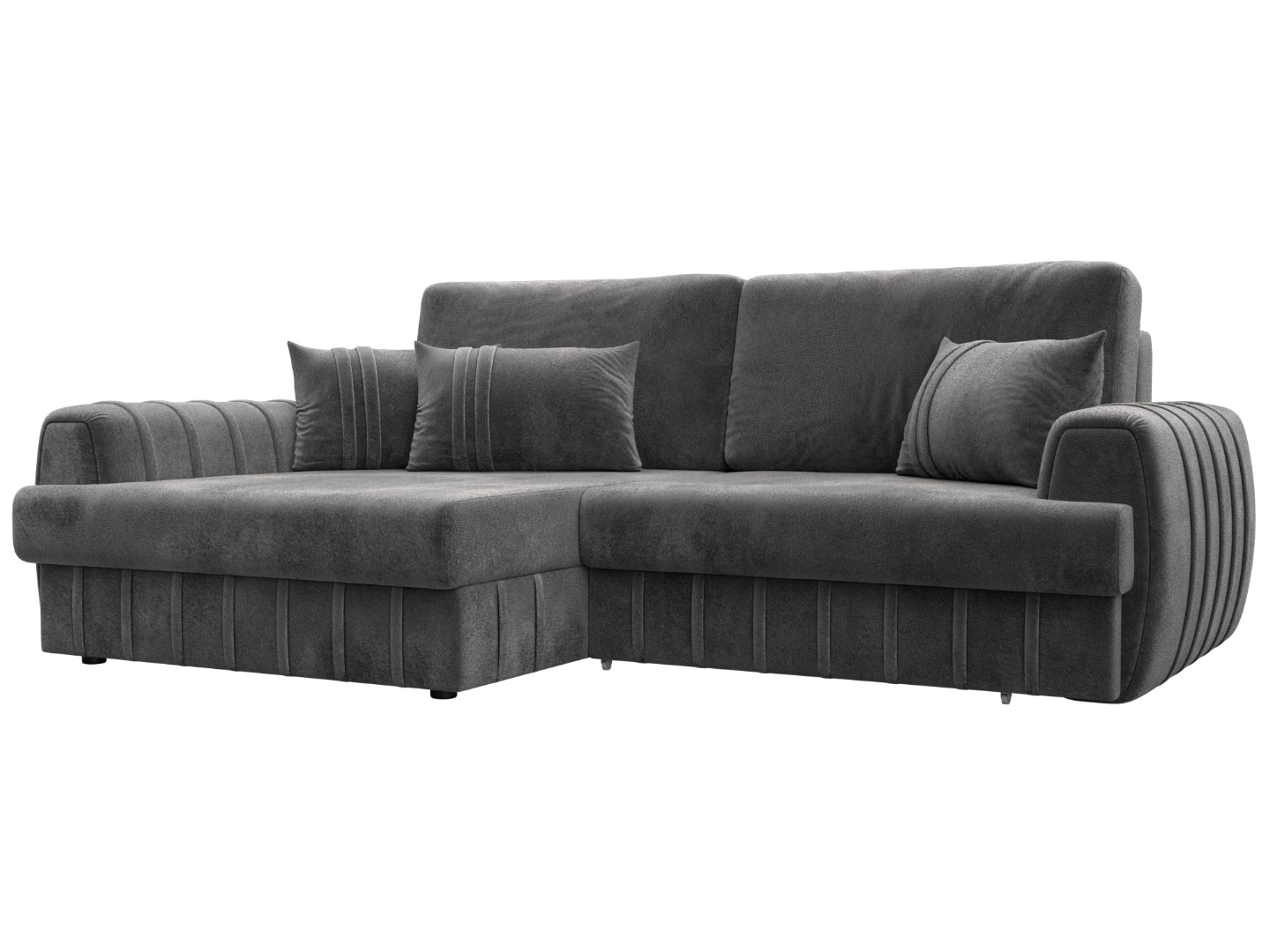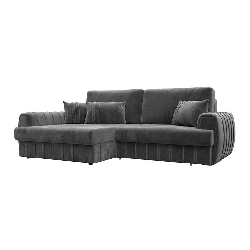 Диван угловой Лига-057 НПБ угол левый Серый, Велюр