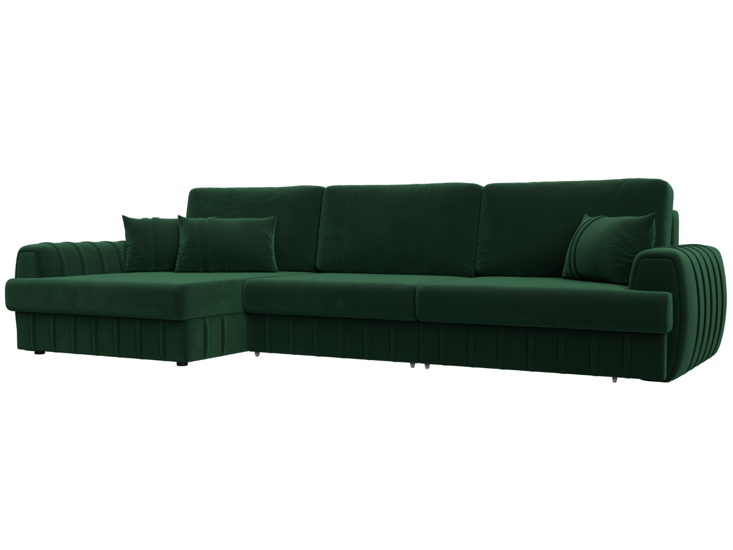 Диван угловой Лига-057 НПБ Лонг угол левый Зеленый, Велюр