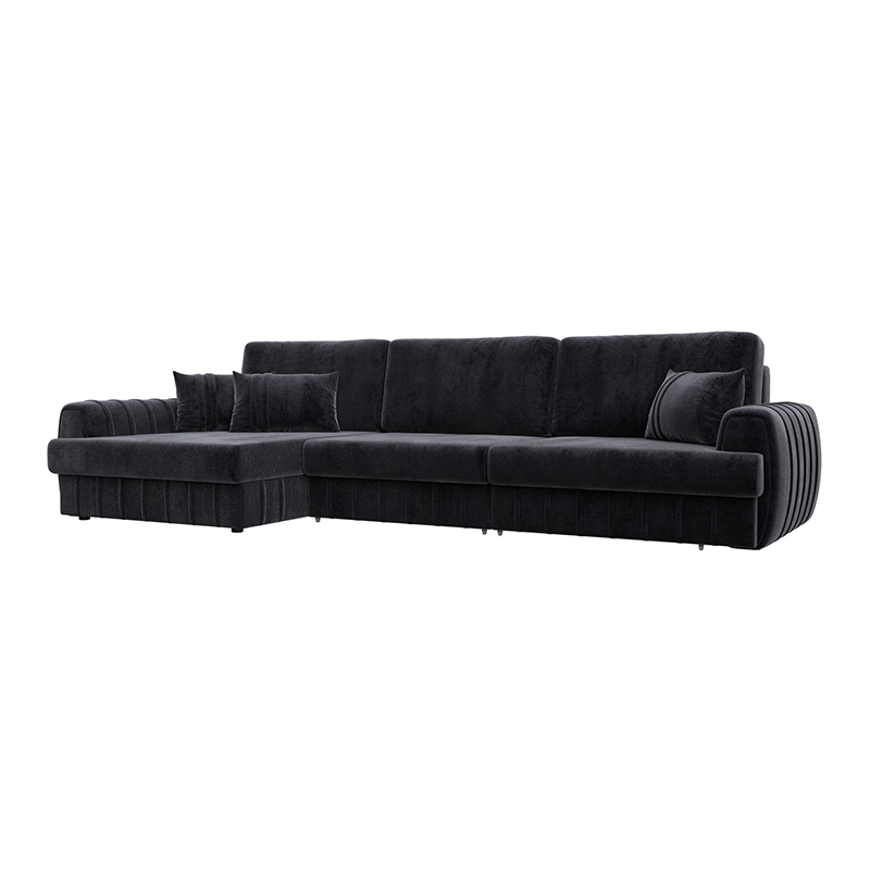 Диван угловой Лига-057 НПБ Лонг угол левый Темно-серый, Велюр