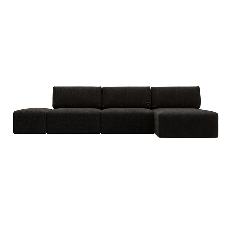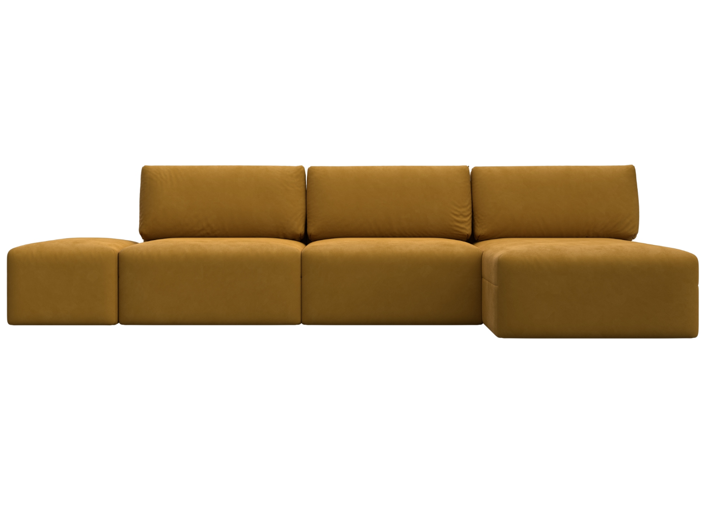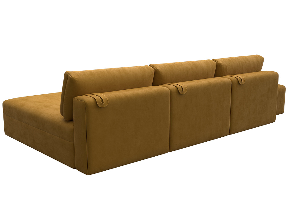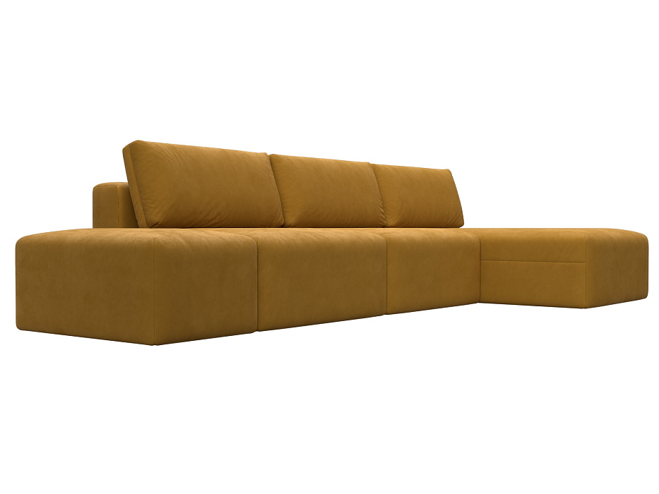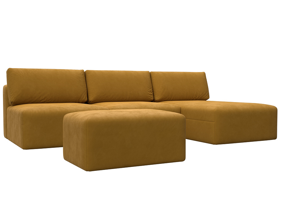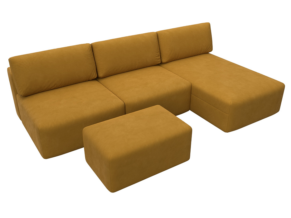 Диван угловой модульный с пуфом Лига-060 НПБ Лонг угол универсальный Желтый, Велюр
