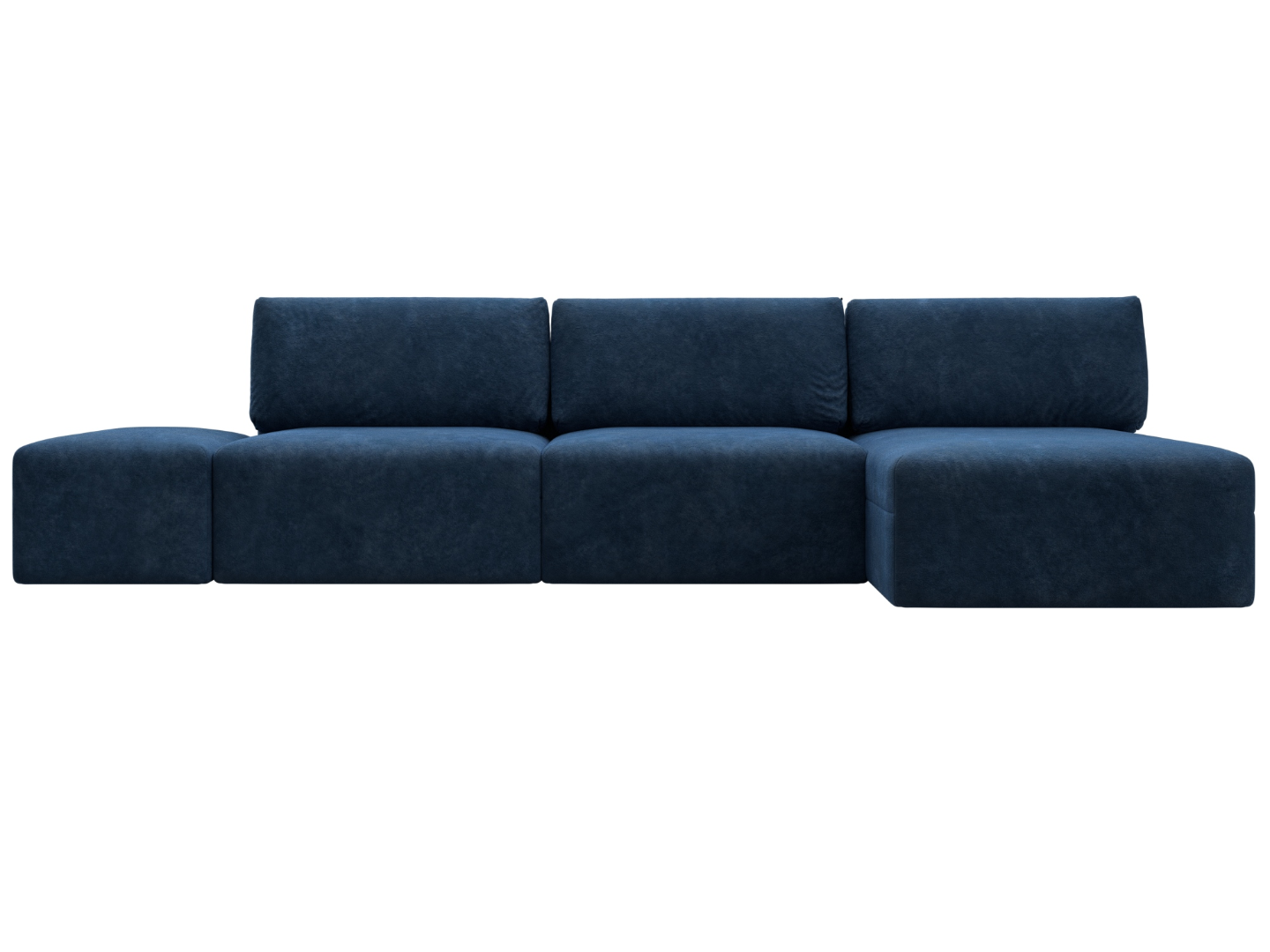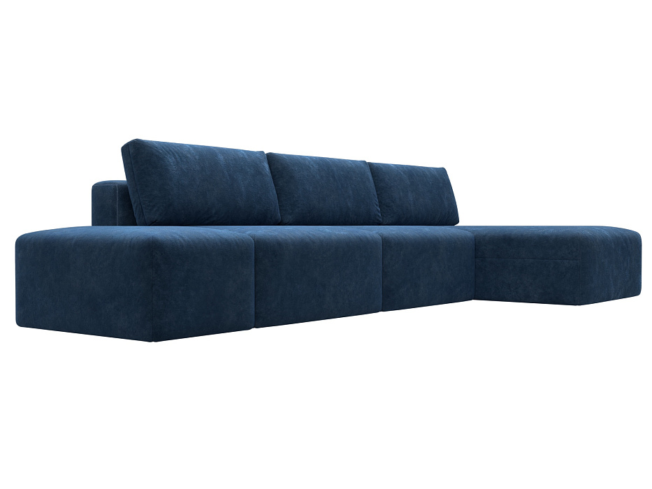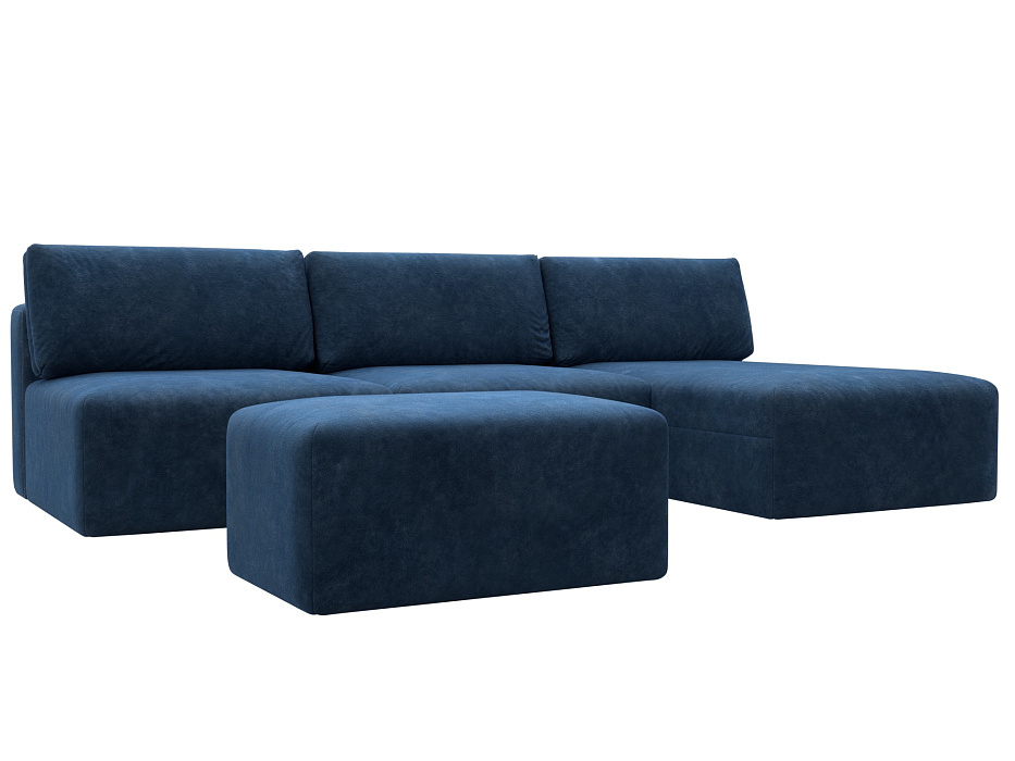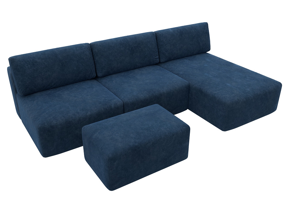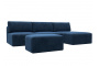 Диван угловой модульный с пуфом Лига-060 НПБ Лонг угол универсальный Синий, Велюр