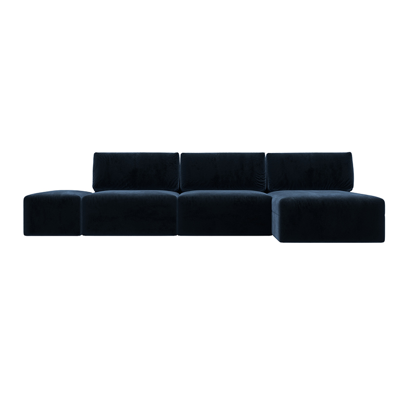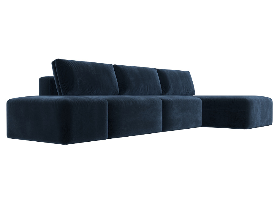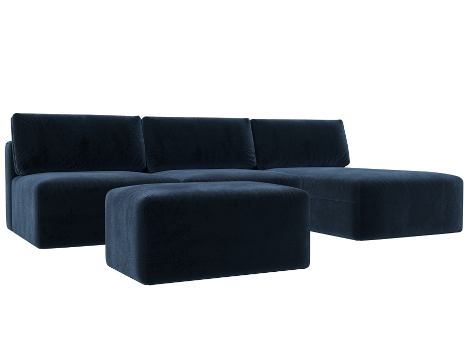 Диван угловой модульный с пуфом Лига-060 НПБ Лонг угол универсальный Синий, Велюр