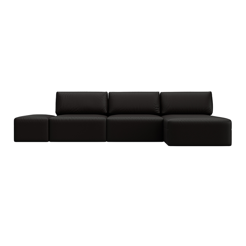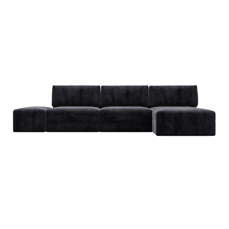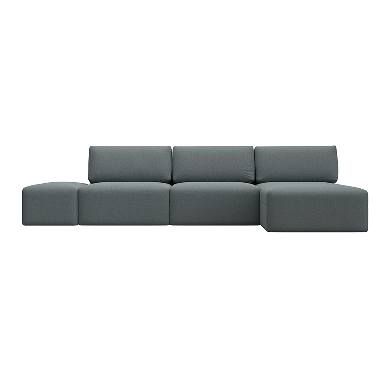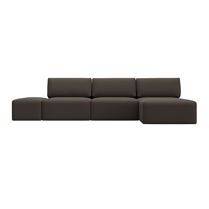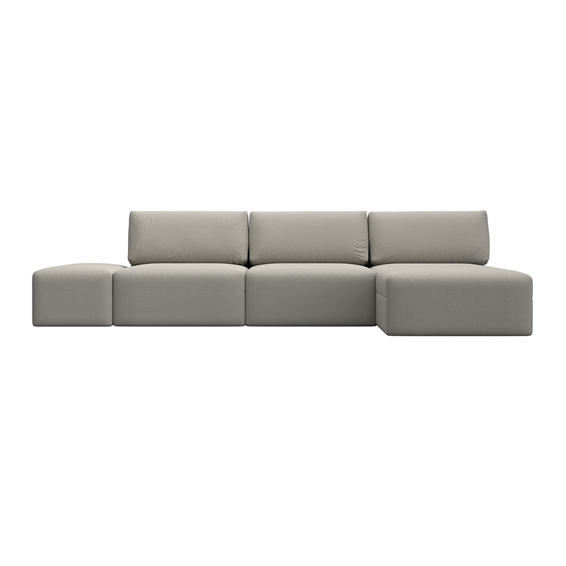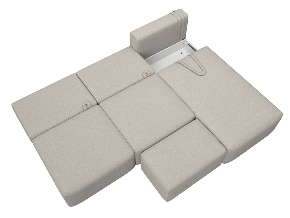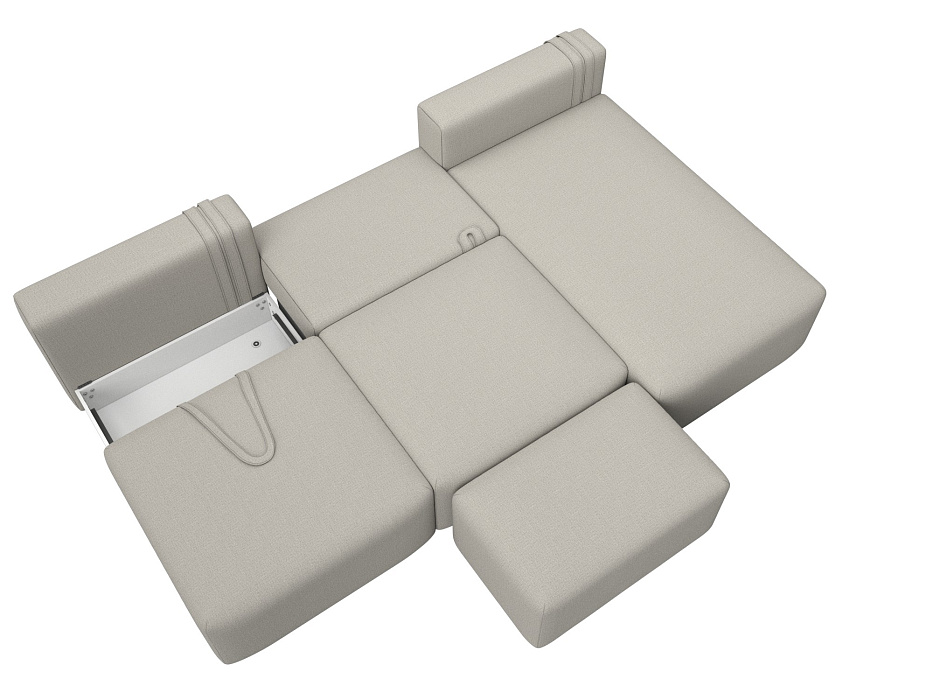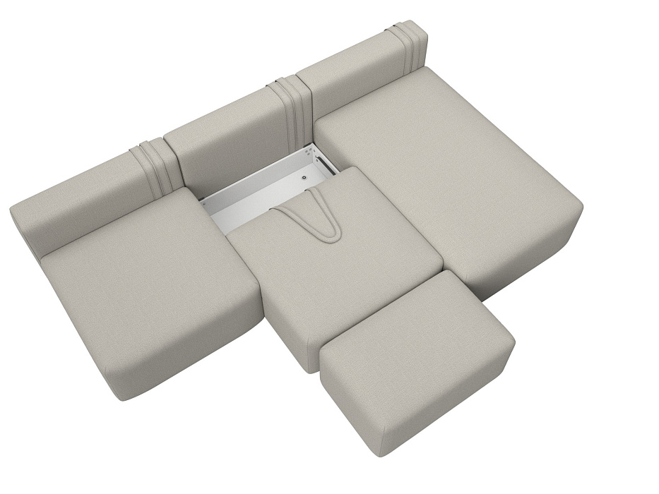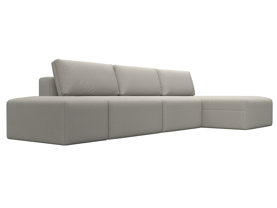 Диван угловой модульный с пуфом Лига-060 НПБ Лонг угол универсальный Бежевый, Рогожка