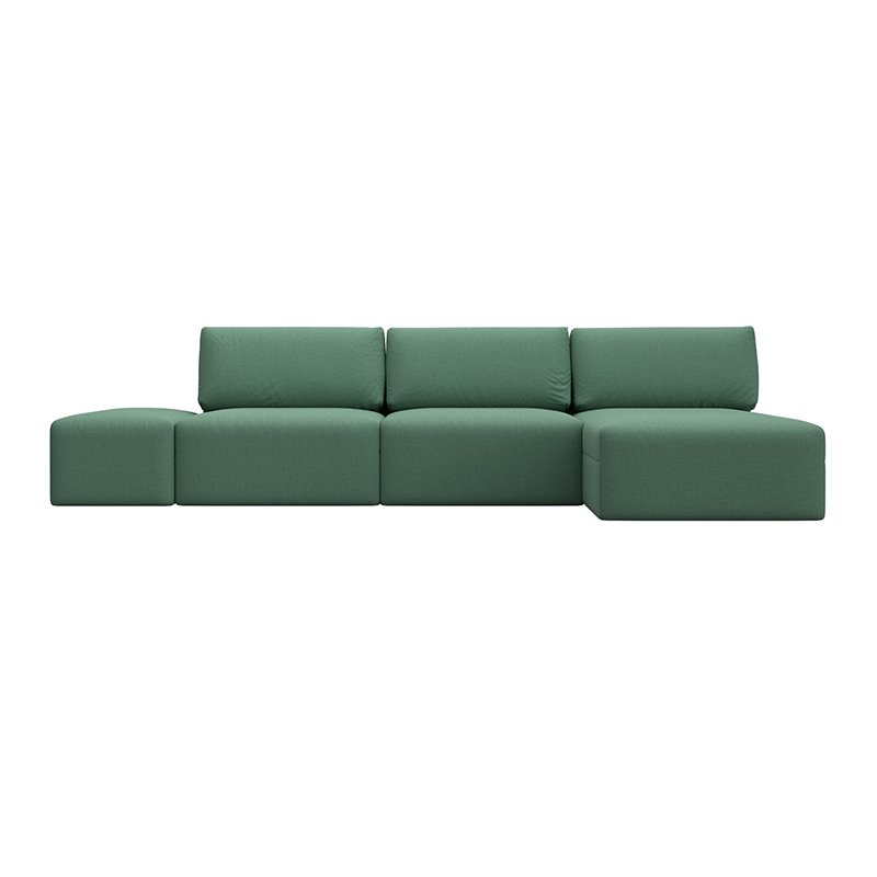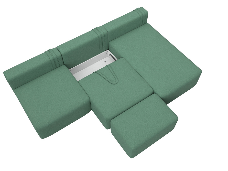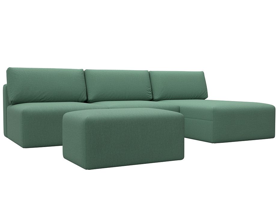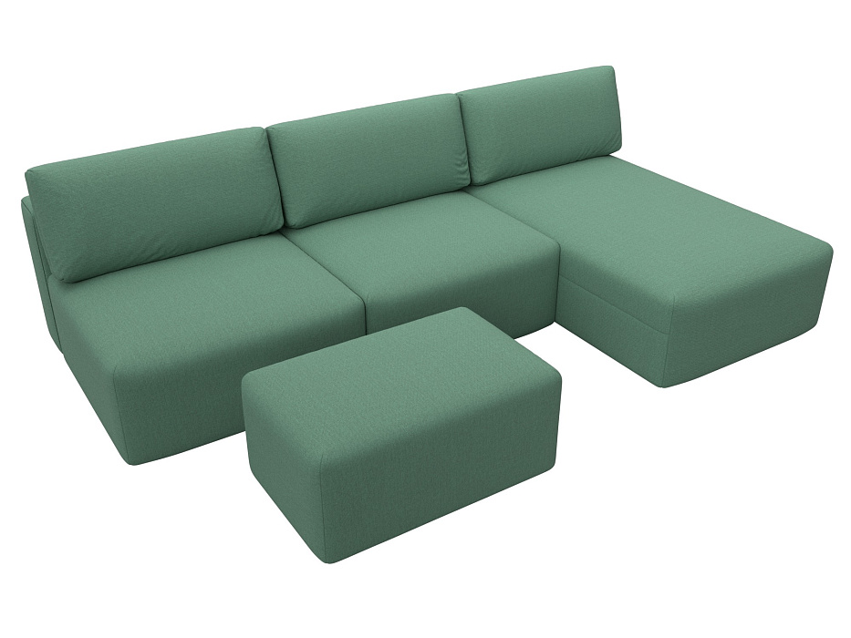 Диван угловой модульный с пуфом Лига-060 НПБ Лонг угол универсальный Зеленый, Рогожка