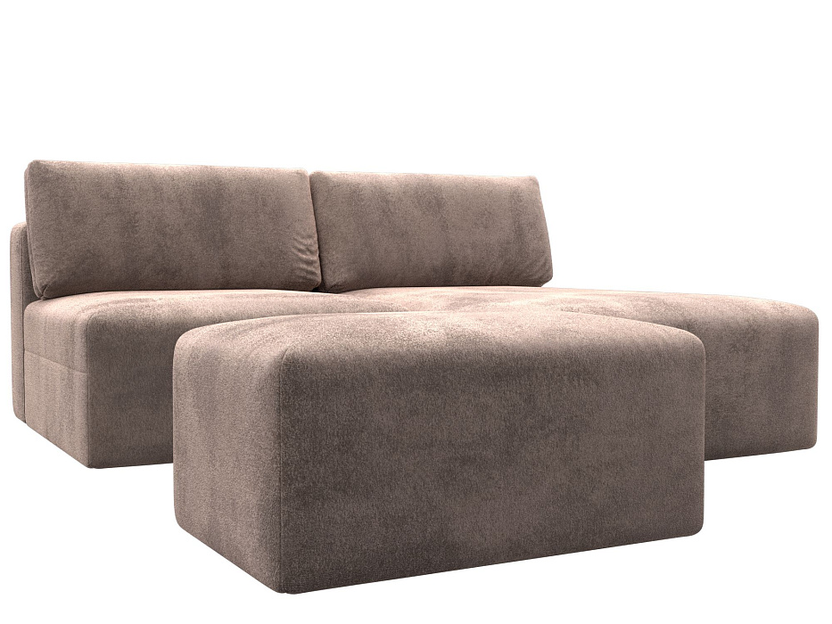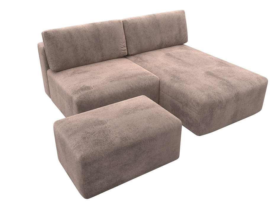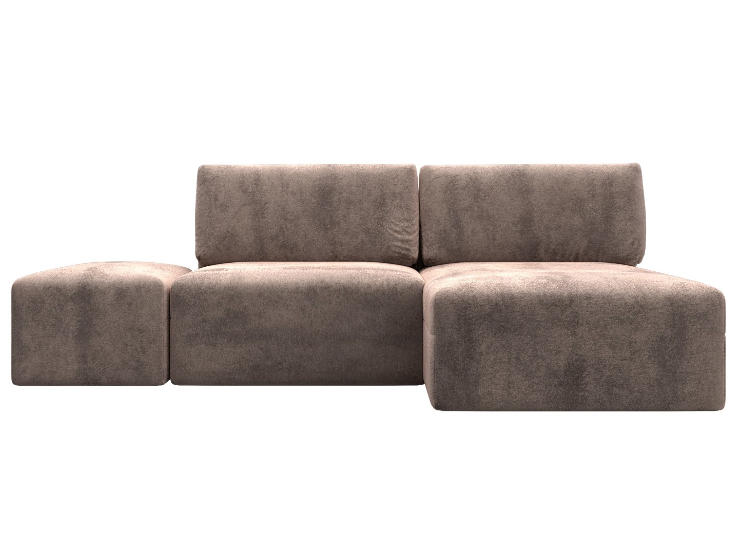 Диван угловой модульный с пуфом Лига-060 НПБ угол универсальный, TOWER 05 бежевый, Велюр