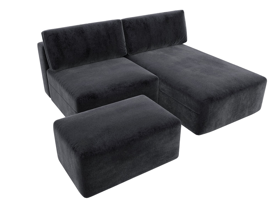 Диван угловой модульный с пуфом Лига-060 НПБ угол универсальный, TOWER 11 темно-серый, Велюр