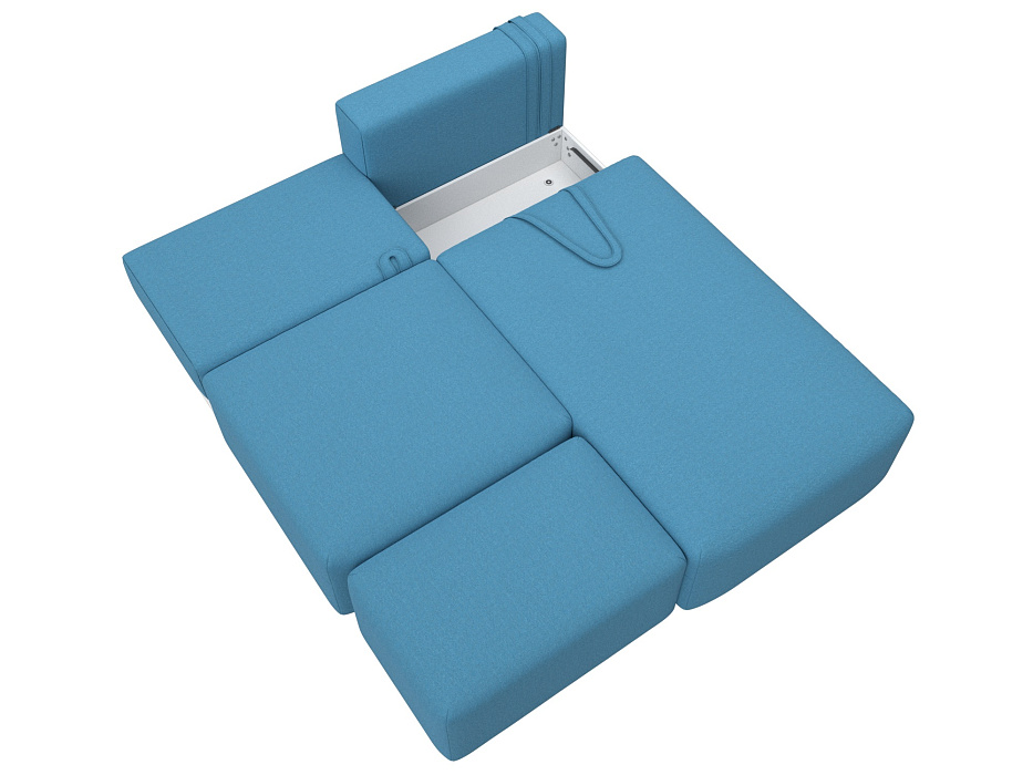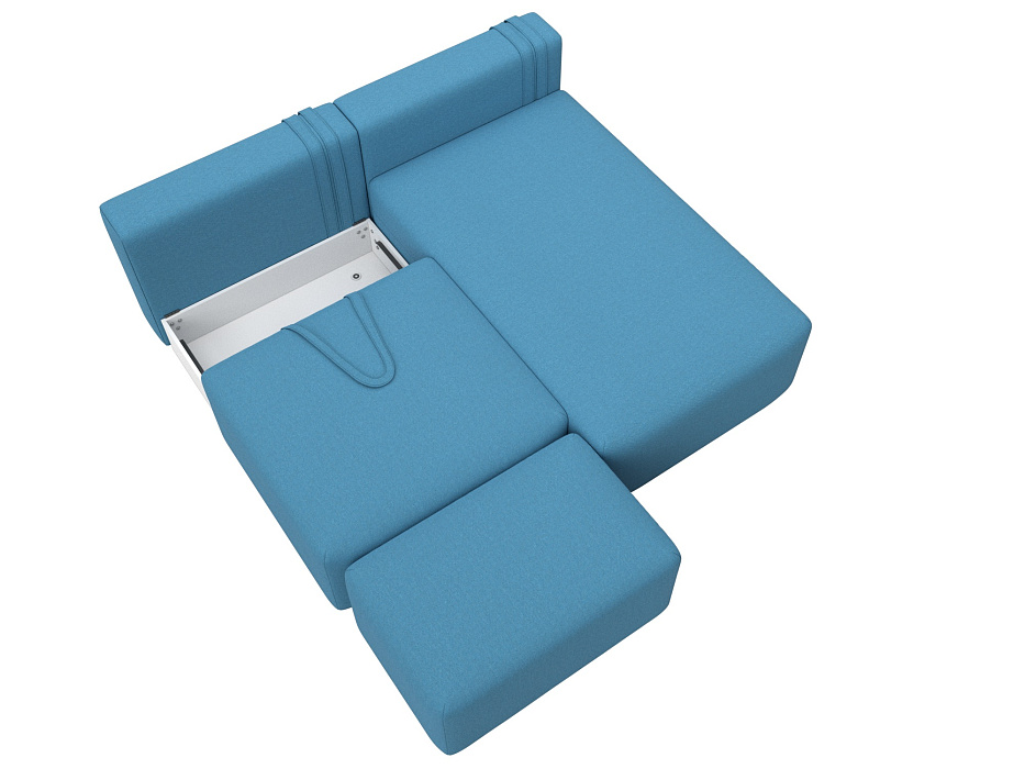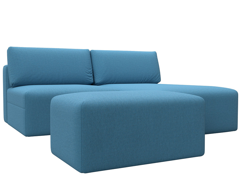 Диван угловой модульный с пуфом Лига-060 НПБ угол универсальный, Амур 10 голубой, Рогожка