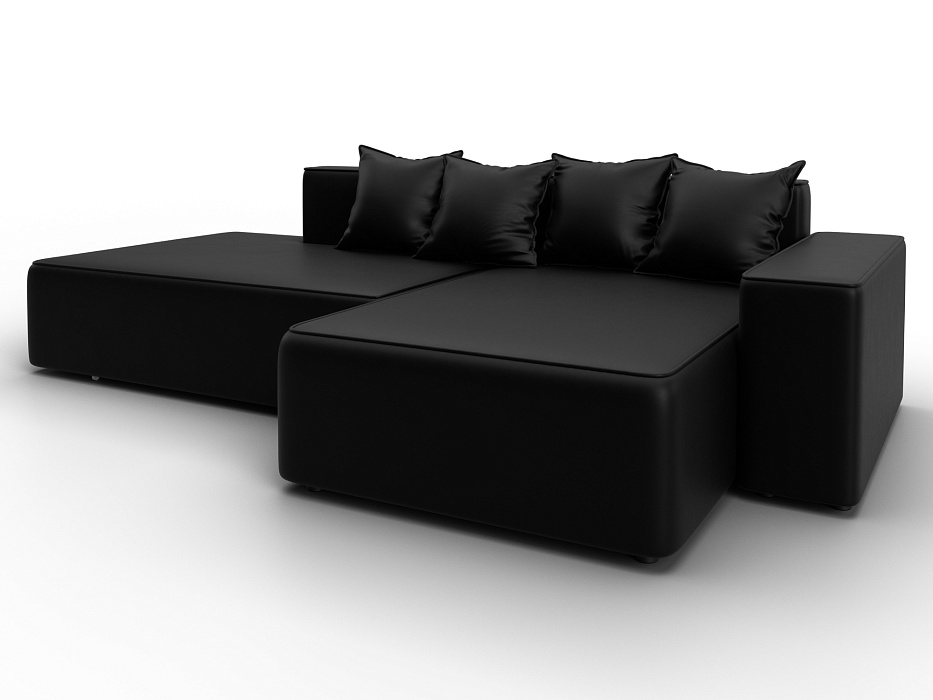 Диван угловой Лига-079 угол правый Черный, Экокожа
