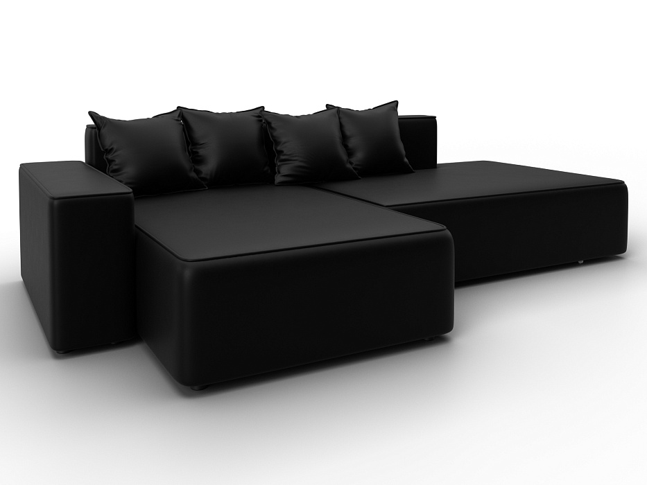 Диван угловой Лига-079 угол левый Черный, Экокожа