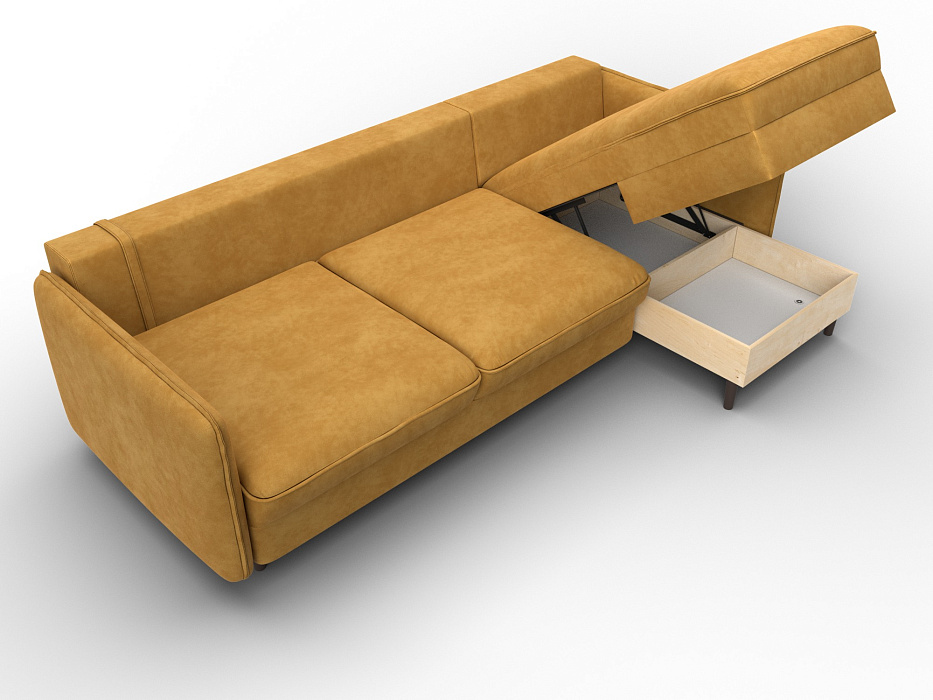 Диван угловой Лига-064 НПБ угол универсальный, BRUT 10 желтый, Велюр