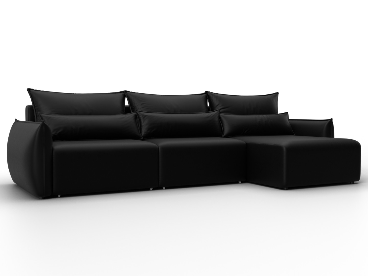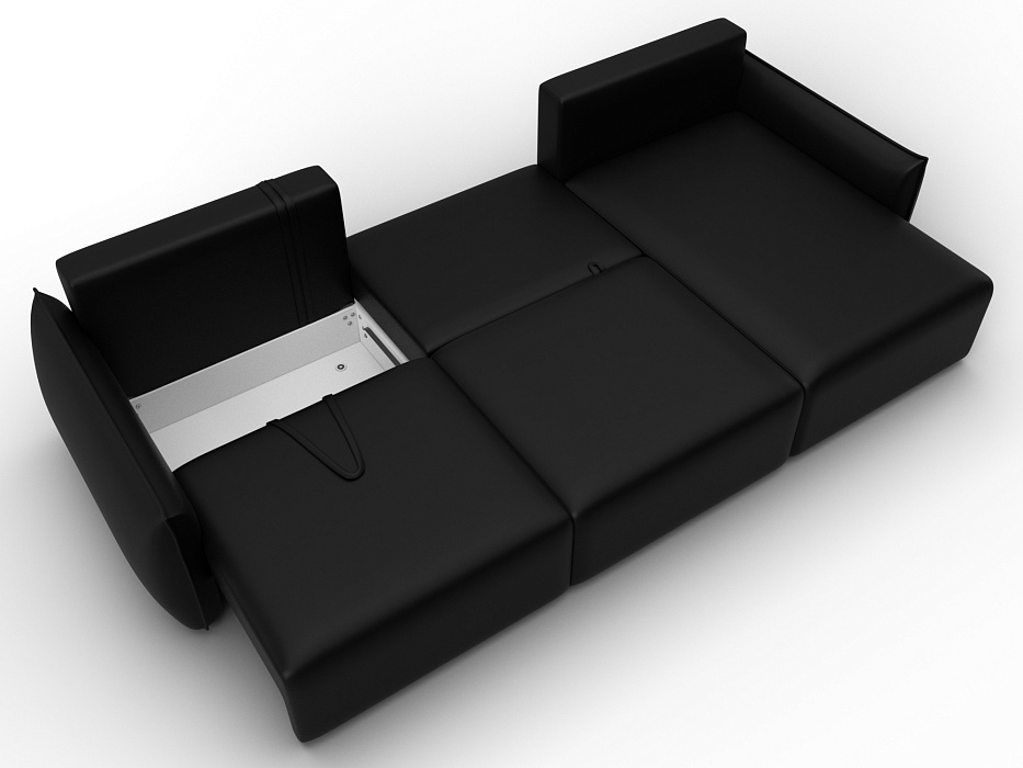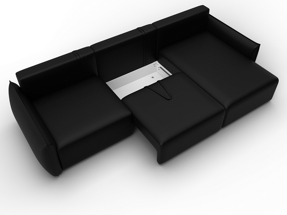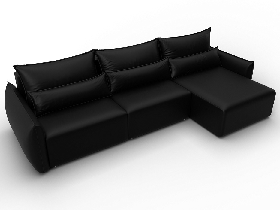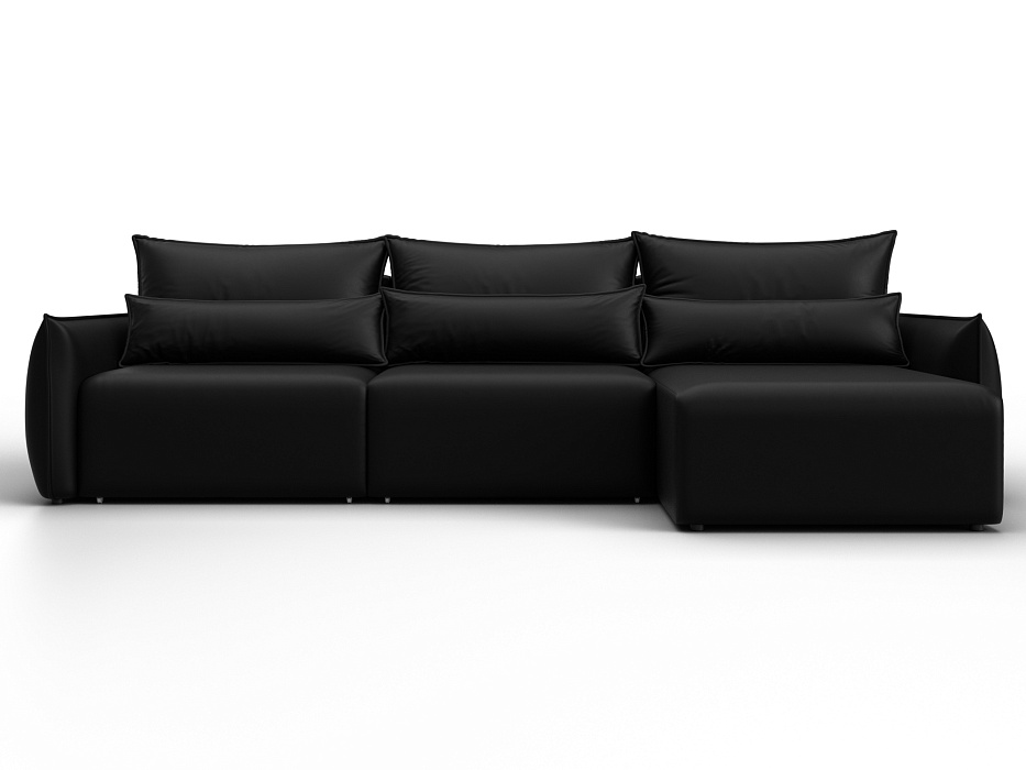 Диван угловой Лига-051 НПБ Лонг угол универсальный, GRIFON 18 черный, Экокожа