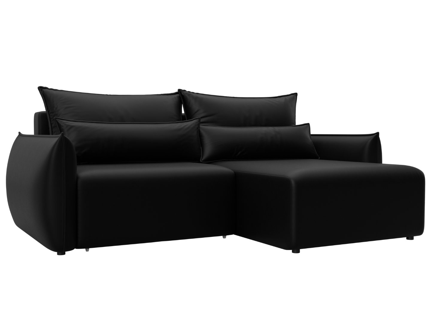 Диван угловой Лига-051 НПБ угол универсальный Черный, Экокожа