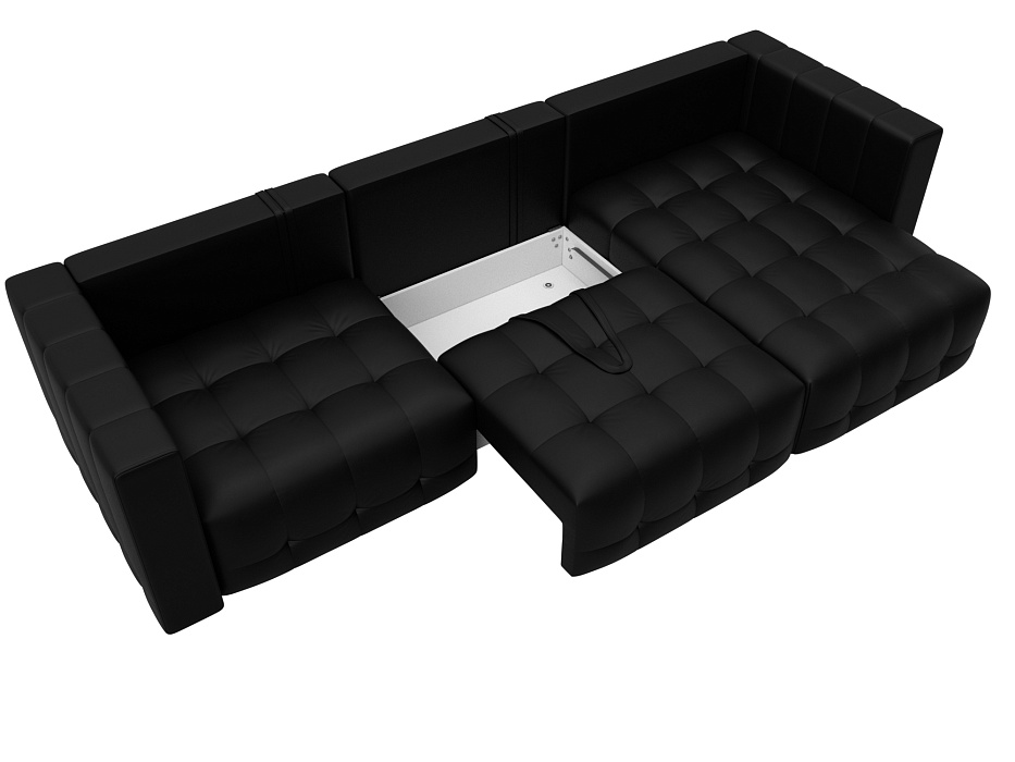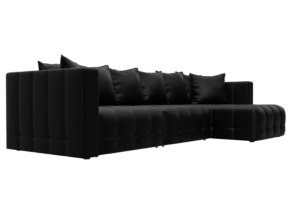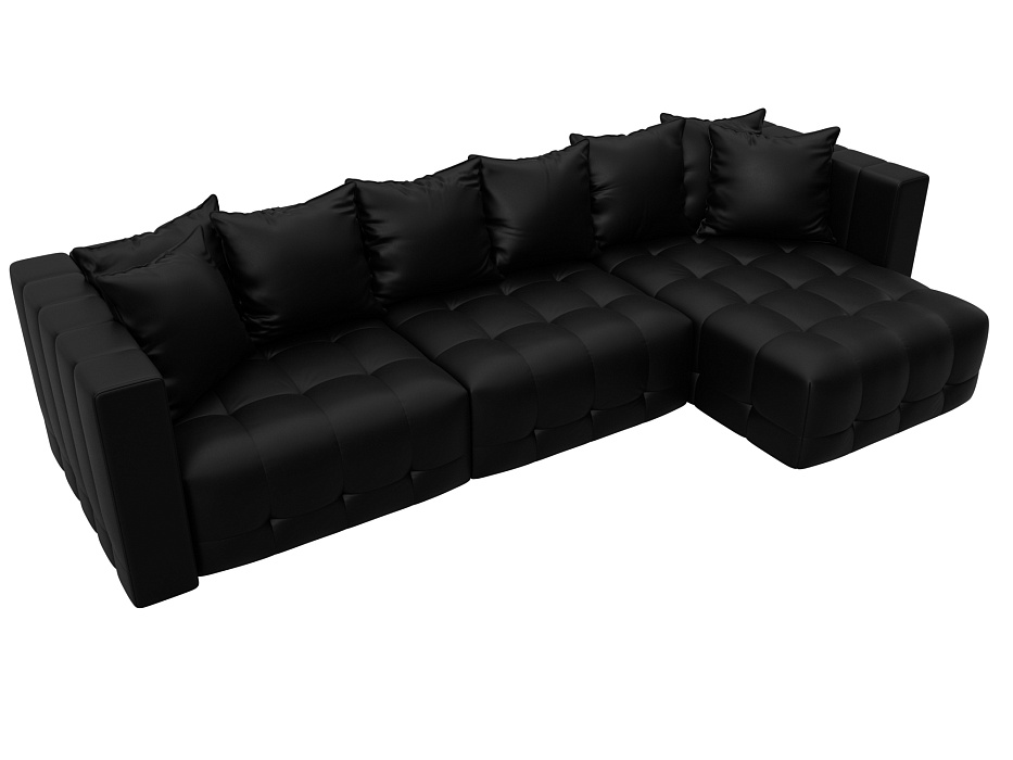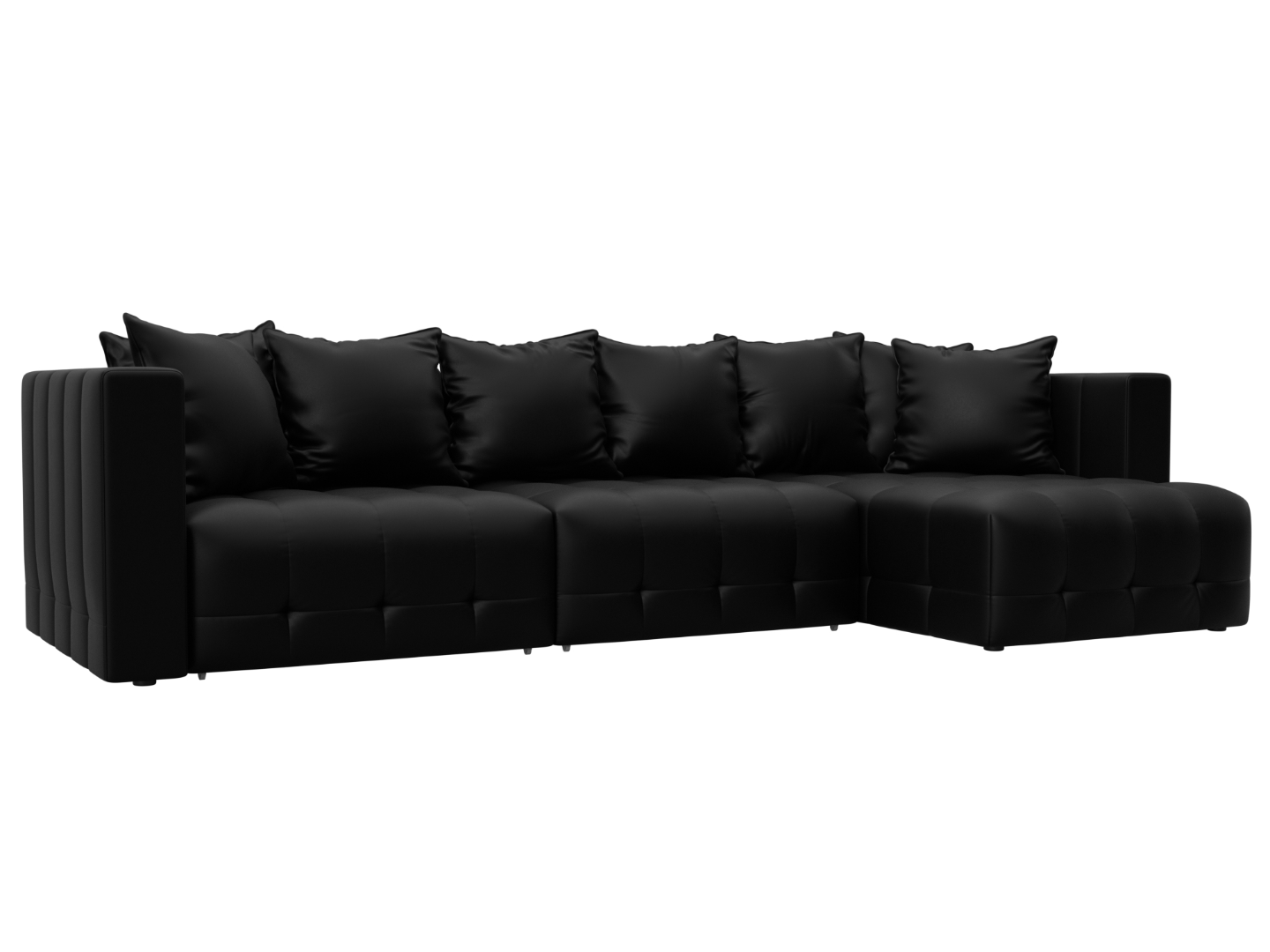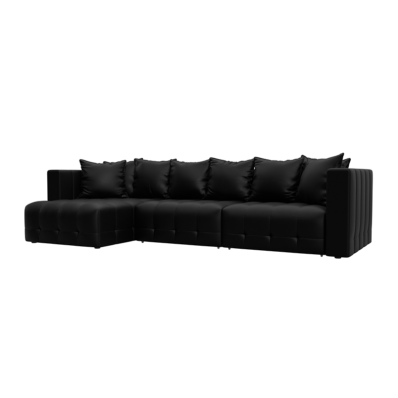 Диван угловой Лига-052 НПБ Лонг угол универсальный Черный, Экокожа