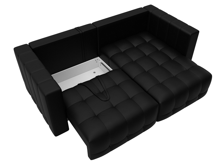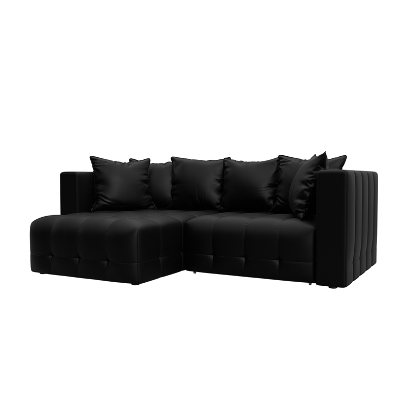 Диван угловой Лига-052 НПБ угол универсальный Черный, Экокожа