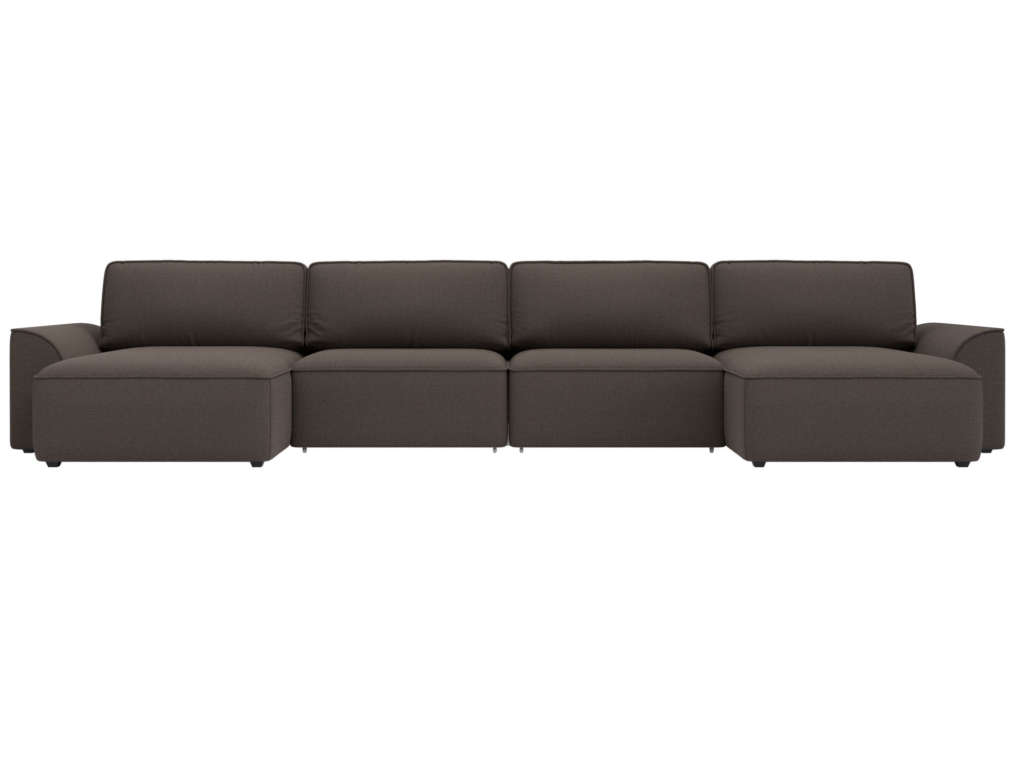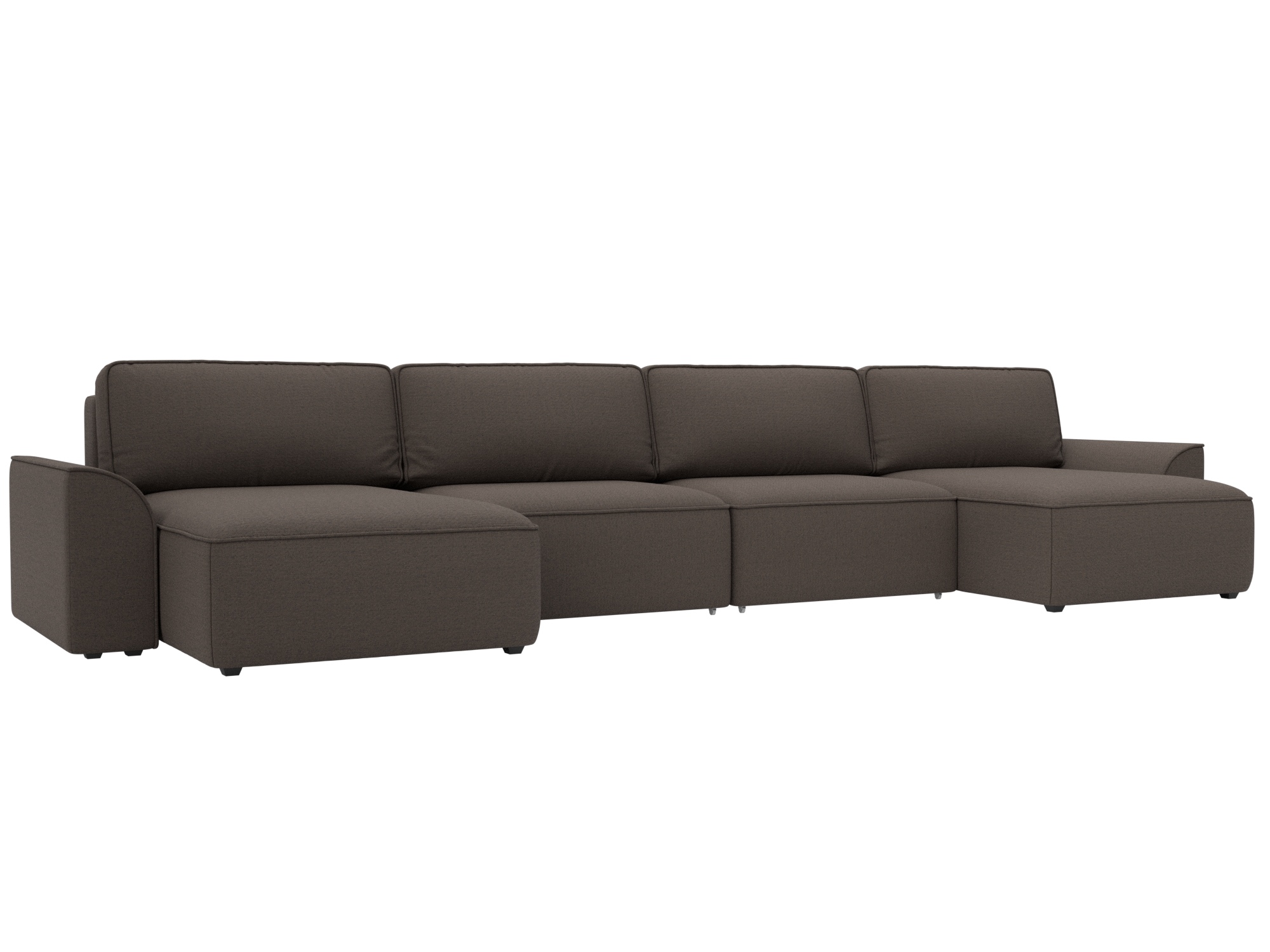 Диван П-образный Лига-048 НПБ лонг коричневый, Рогожка
