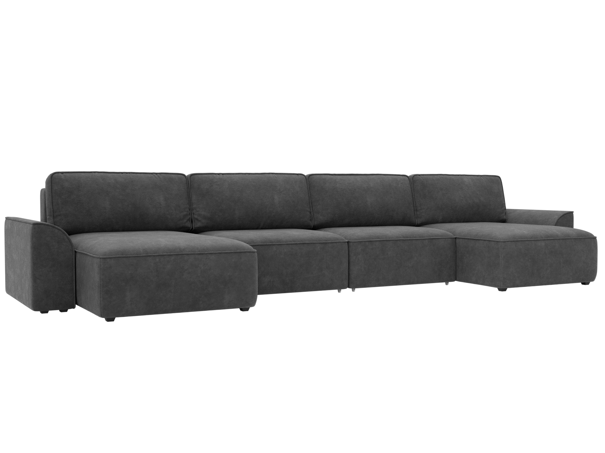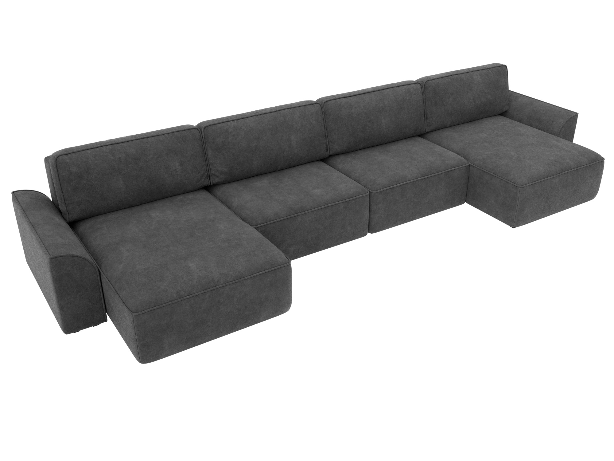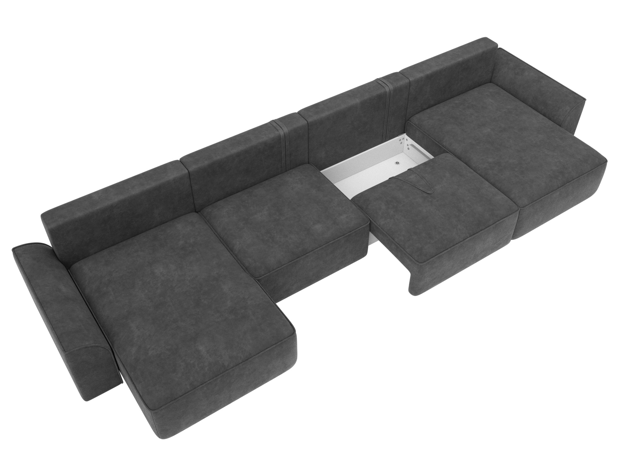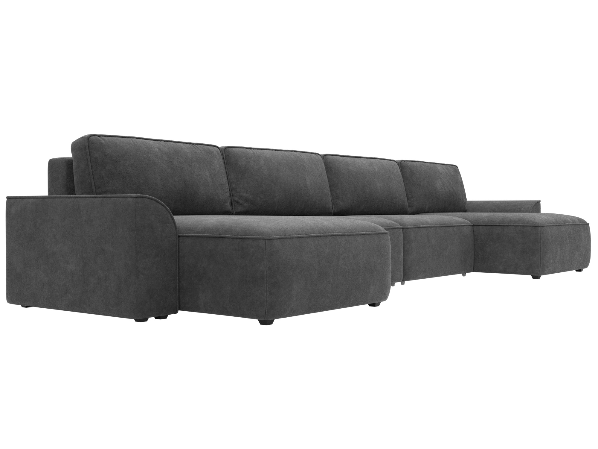 Диван П-образный Лига-048 НПБ лонг темно-серый, Велюр