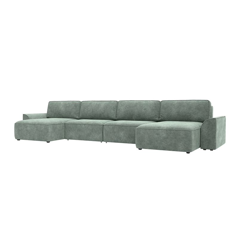 Диван П-образный Лига-048 НПБ лонг зеленый, Велюр