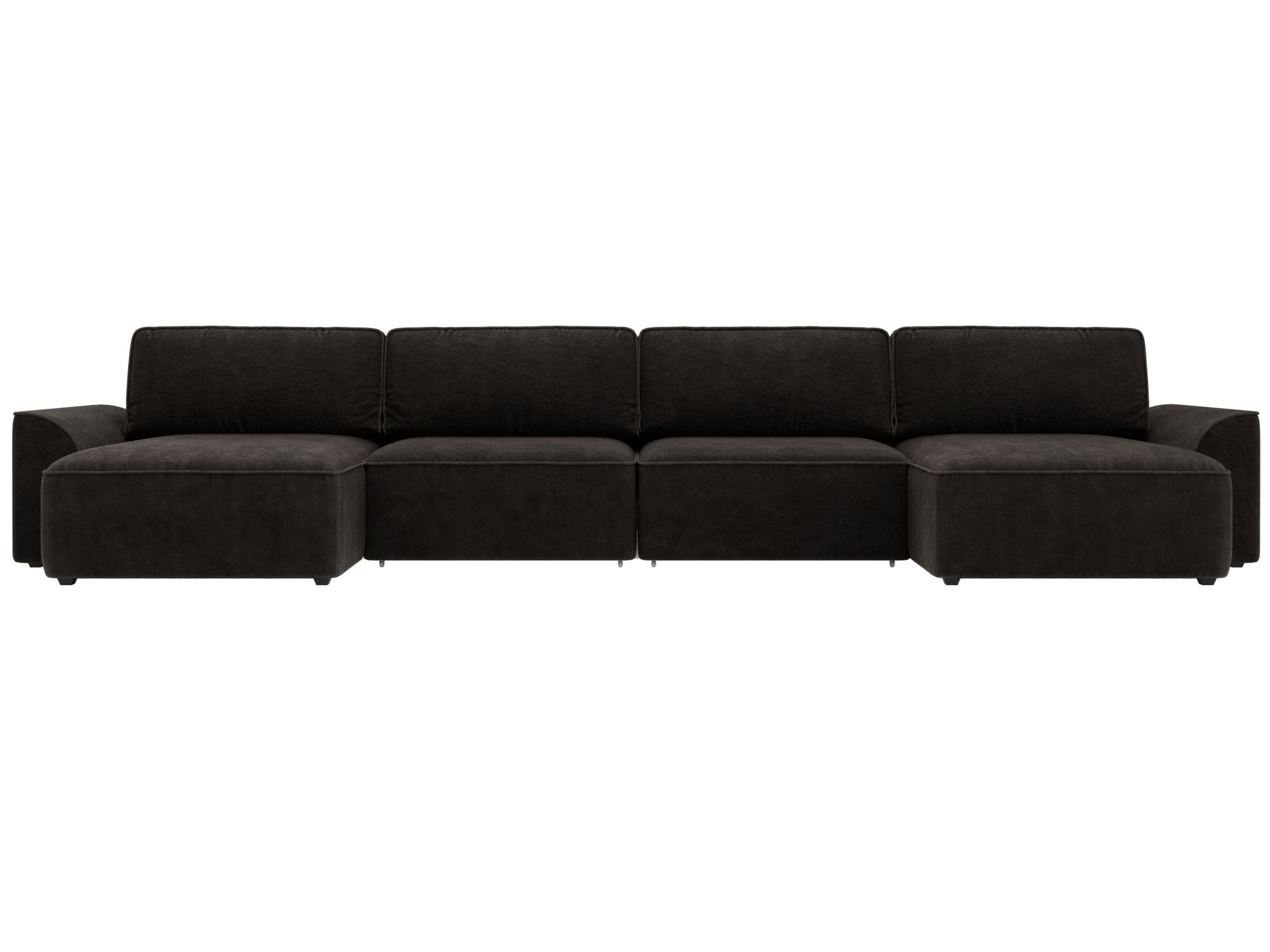 Диван П-образный Лига-048 НПБ лонг коричневый, Велюр
