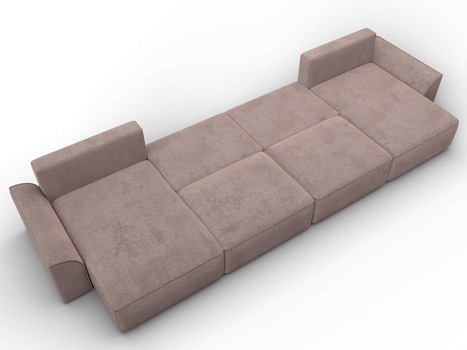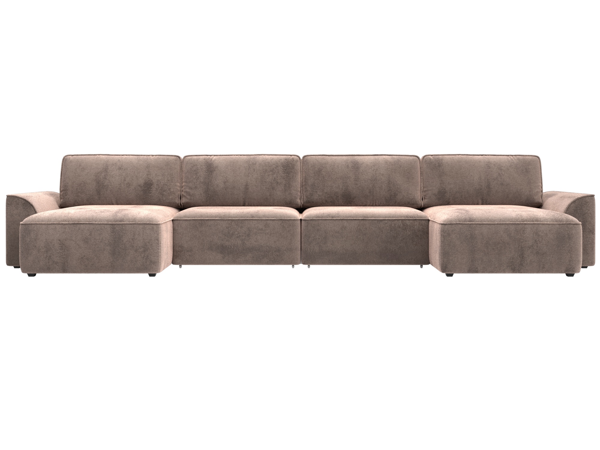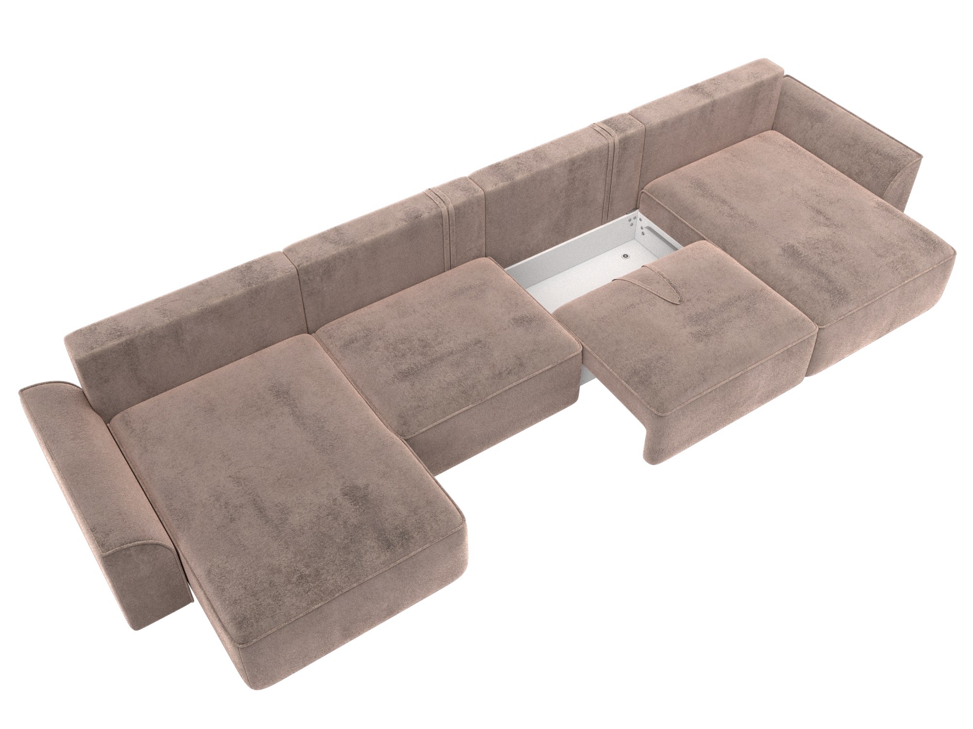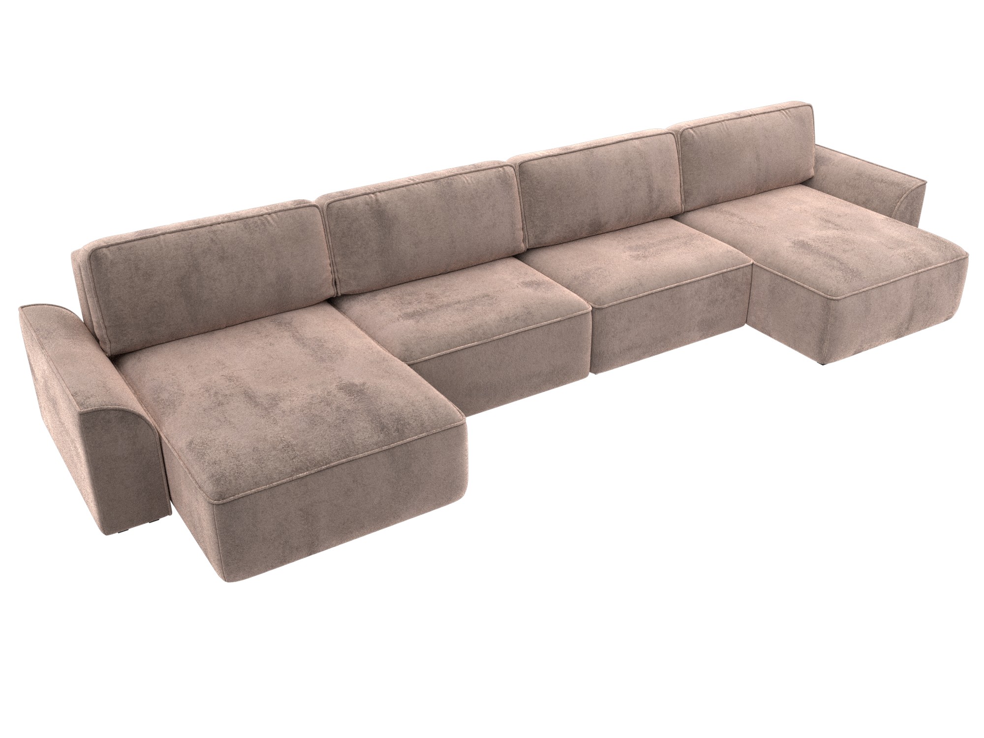 Диван П-образный Лига-048 НПБ лонг бежевый, Велюр