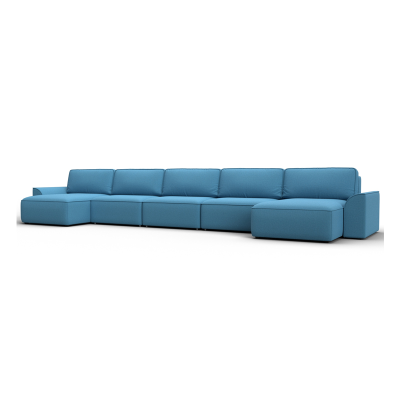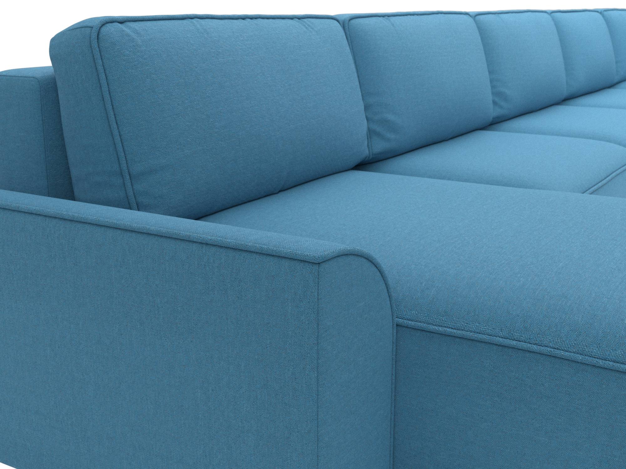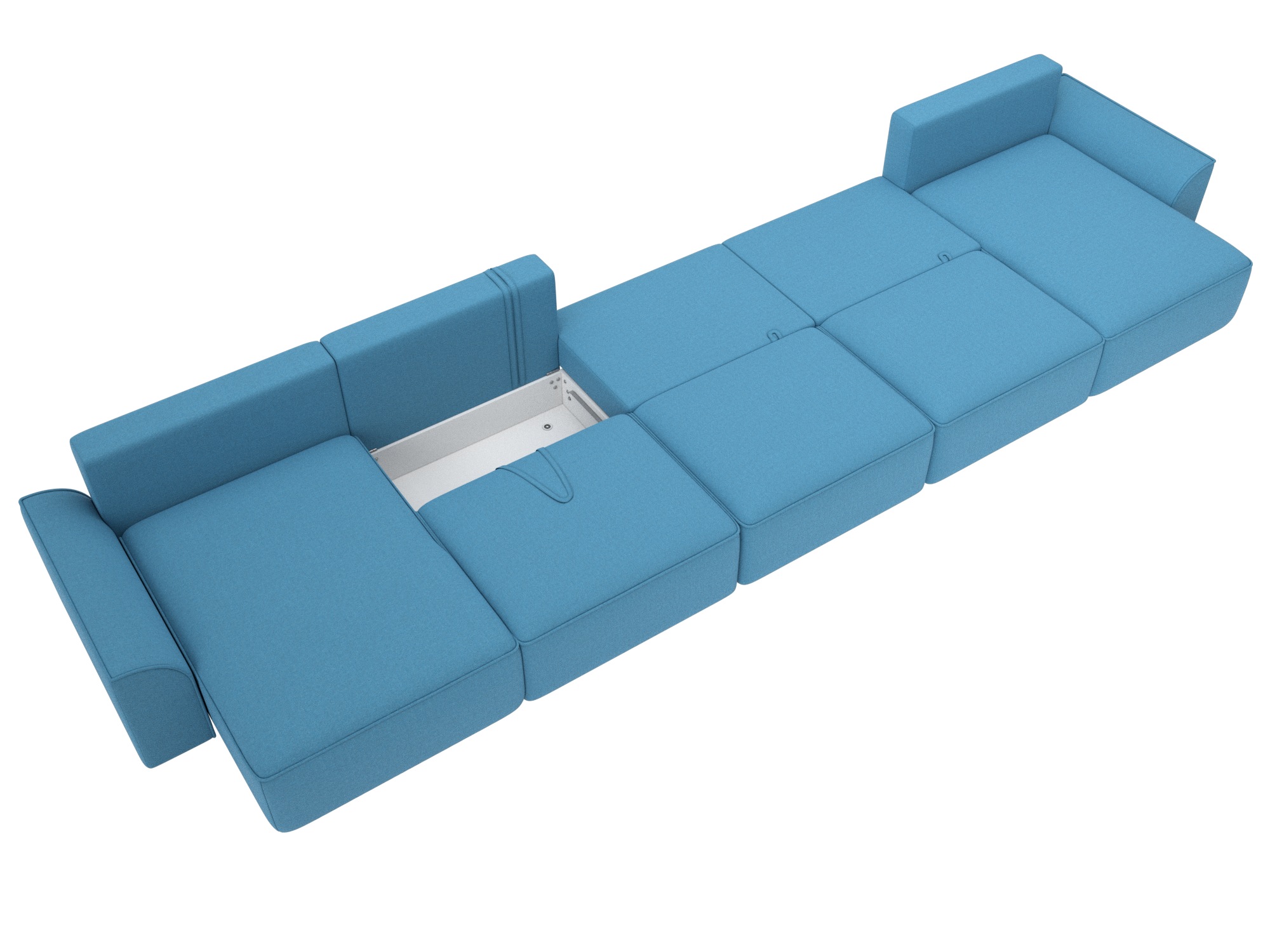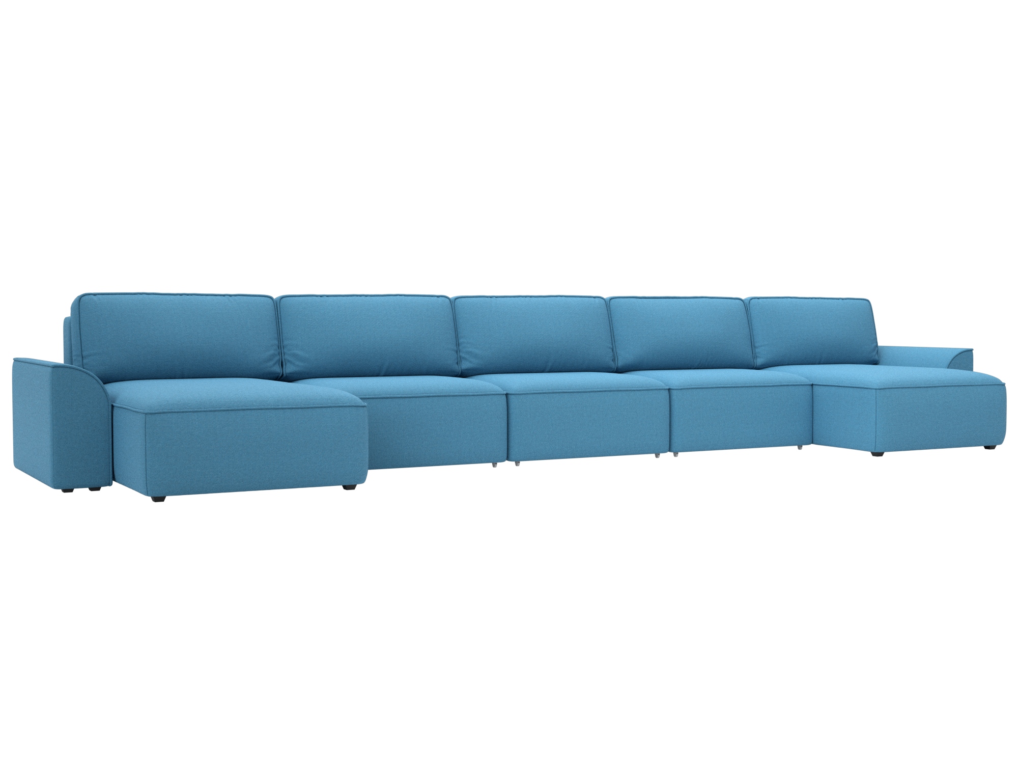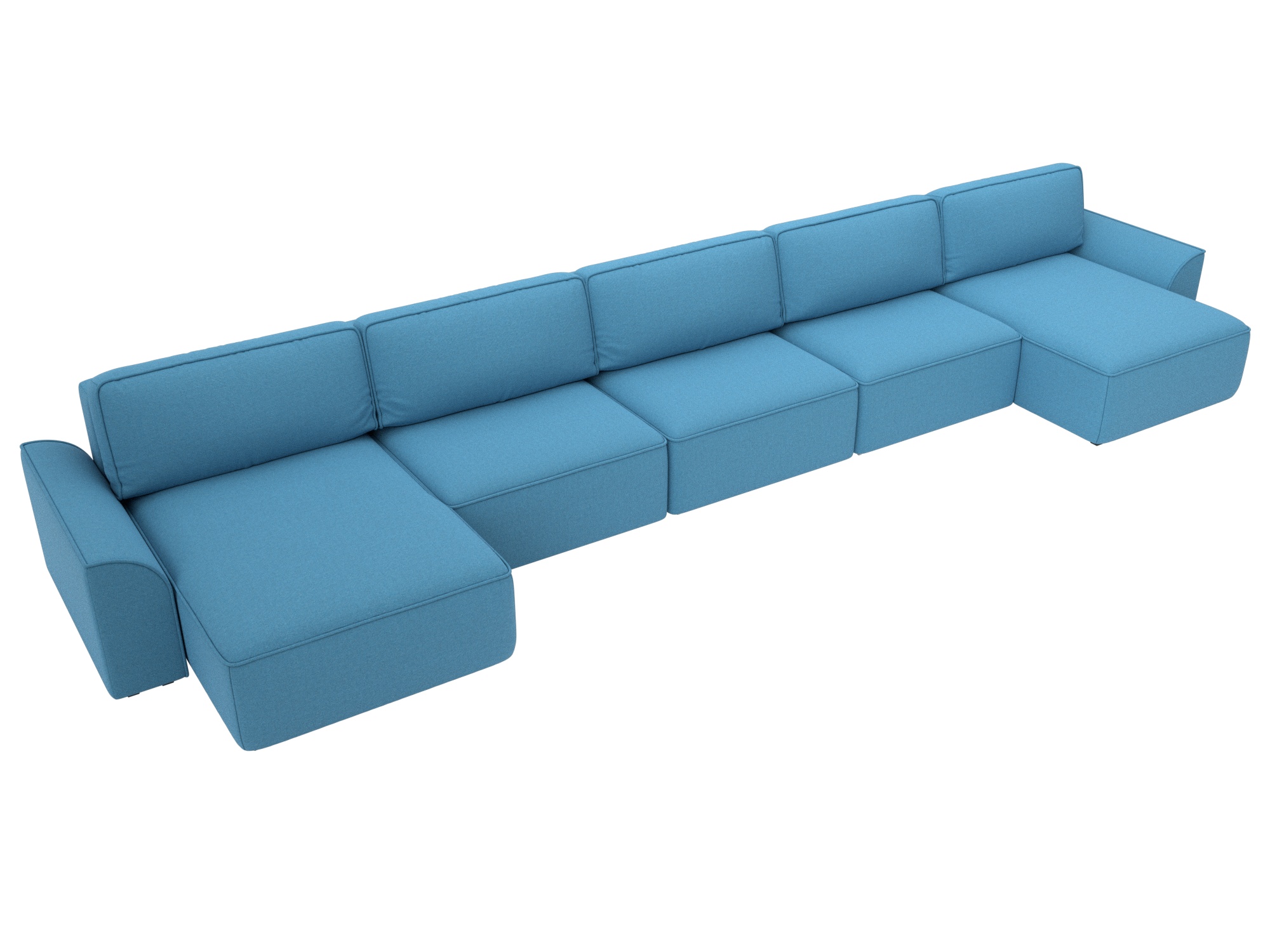 Диван П-образный Лига-048 НПБ МегаЛонг, Амур 10 голубой, Рогожка