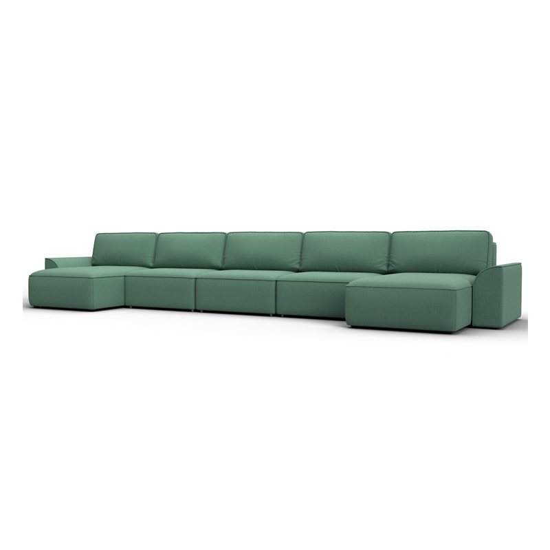 Диван П-образный Лига-048 НПБ МегаЛонг, Амур 11 зеленый, Рогожка