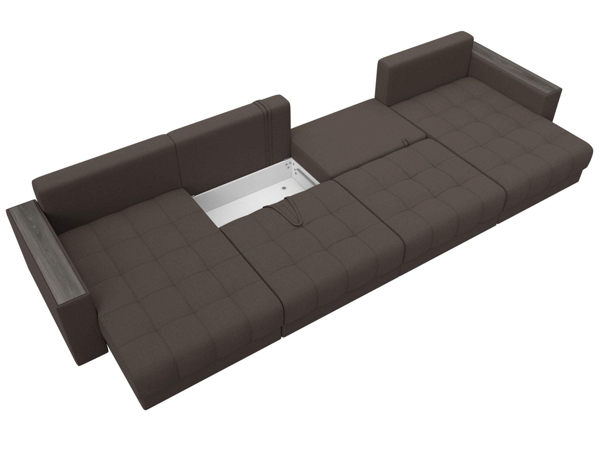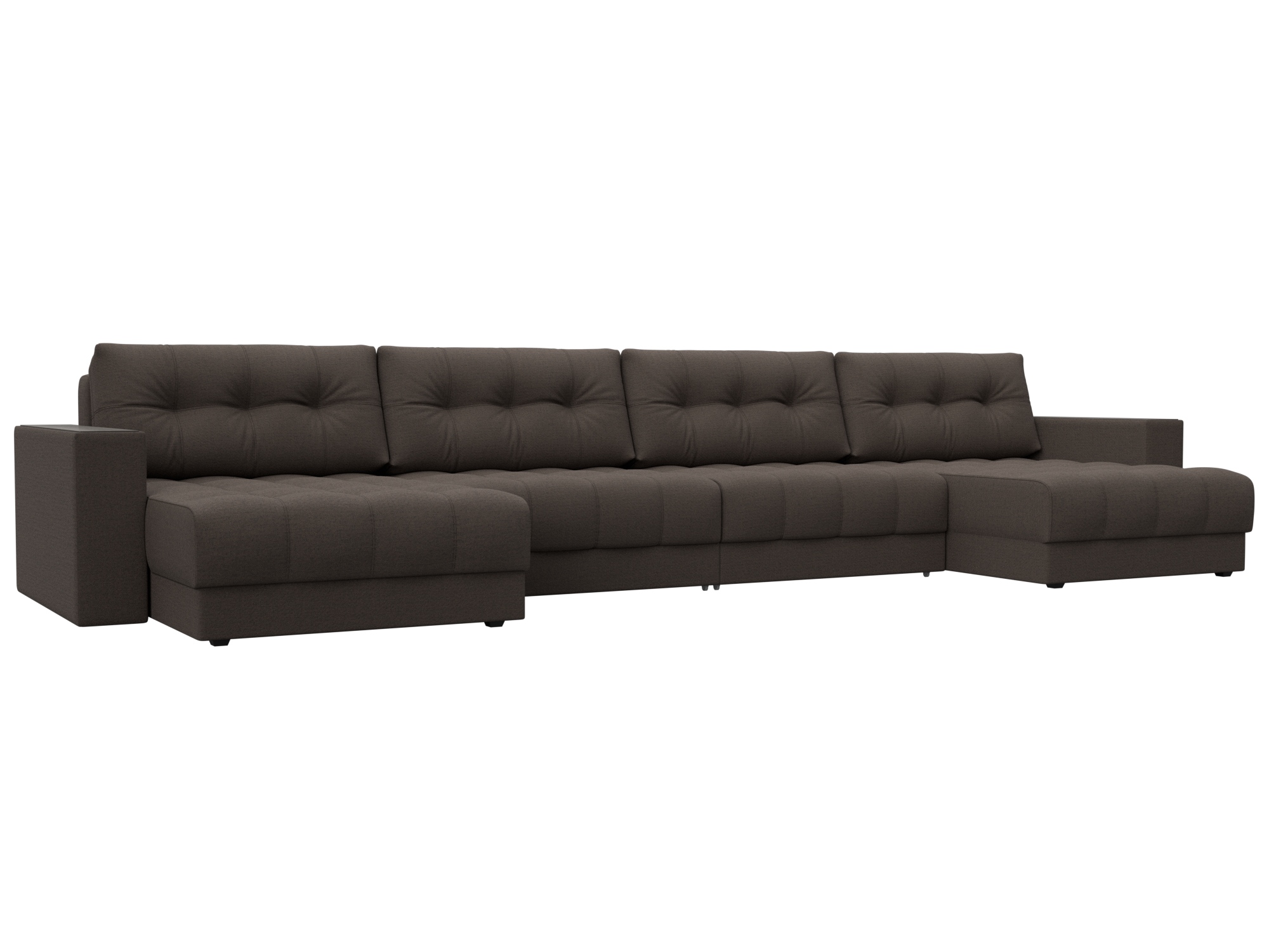 Диван П-образный с декором Лига-049 НПБ Лонг, Амур 05 коричневый, Рогожка