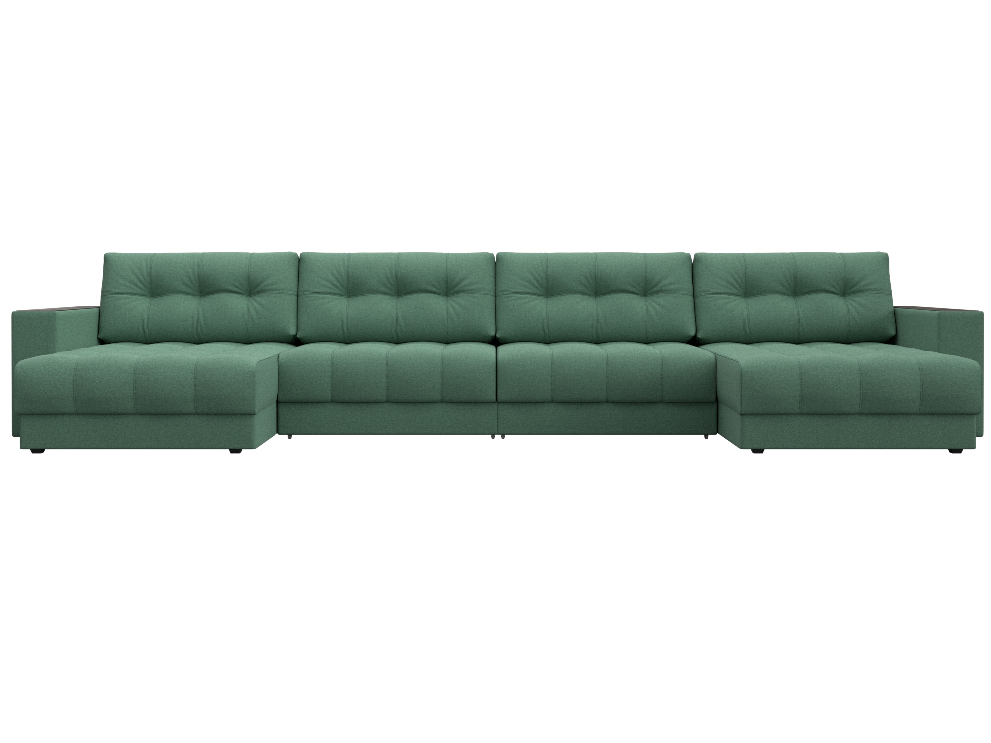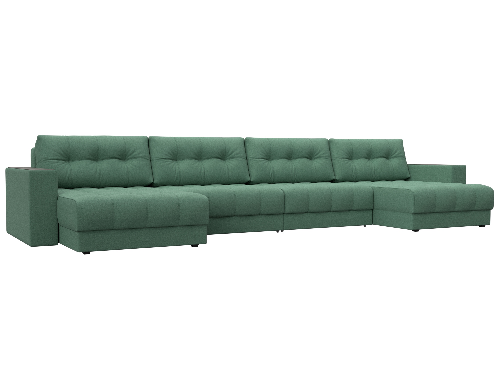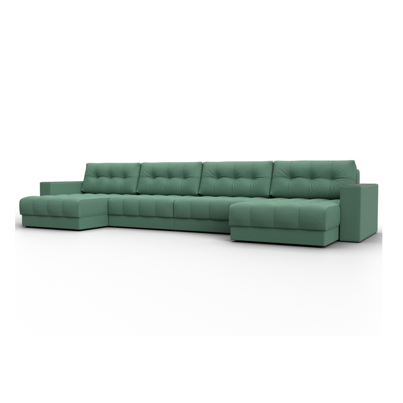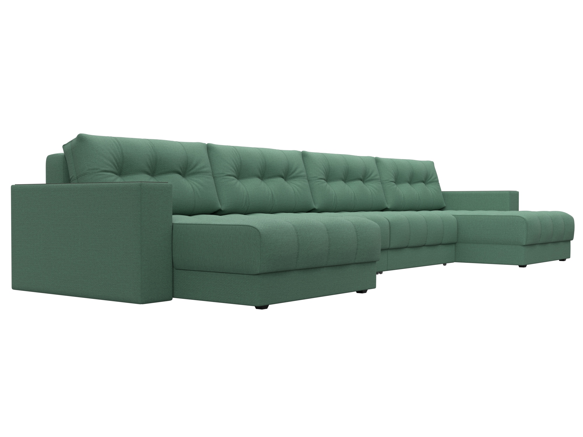 Диван П-образный с декором Лига-049 НПБ Лонг, Амур 11 зеленый, Рогожка