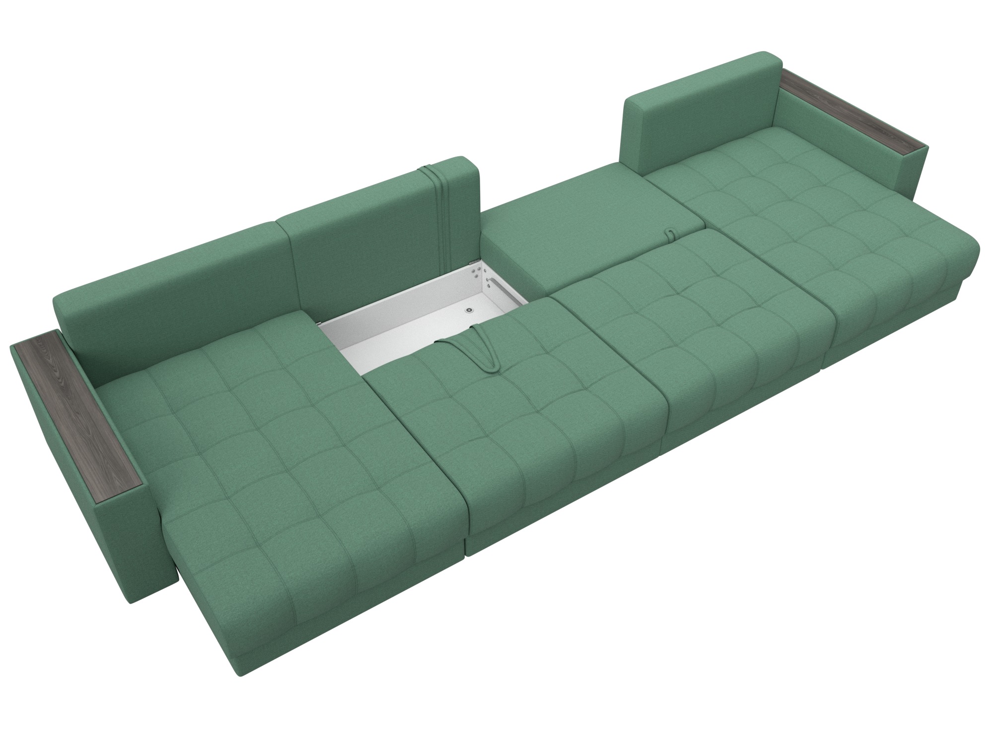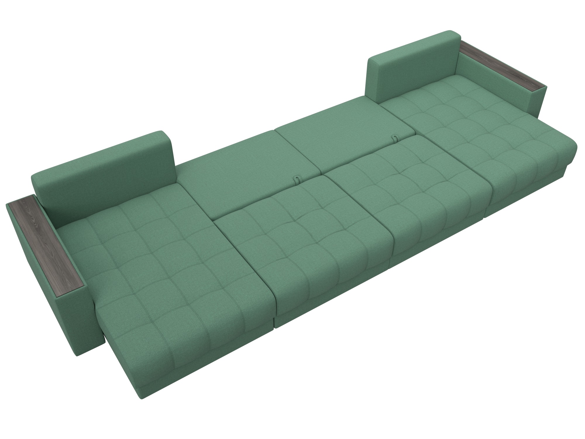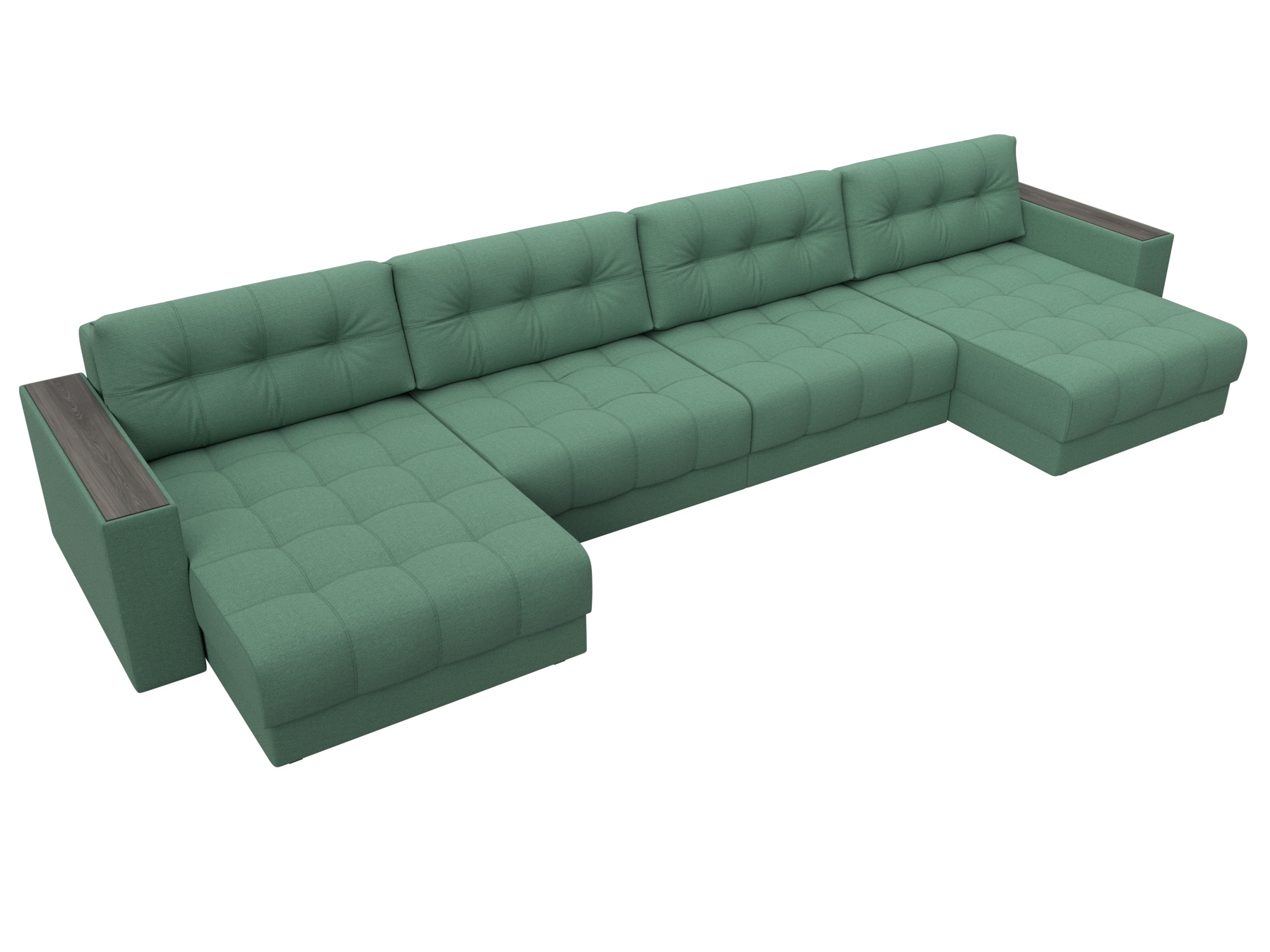 Диван П-образный с декором Лига-049 НПБ Лонг, Амур 11 зеленый, Рогожка
