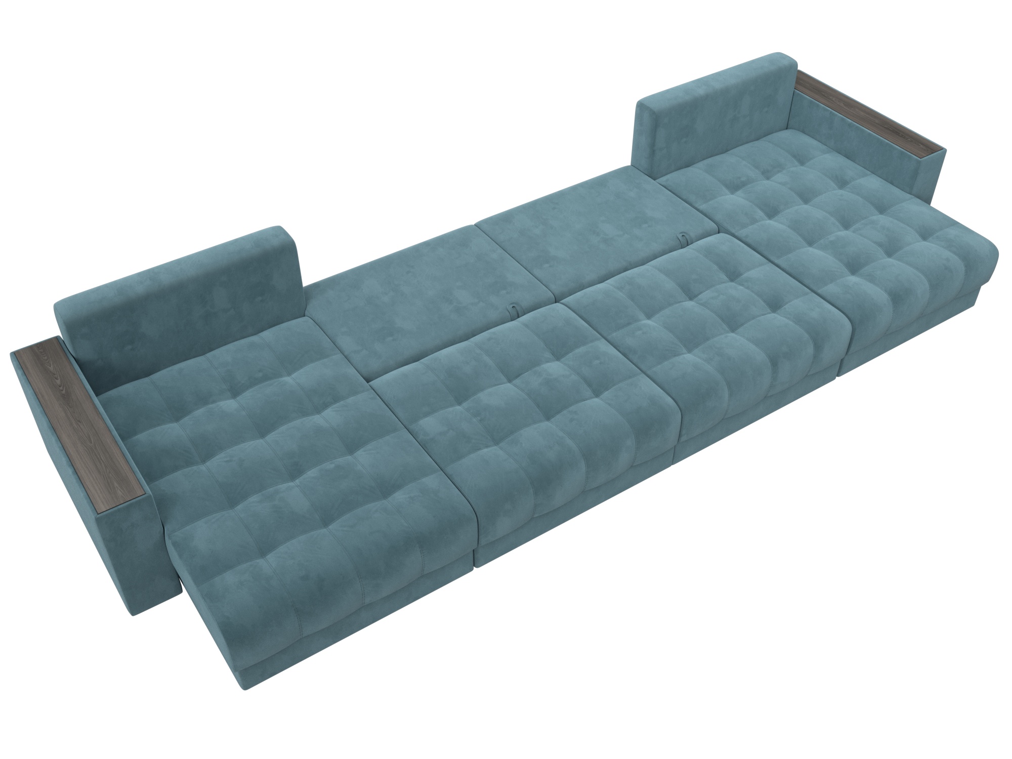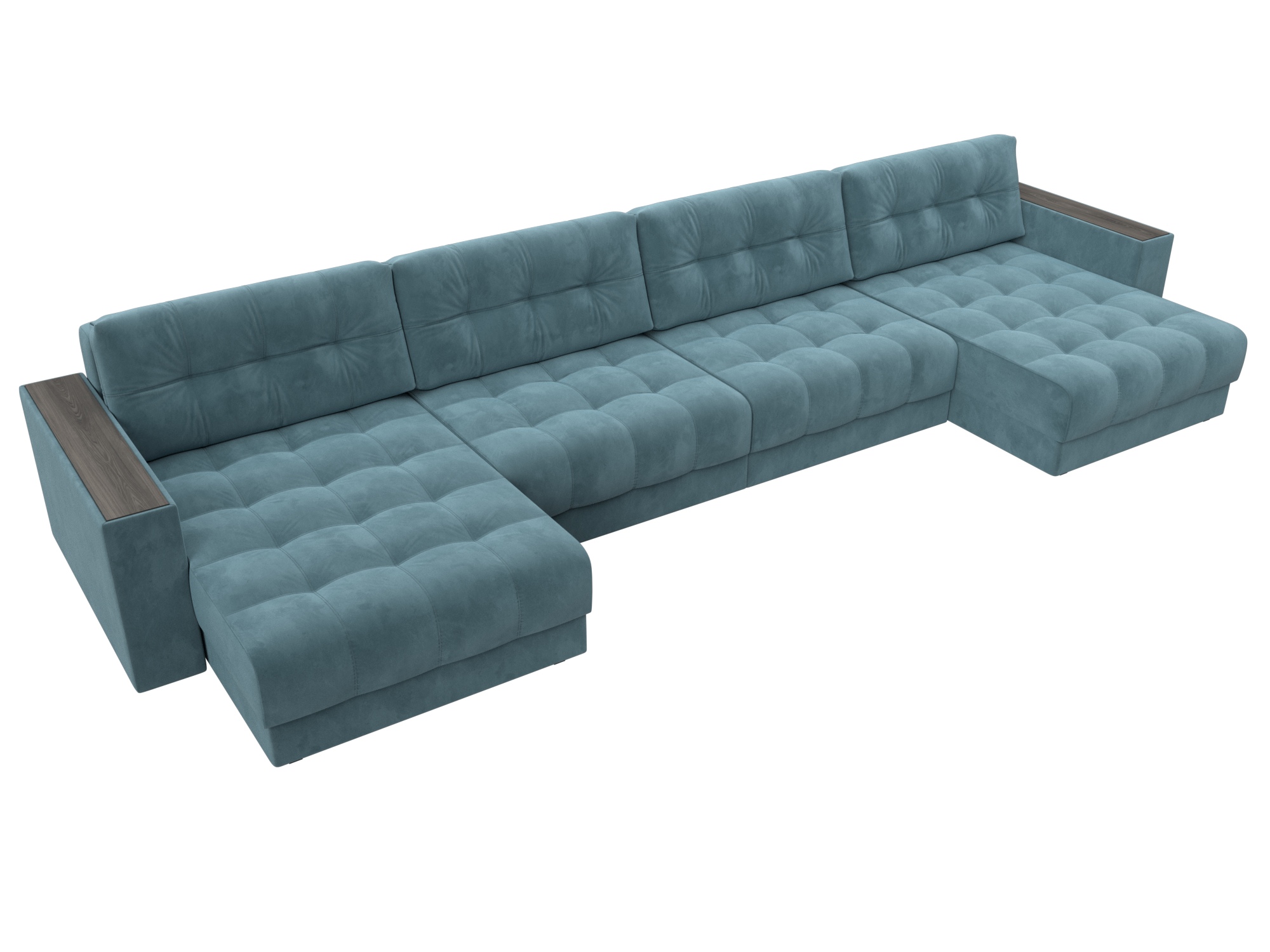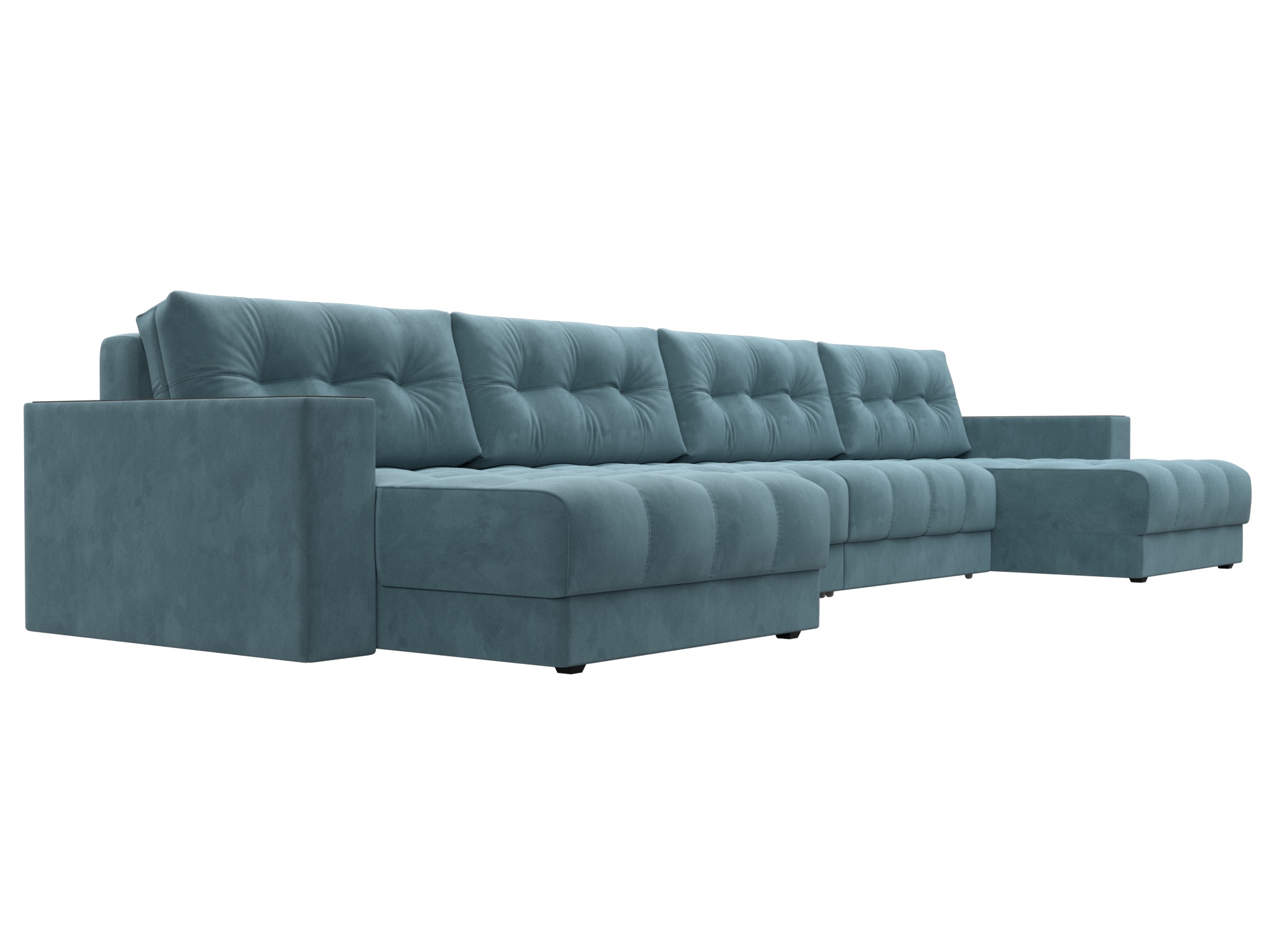 Диван П-образный с декором Лига-049 НПБ Лонг, SEVEN 113 бирюзовый, Велюр