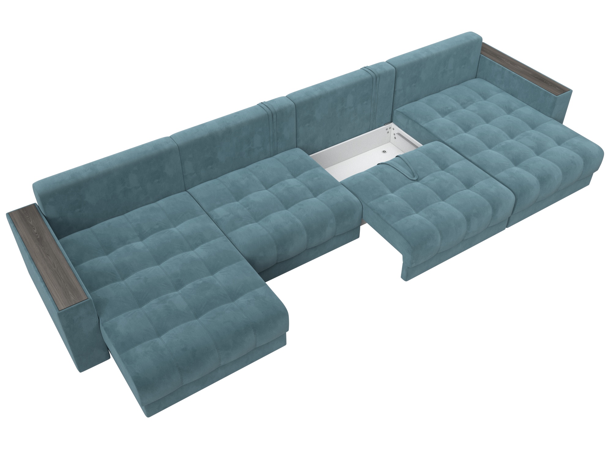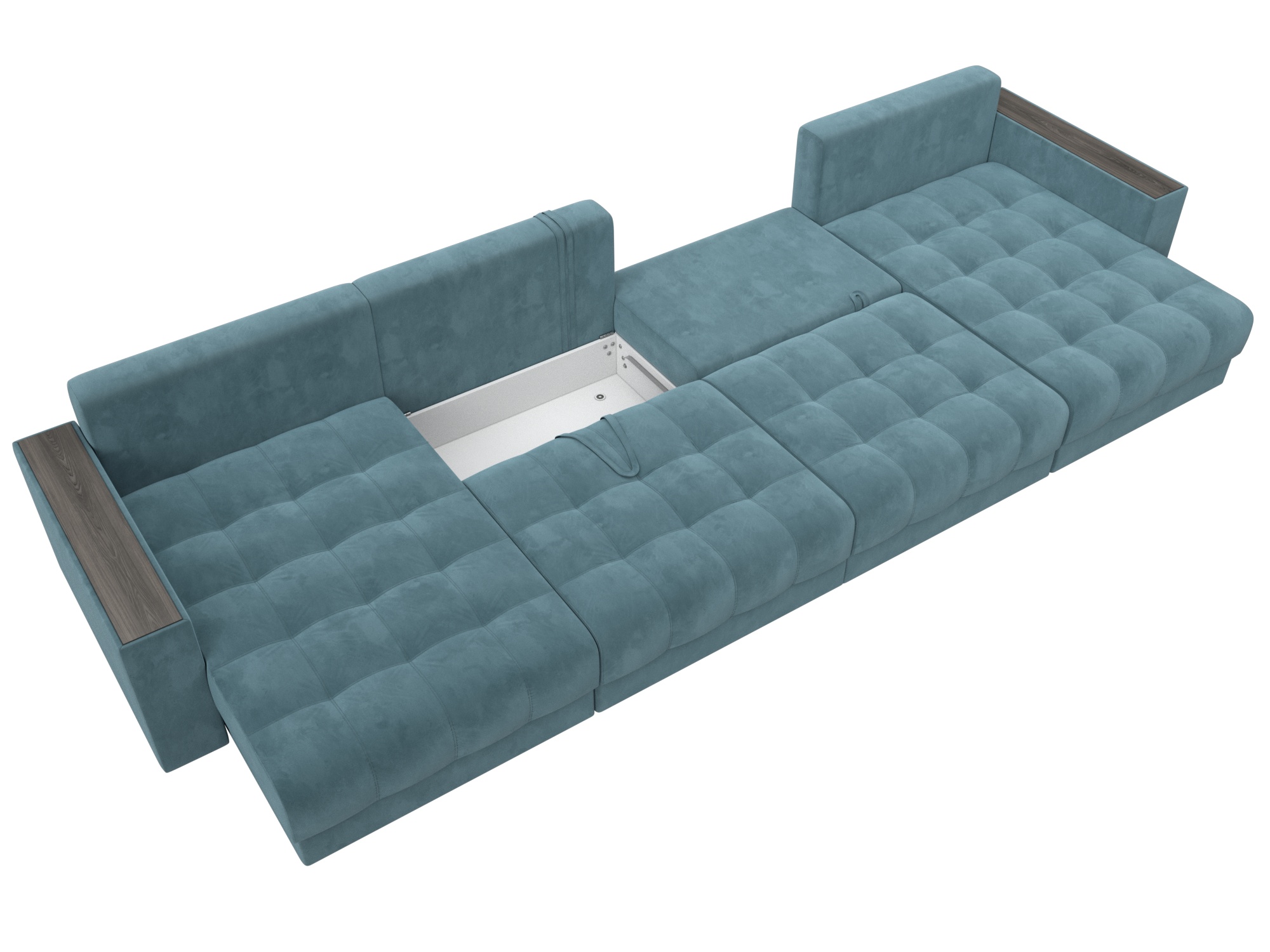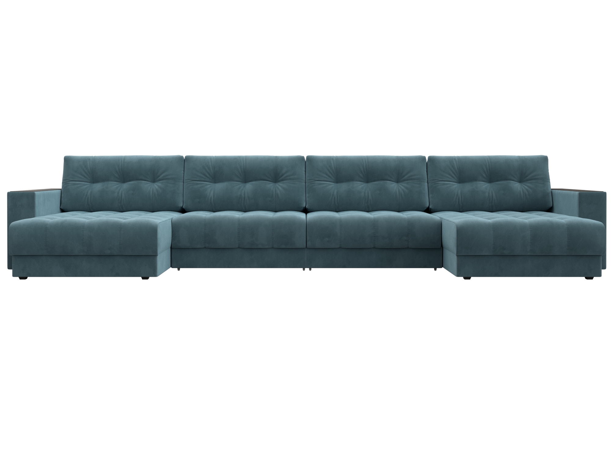 Диван П-образный с декором Лига-049 НПБ Лонг, SEVEN 113 бирюзовый, Велюр