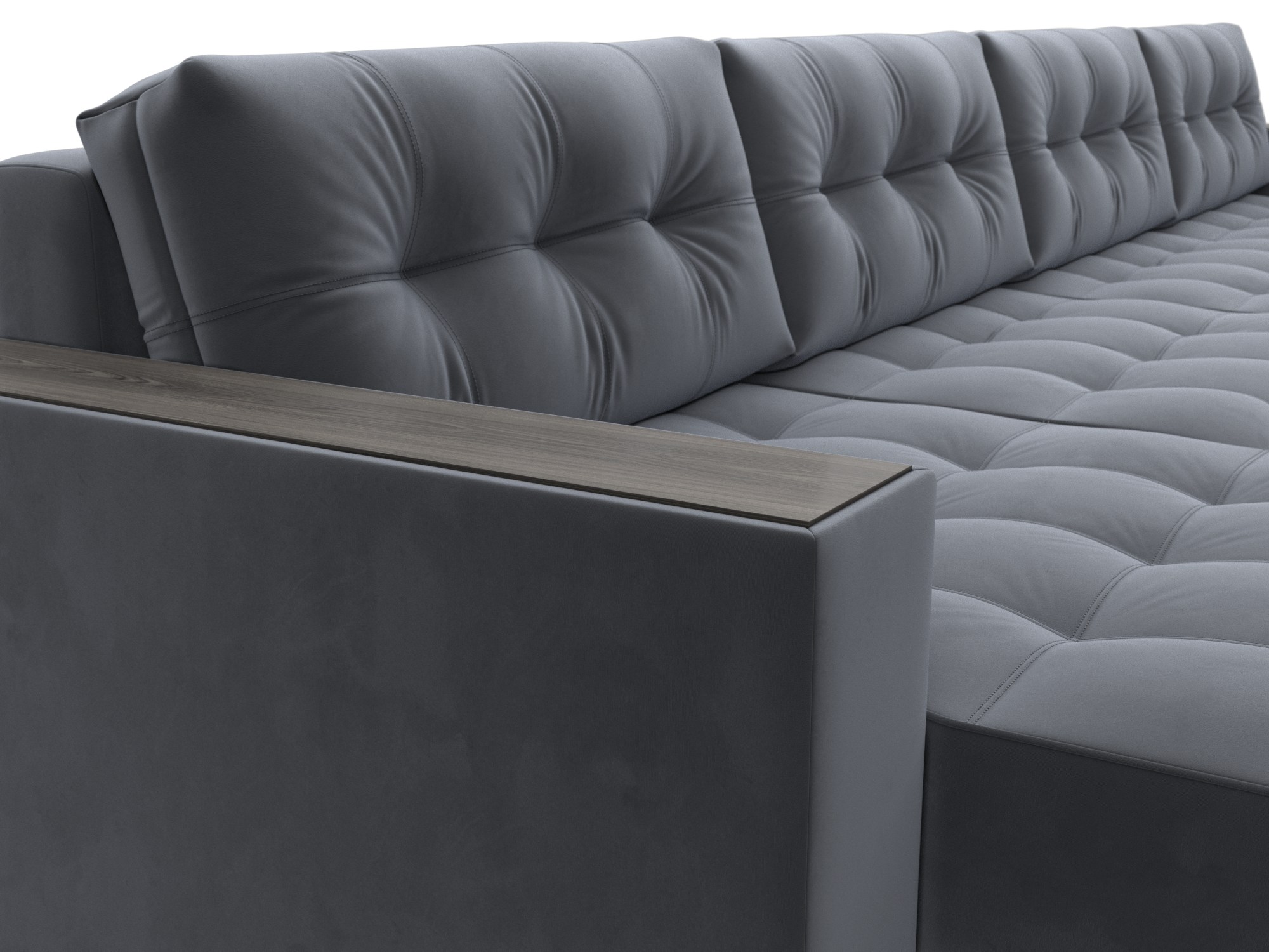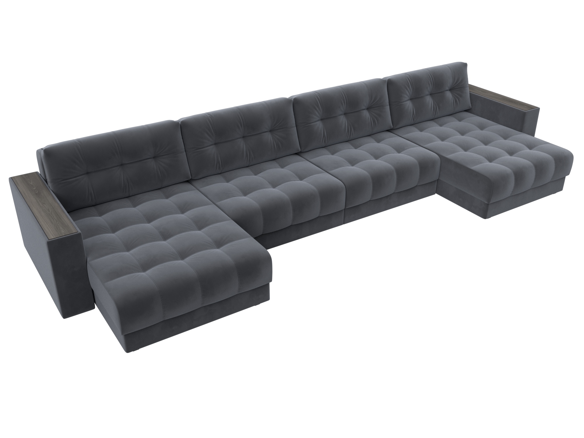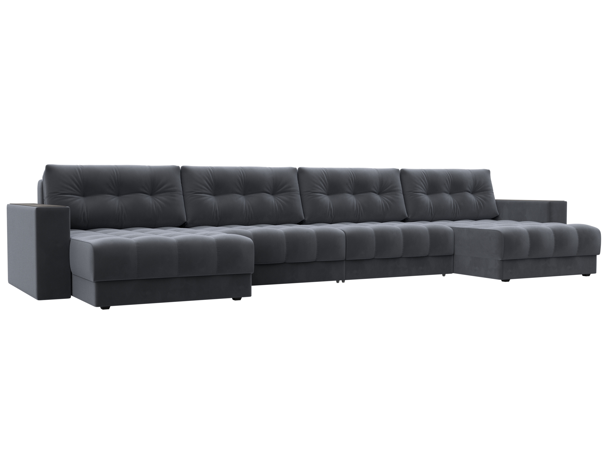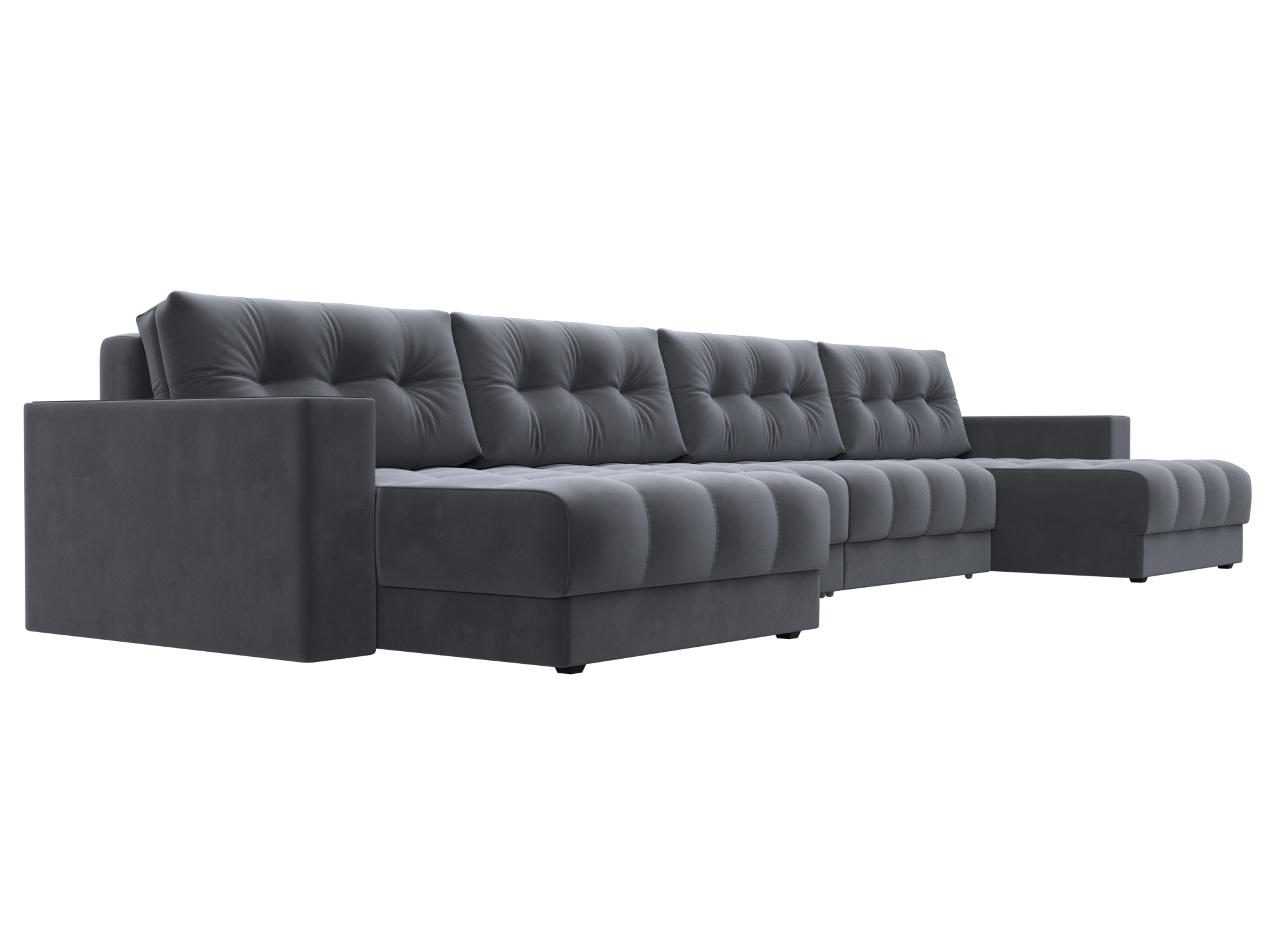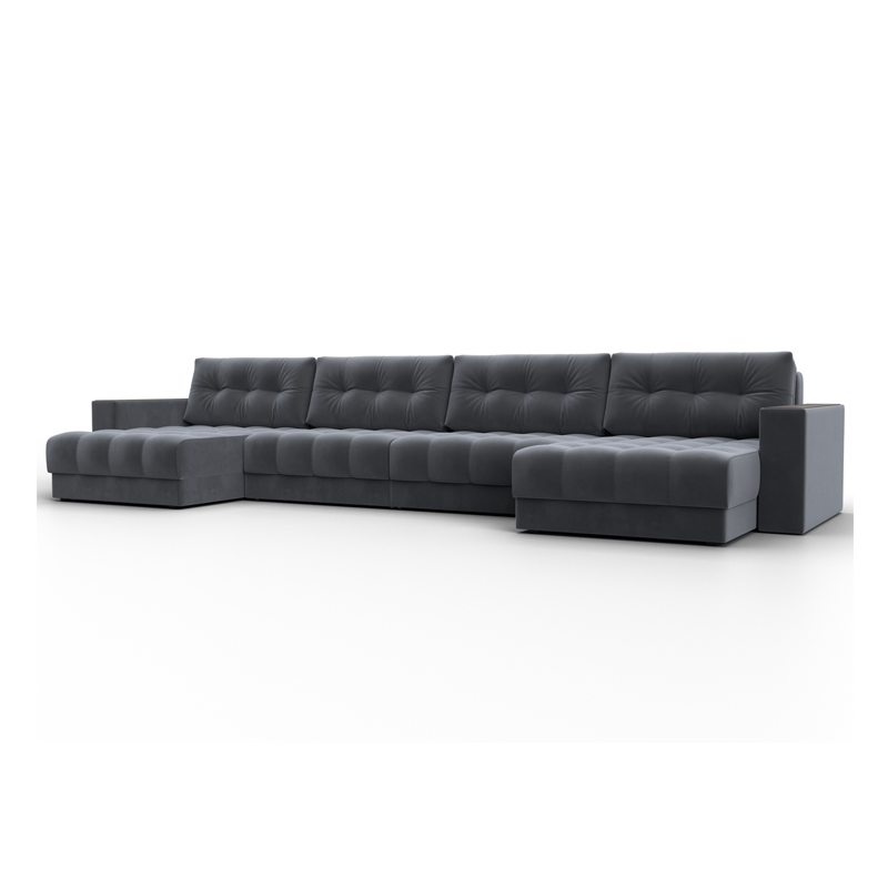 Диван П-образный с декором Лига-049 НПБ Лонг, SEVEN 17 серый, Велюр