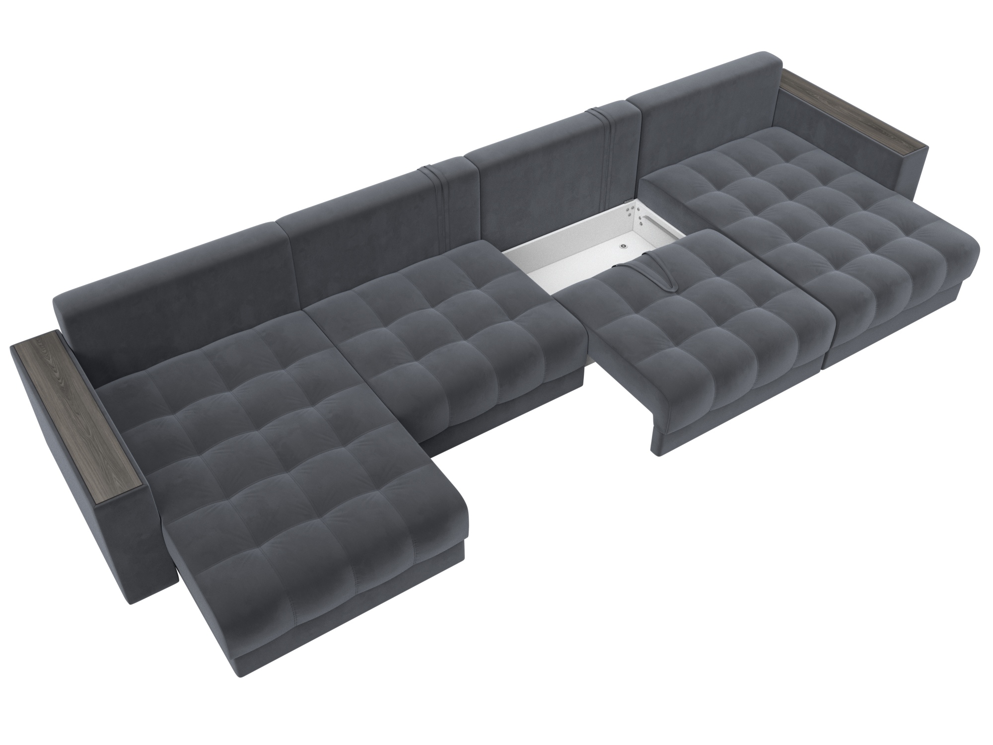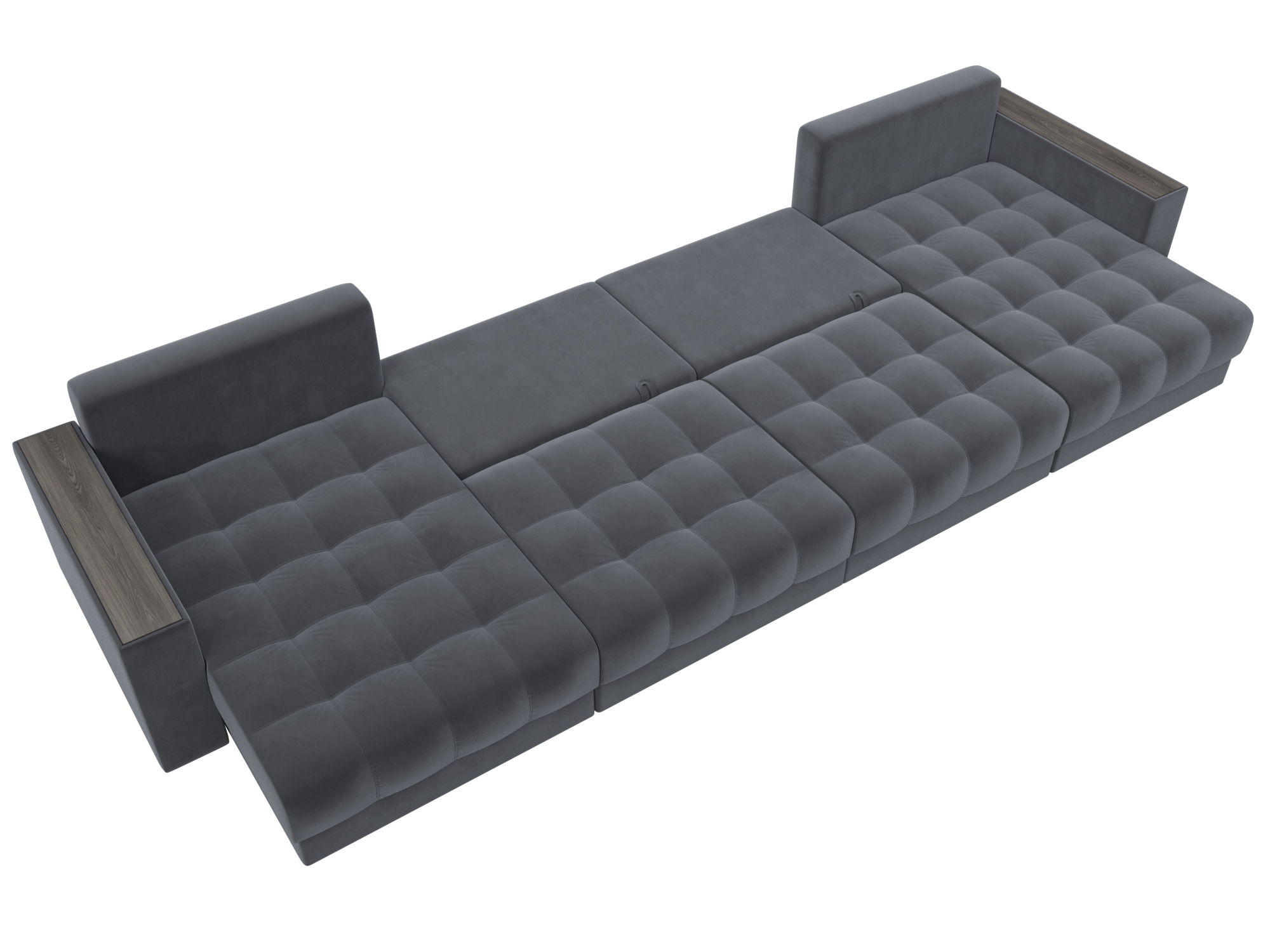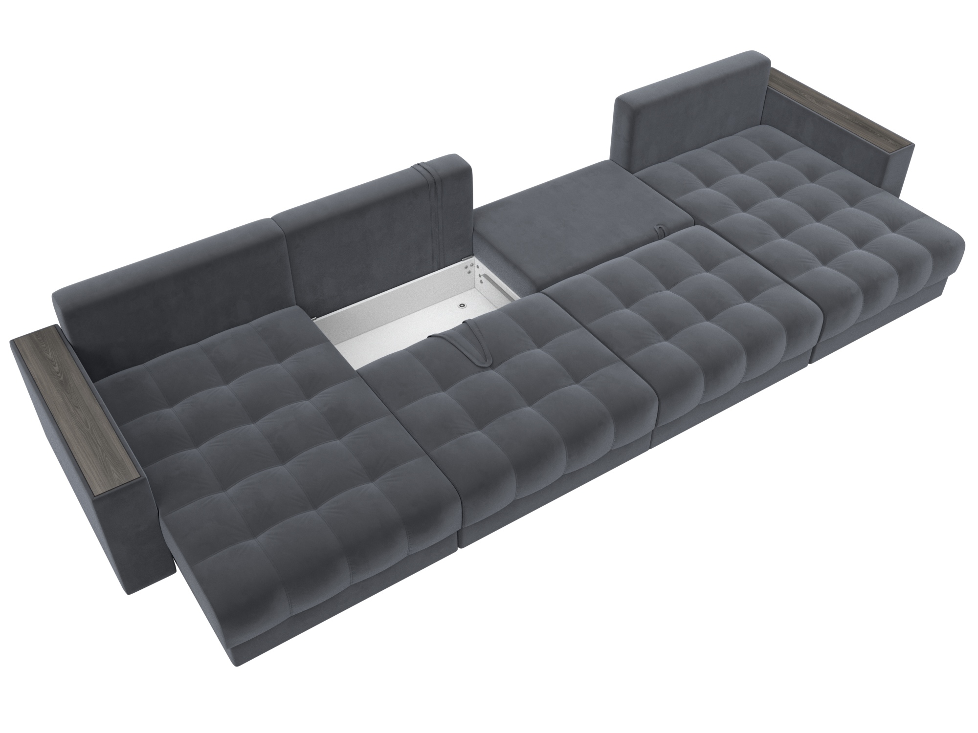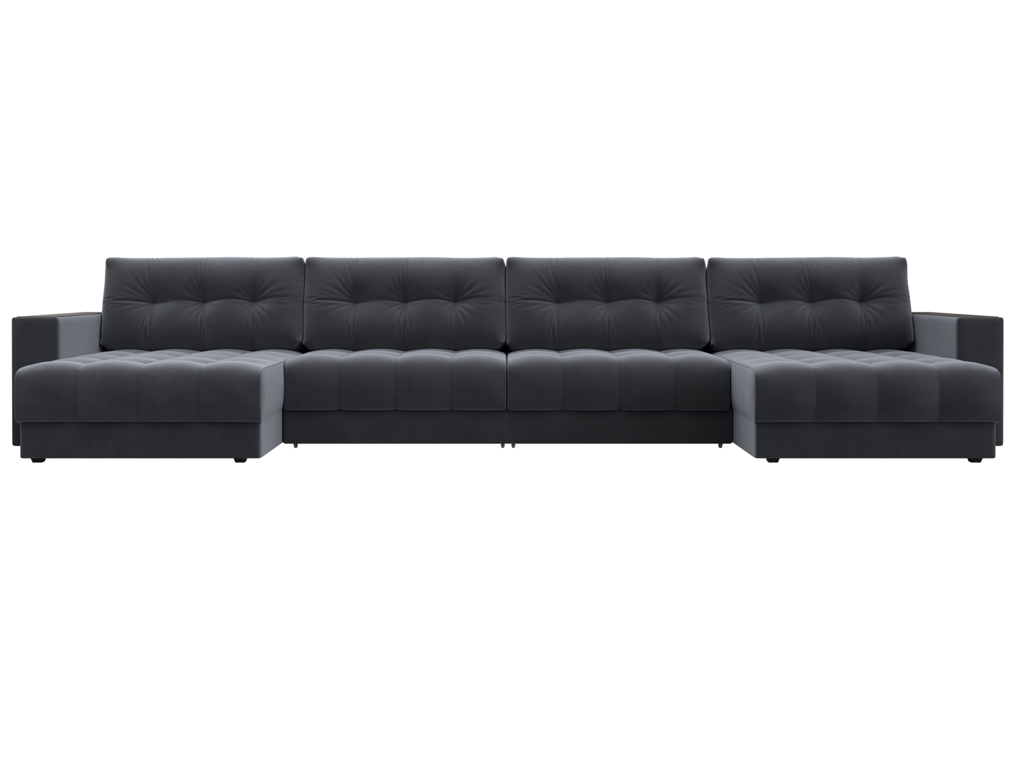 Диван П-образный с декором Лига-049 НПБ Лонг, SEVEN 17 серый, Велюр