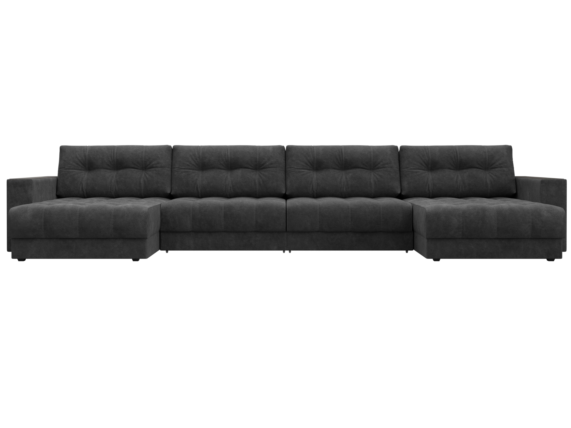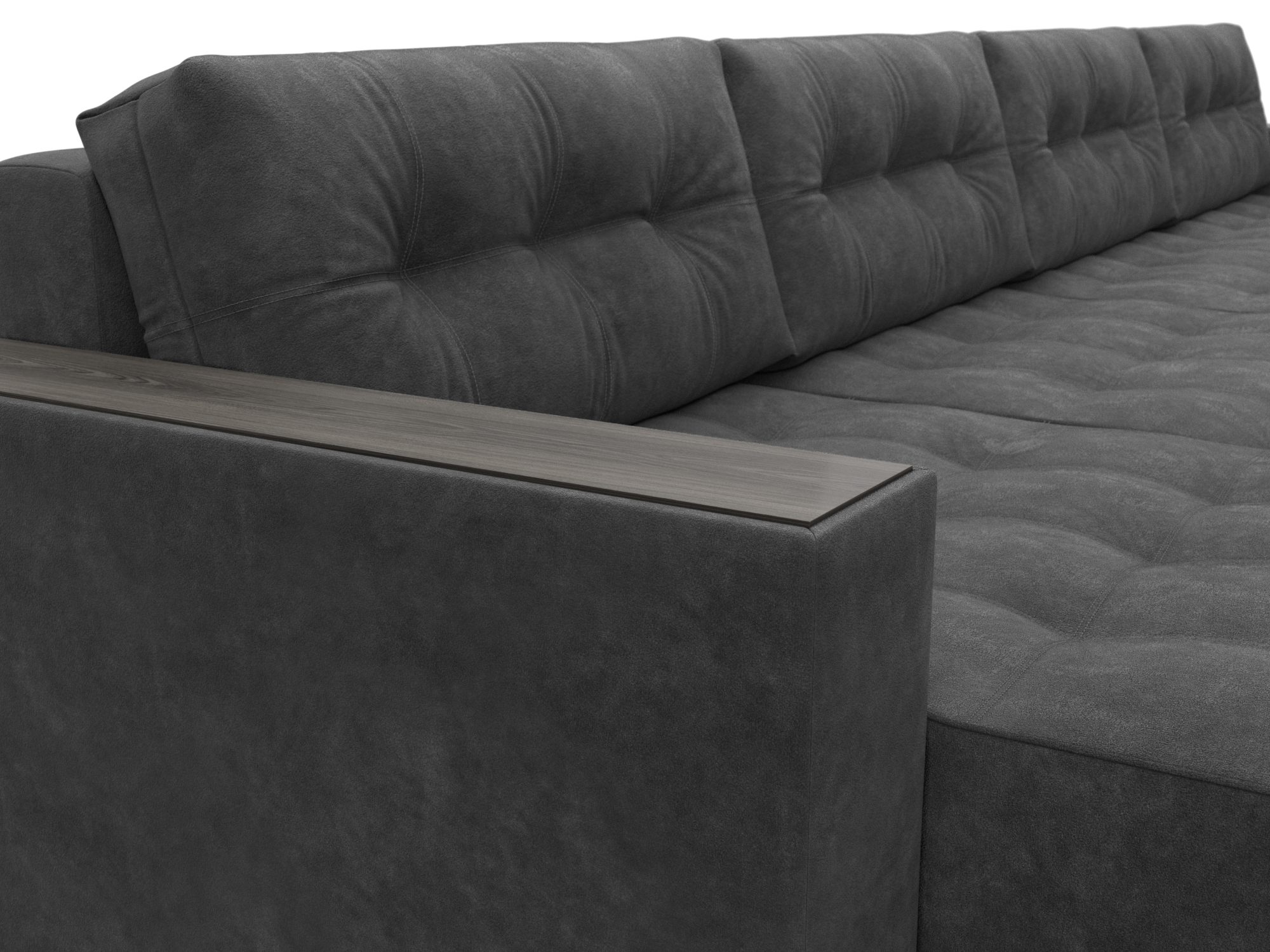 Диван П-образный с декором Лига-049 НПБ Лонг, BRUT 16 темно-серый, Велюр