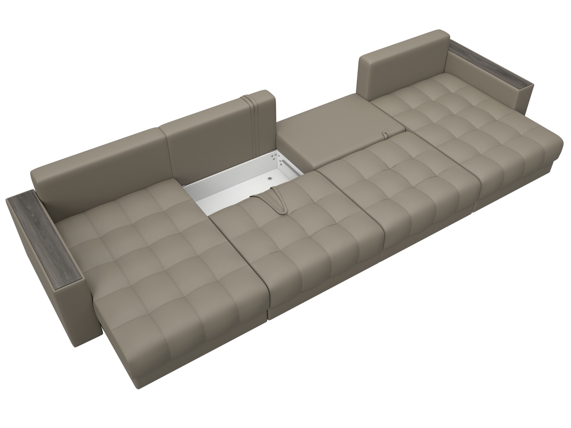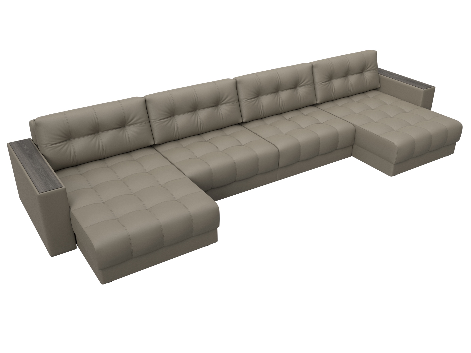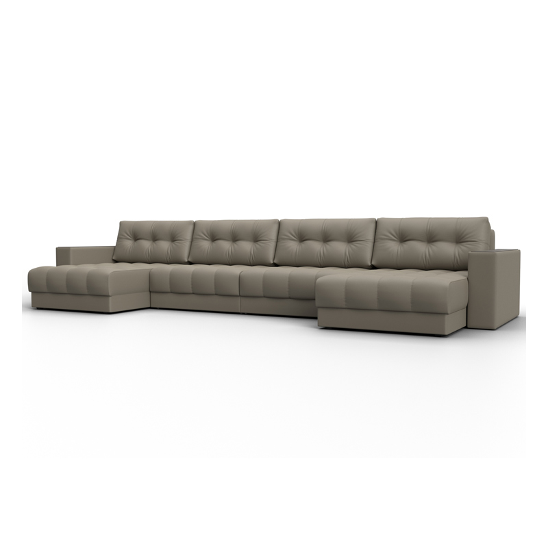 Диван П-образный с декором Лига-049 НПБ Лонг, GRIFON 04 бежевый, Экокожа