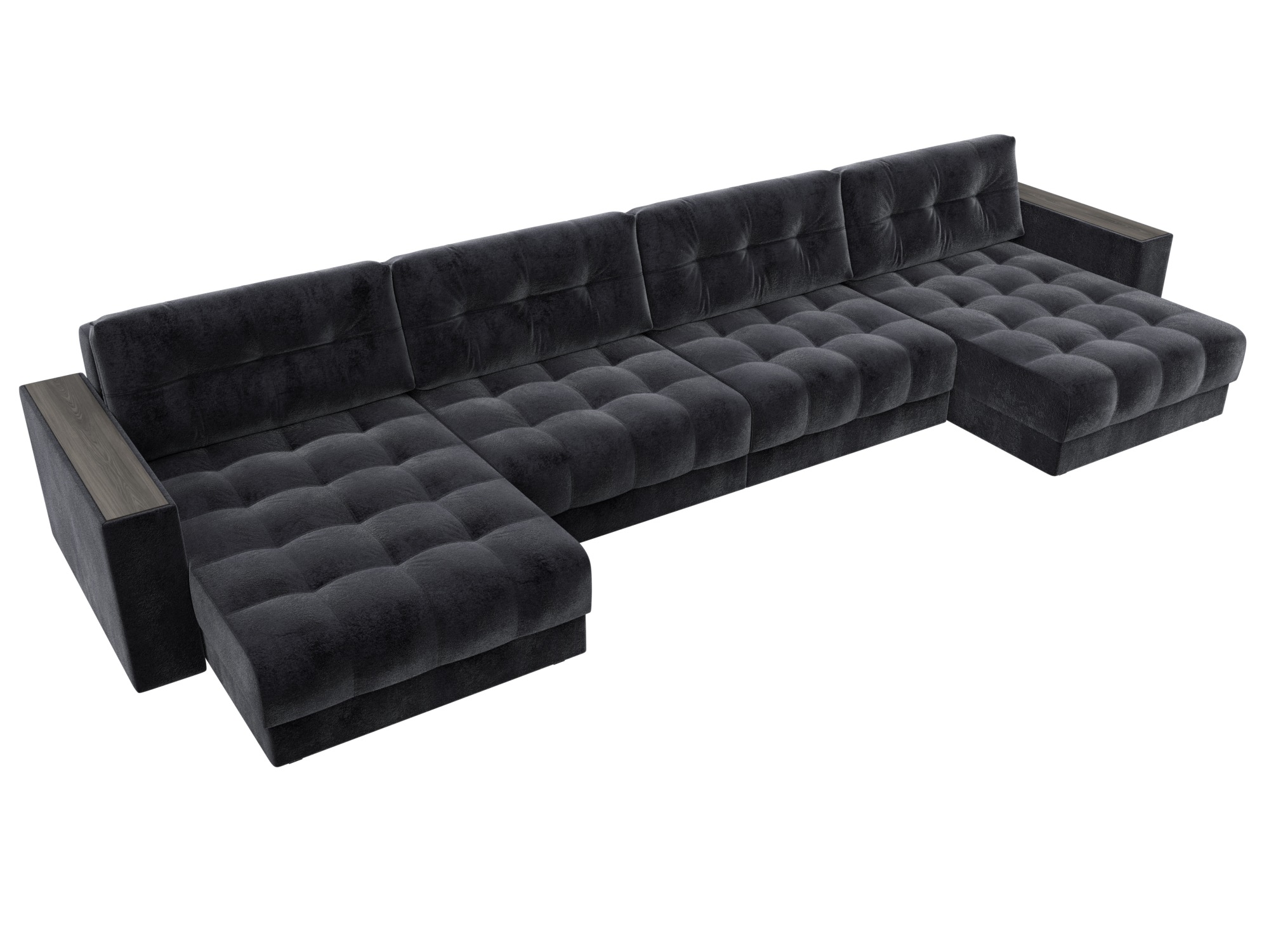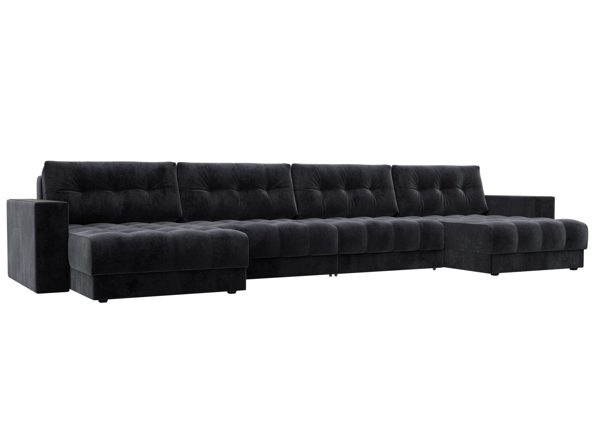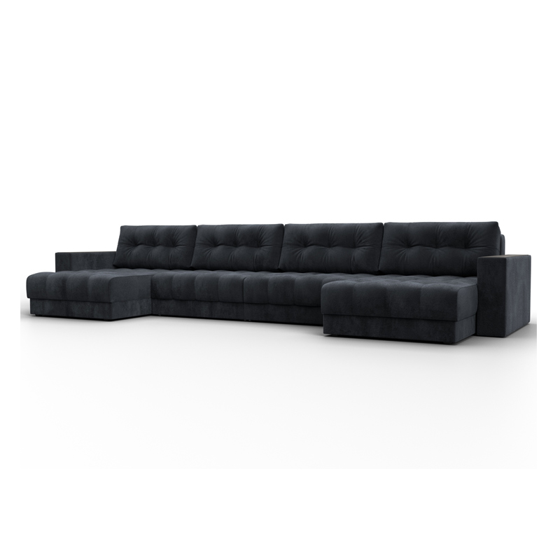 Диван П-образный с декором Лига-049 НПБ Лонг, TOWER 11 темно-серый, Велюр