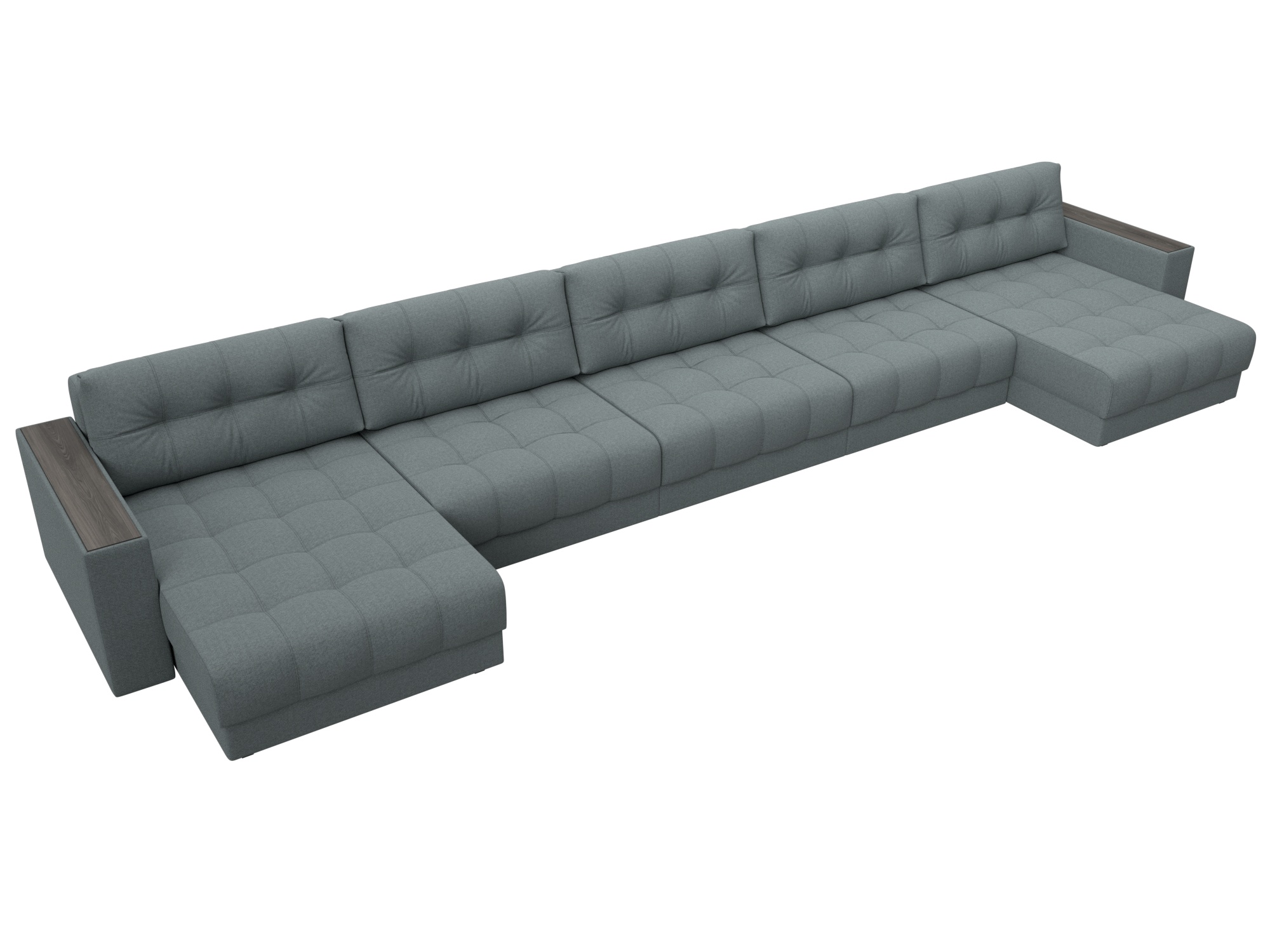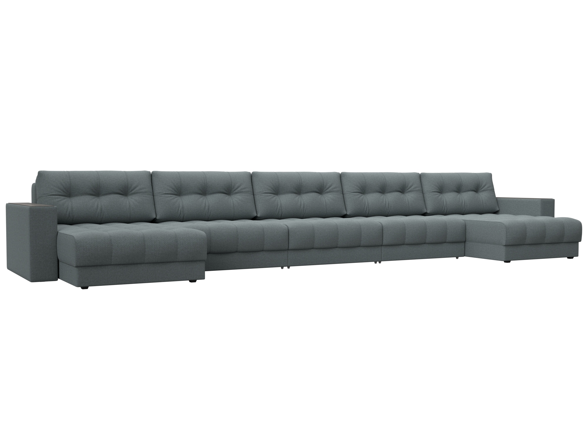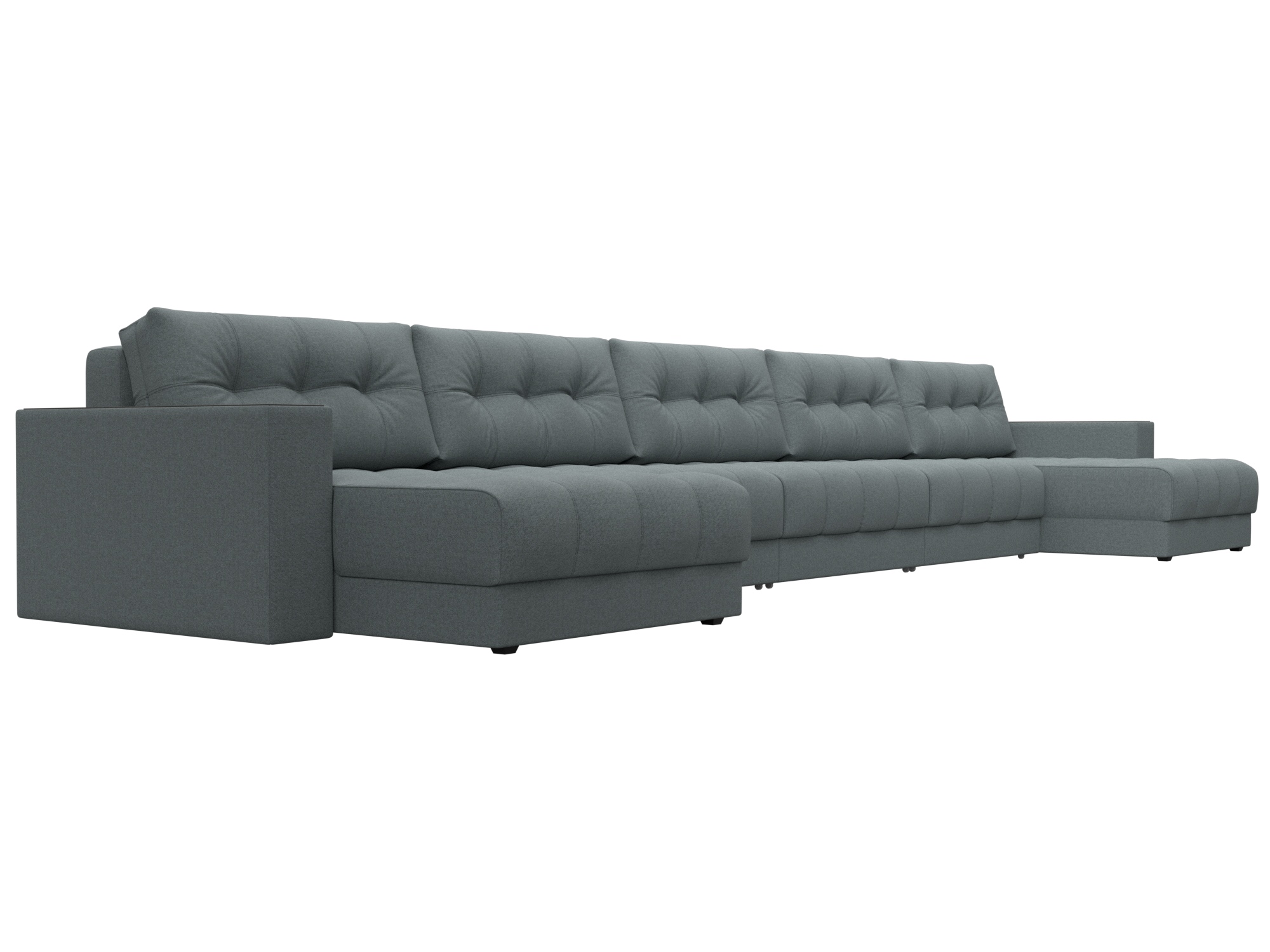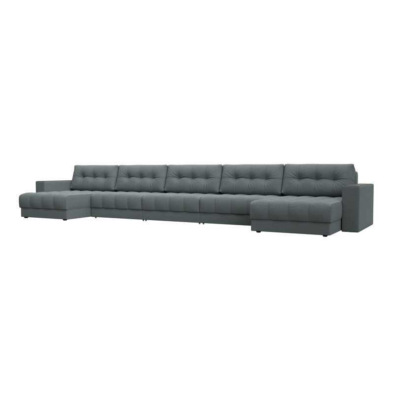 Диван П-образный с декором Лига-049 НПБ Мегалонг, Амур 07 серый, Рогожка