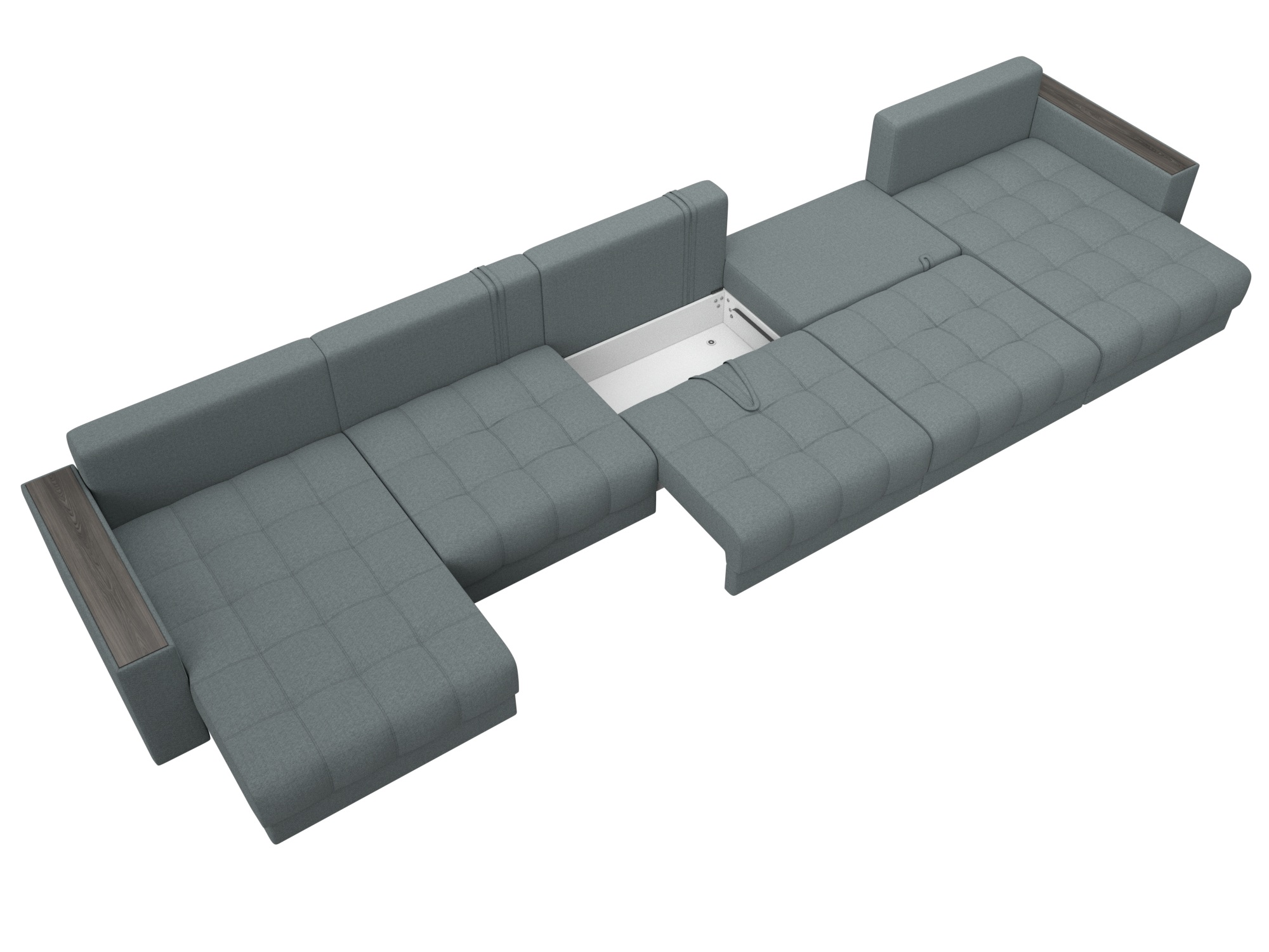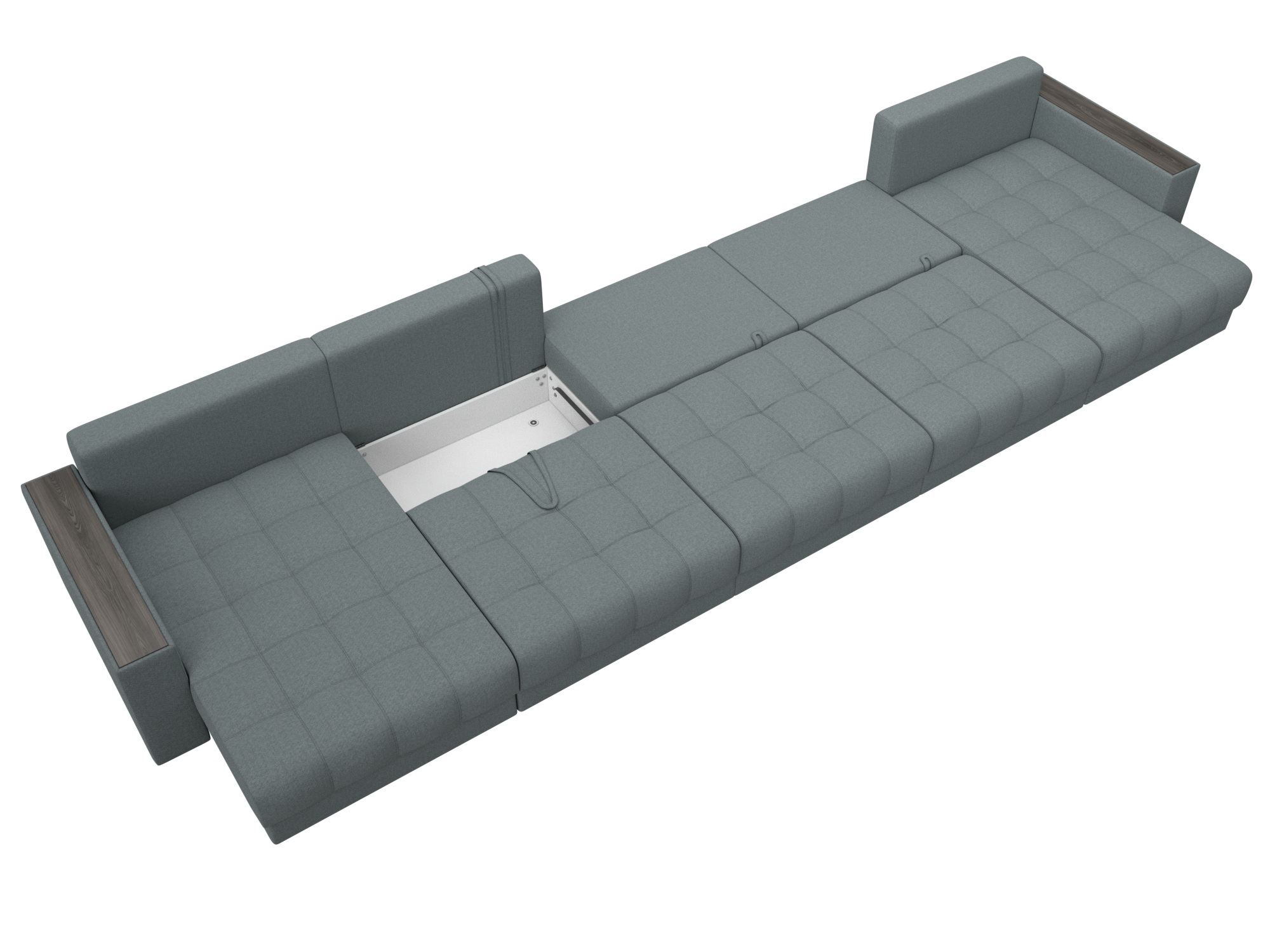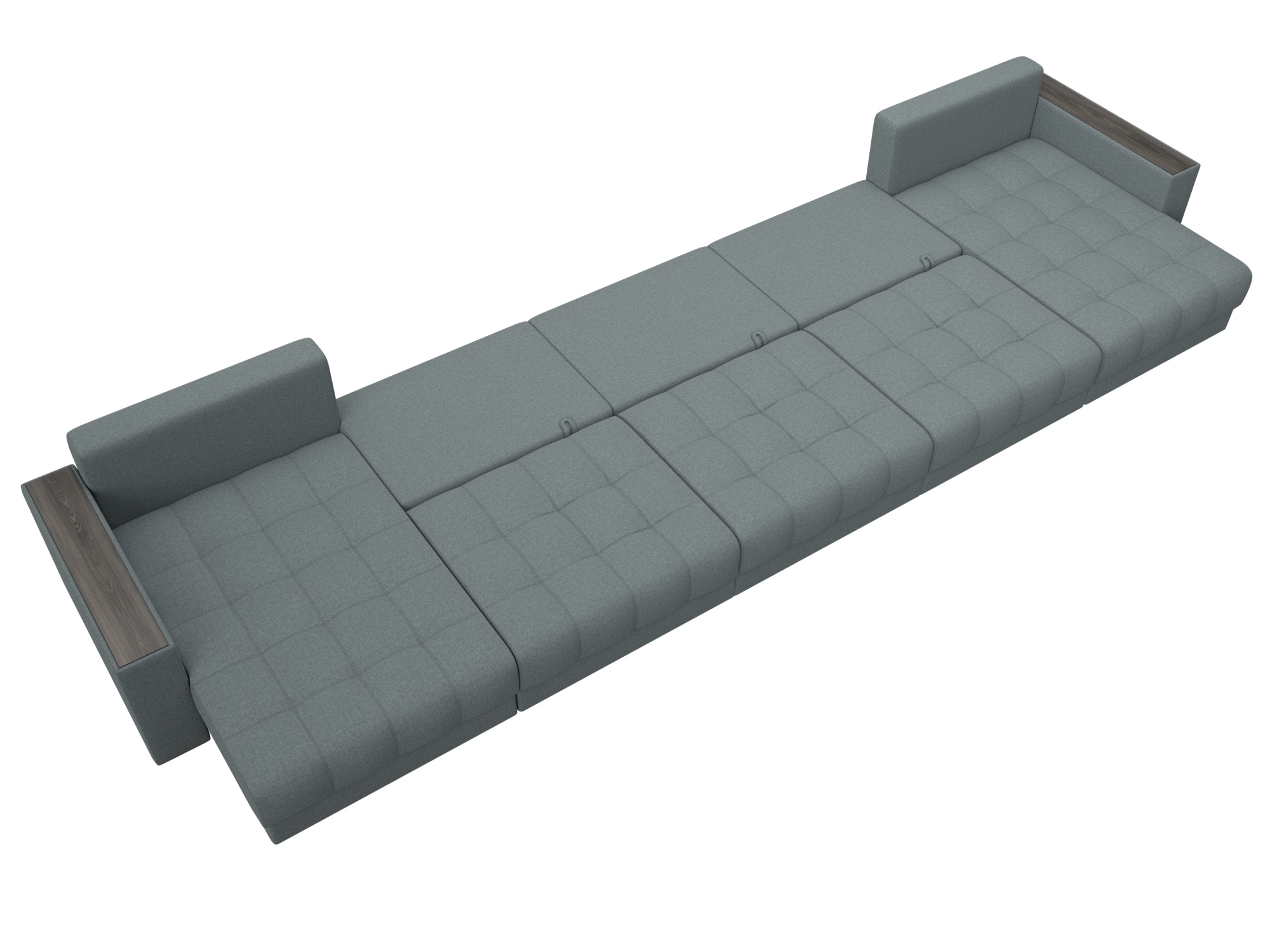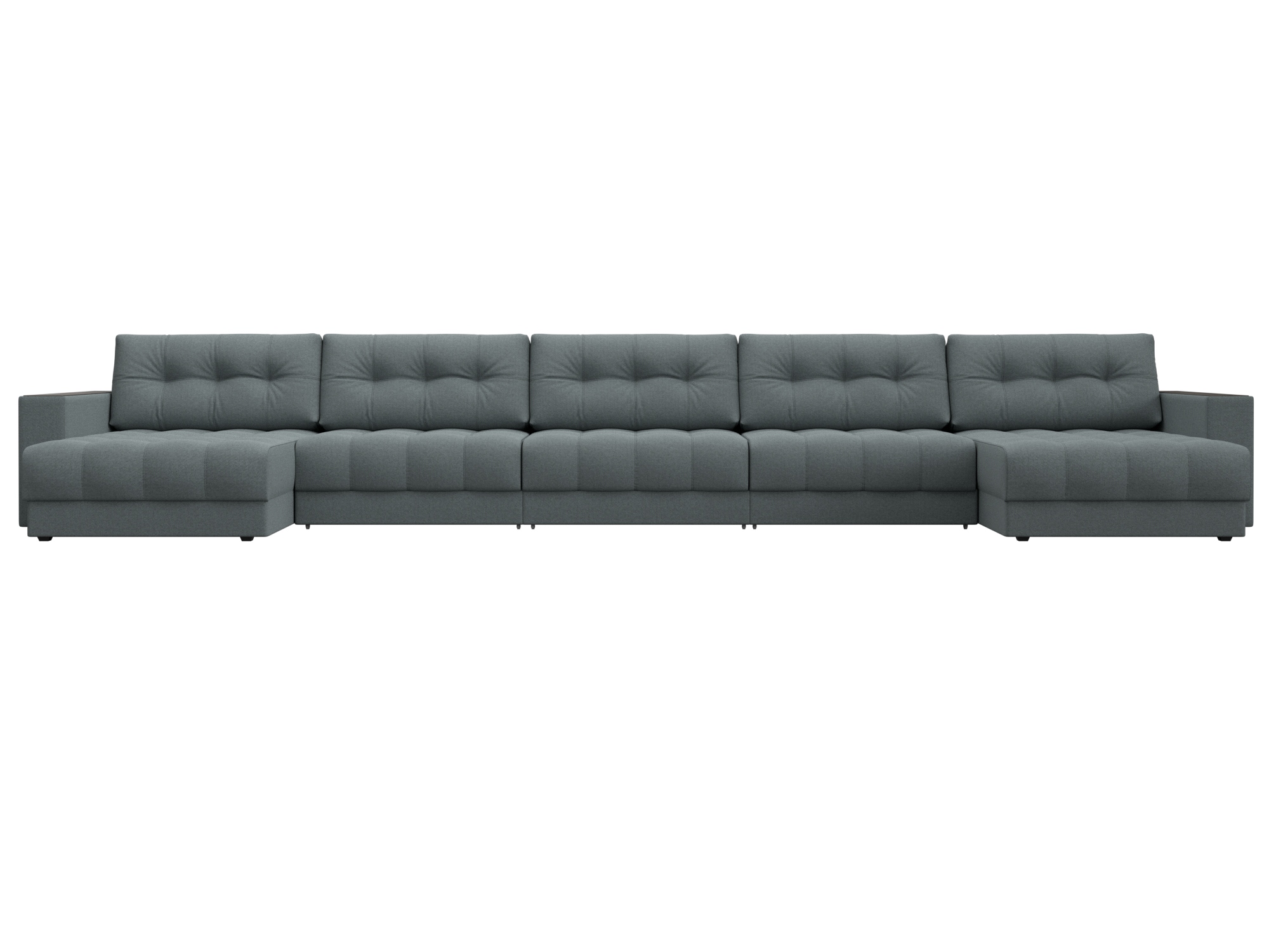 Диван П-образный с декором Лига-049 НПБ Мегалонг, Амур 07 серый, Рогожка