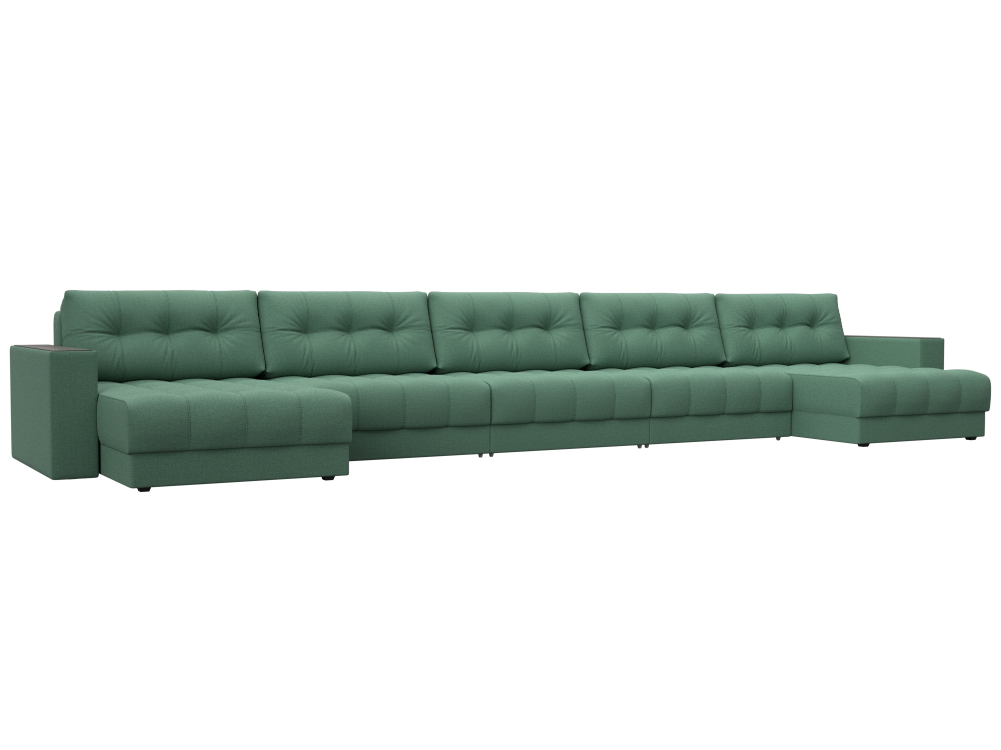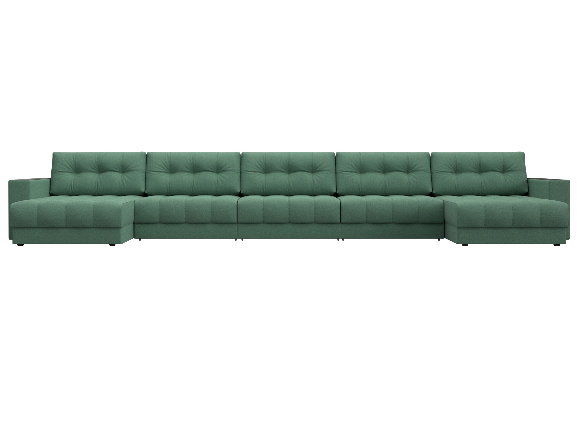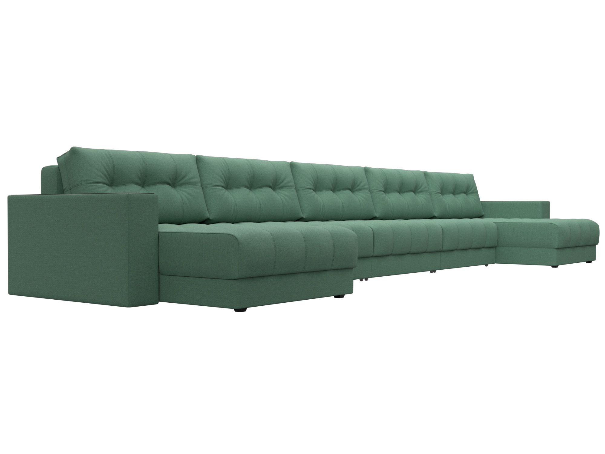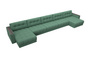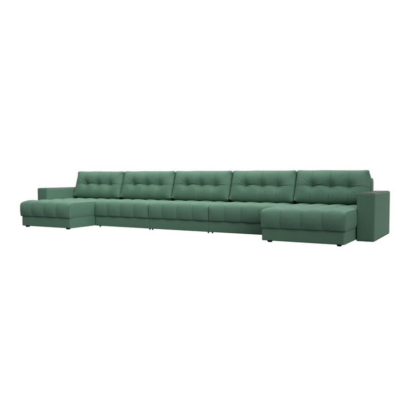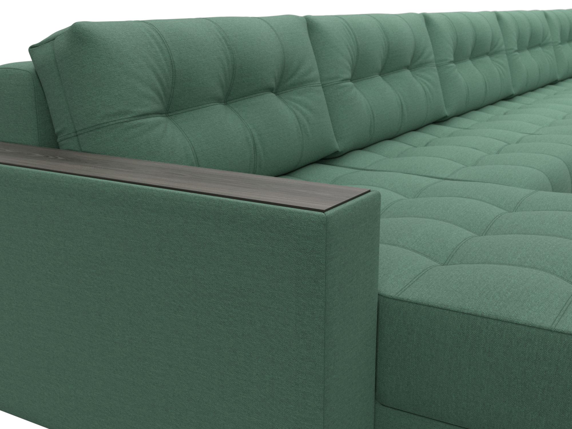 Диван П-образный с декором Лига-049 НПБ Мегалонг, Амур 11 зеленый, Рогожка