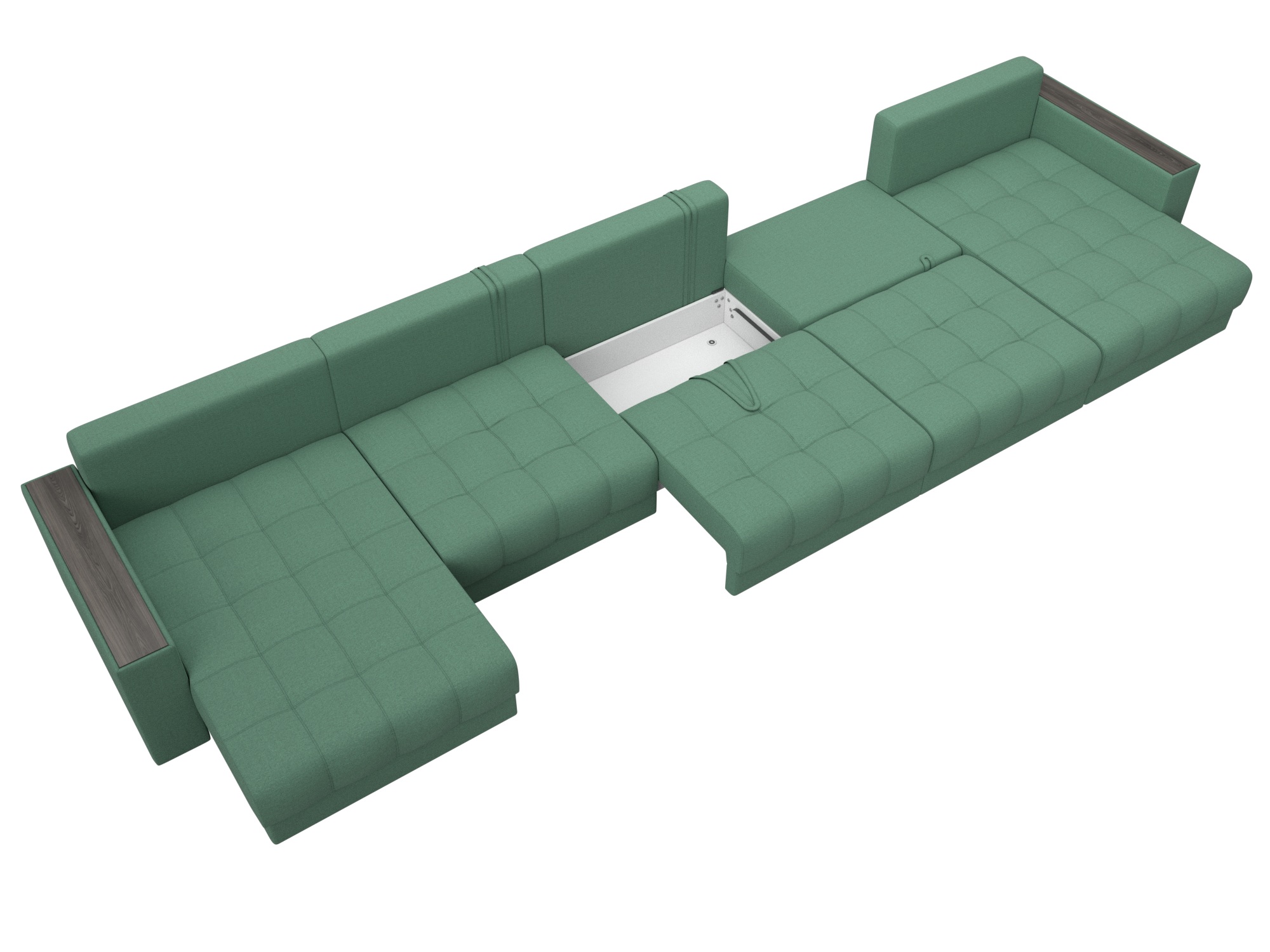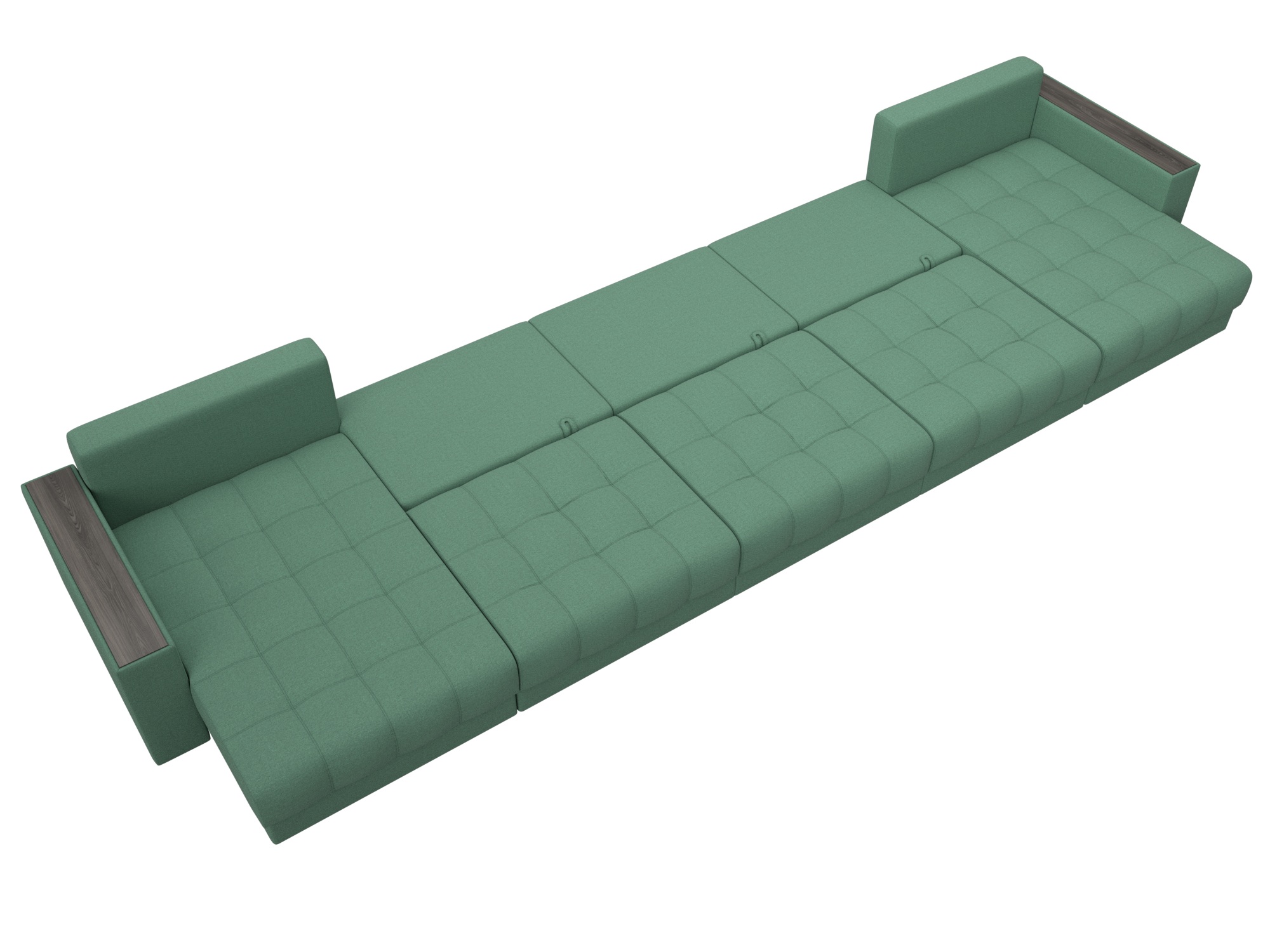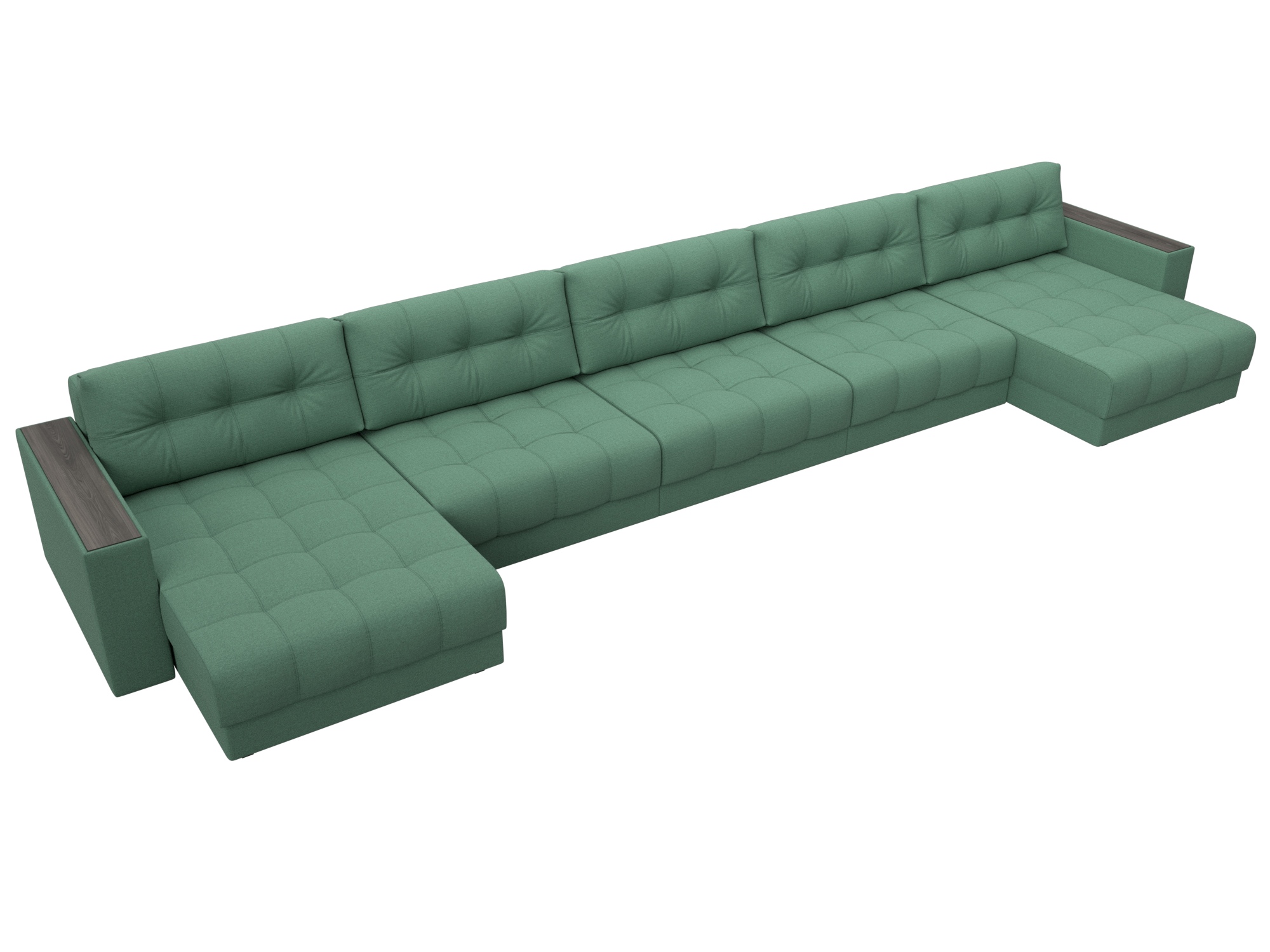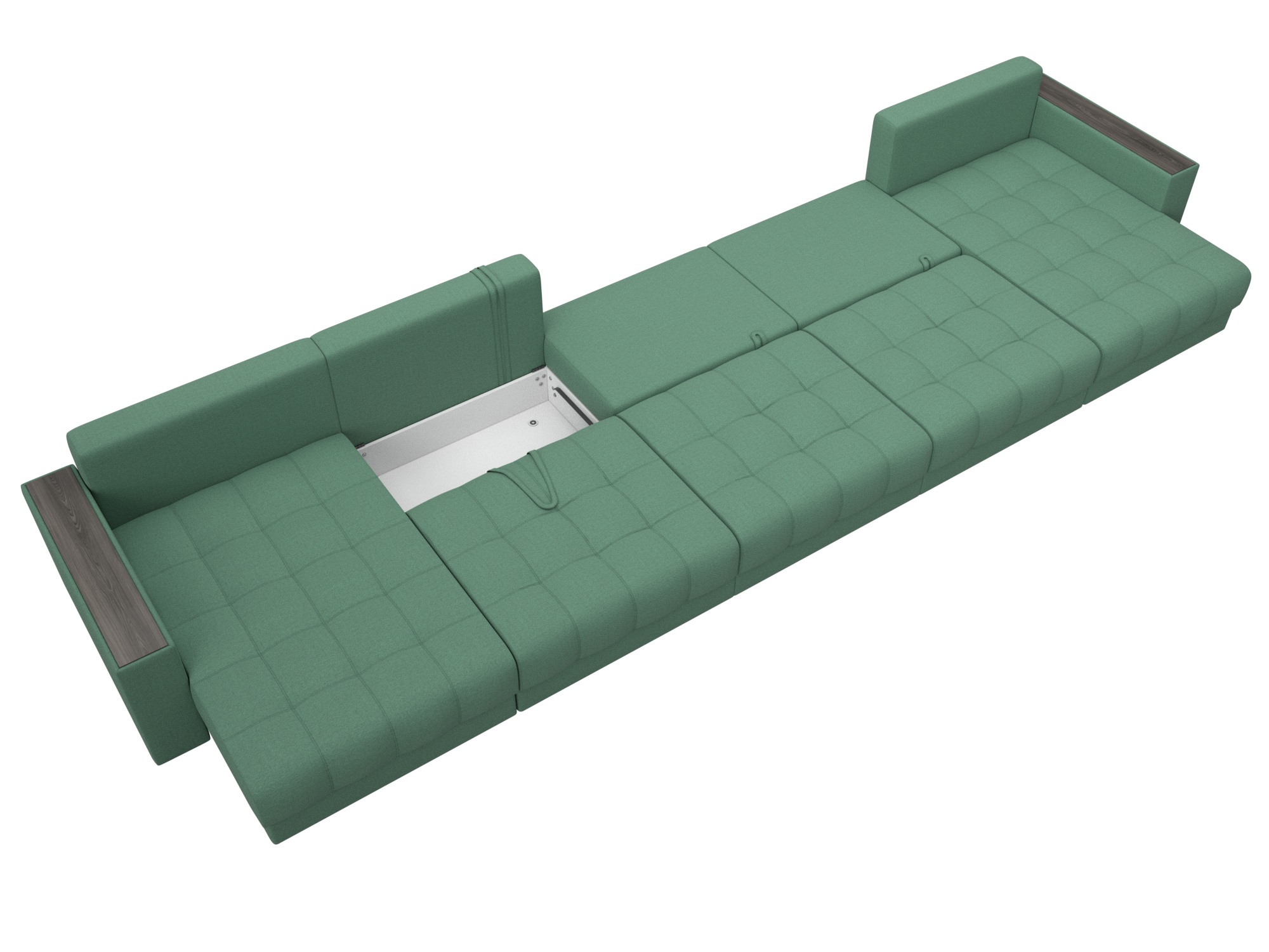 Диван П-образный с декором Лига-049 НПБ Мегалонг, Амур 11 зеленый, Рогожка