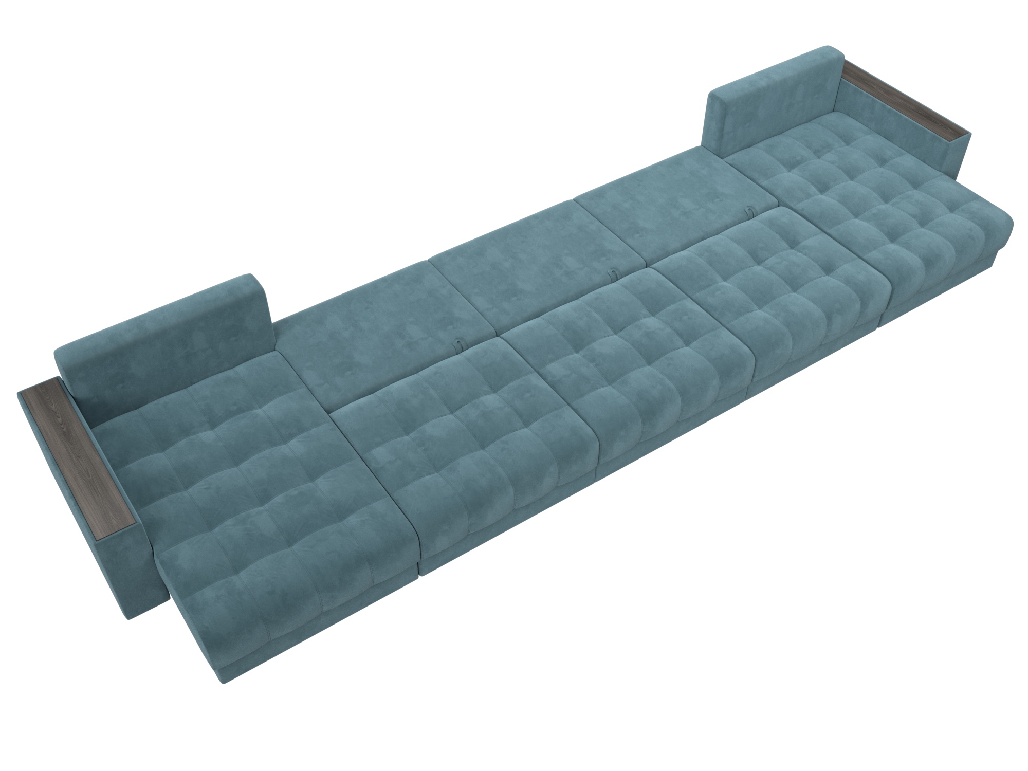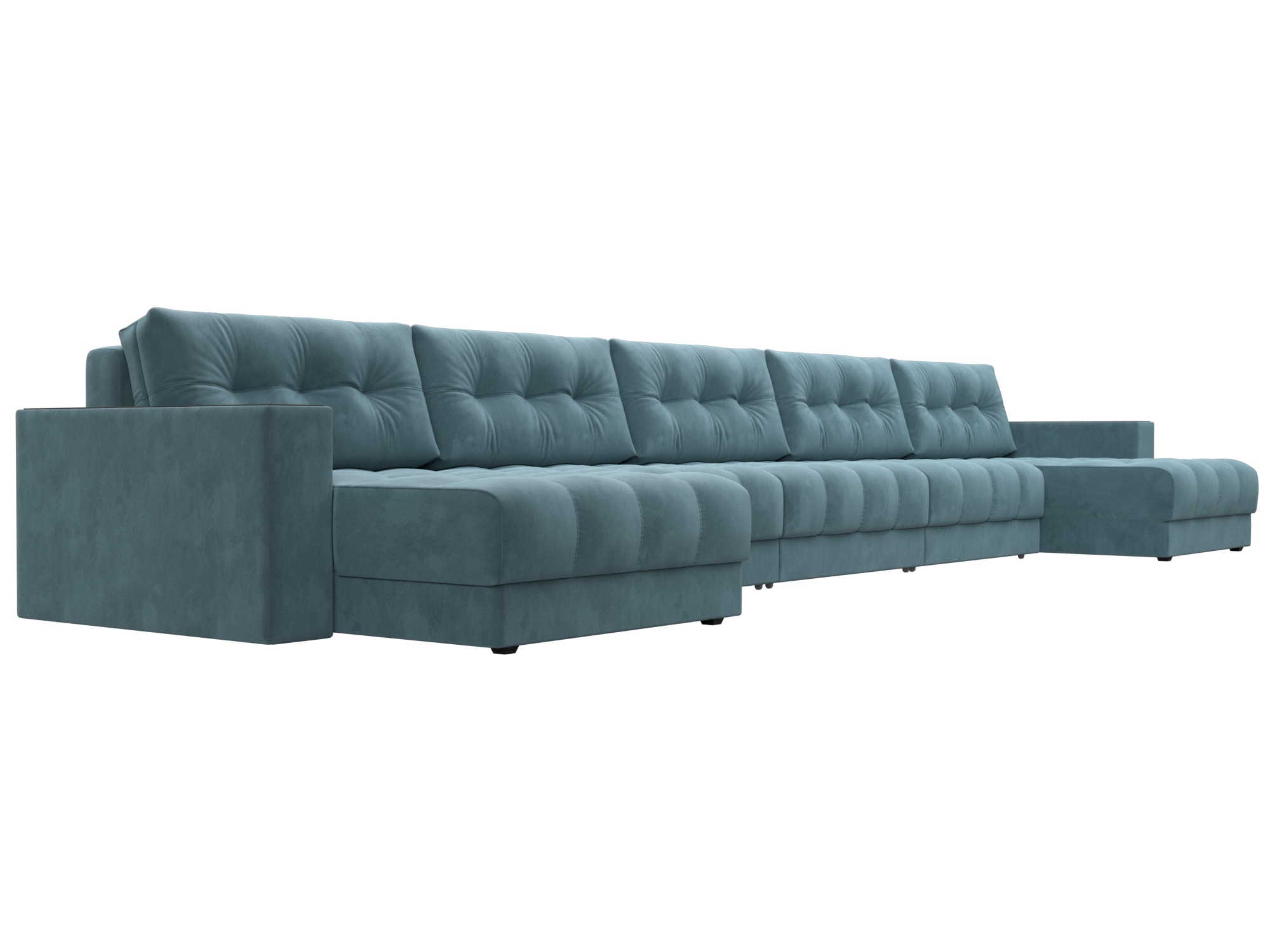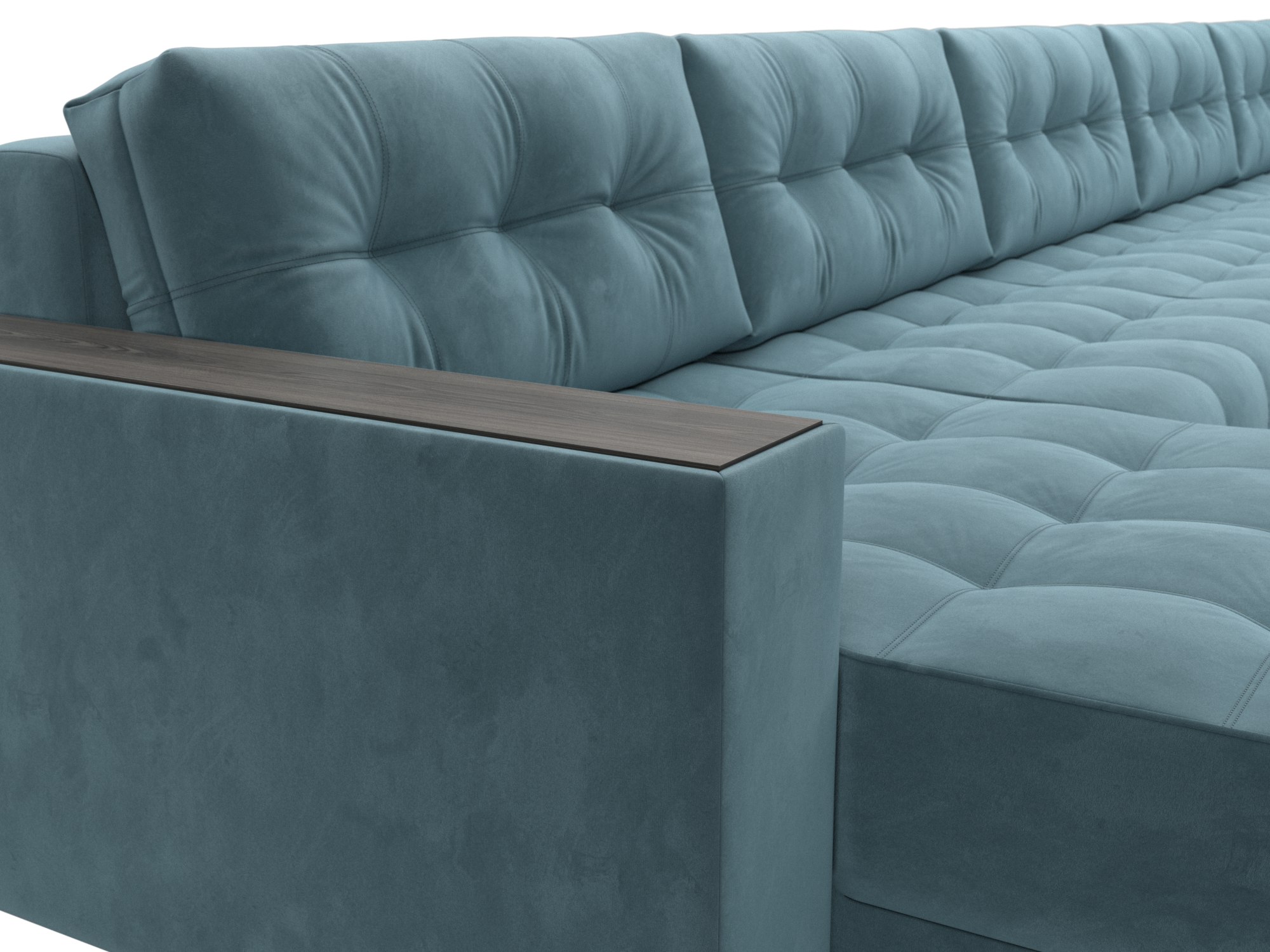 Диван П-образный с декором Лига-049 НПБ Мегалонг, SEVEN 113 бирюзовый, Велюр