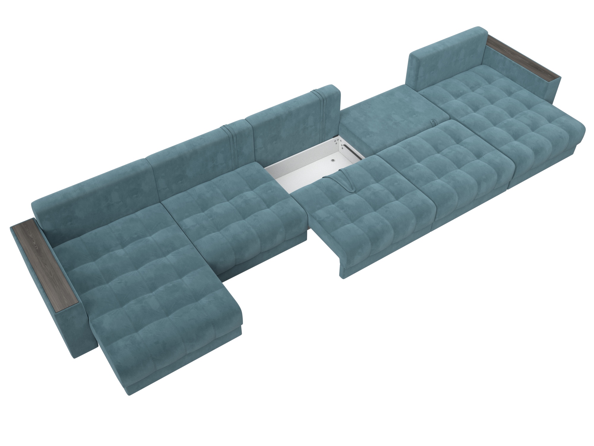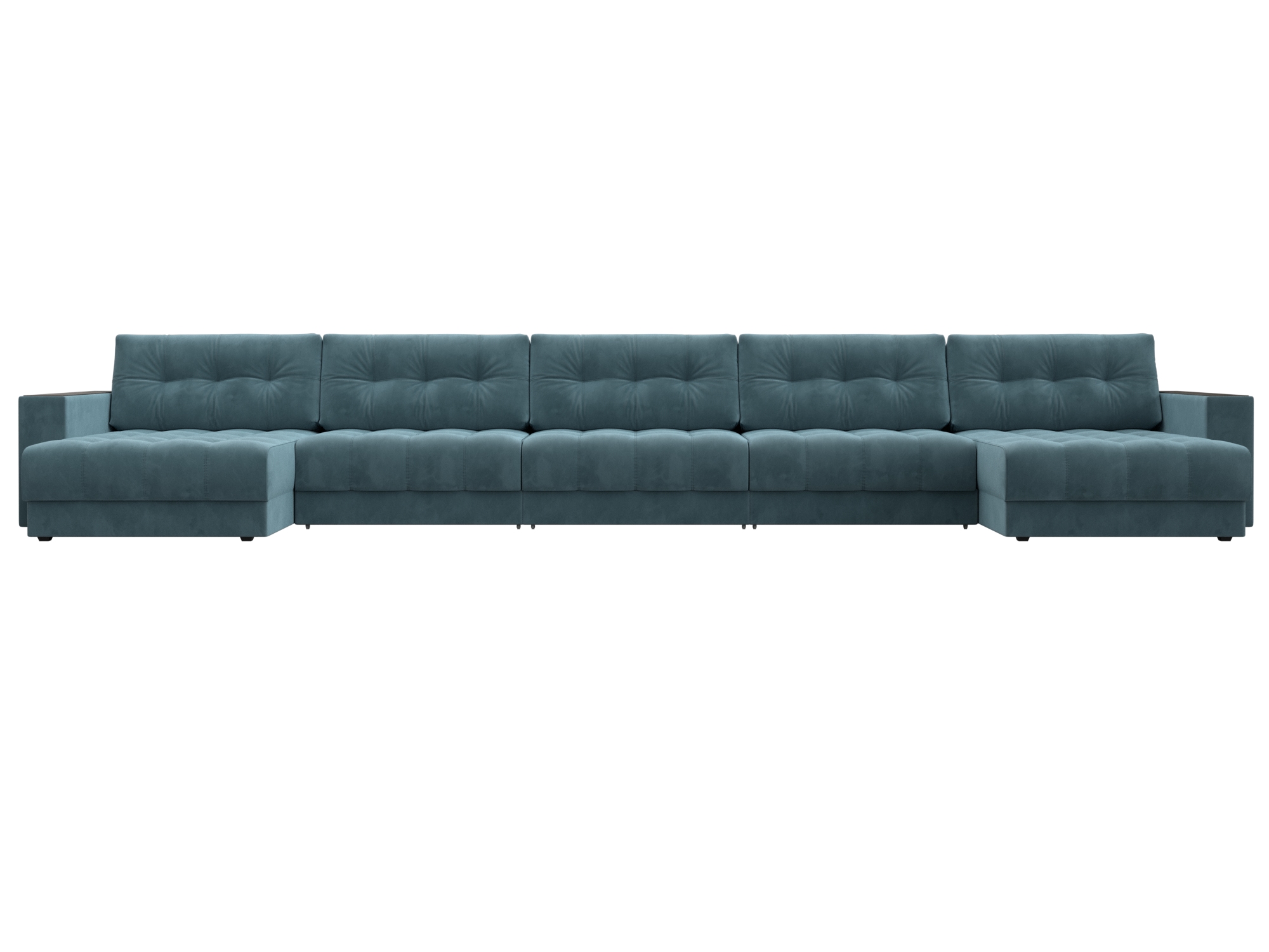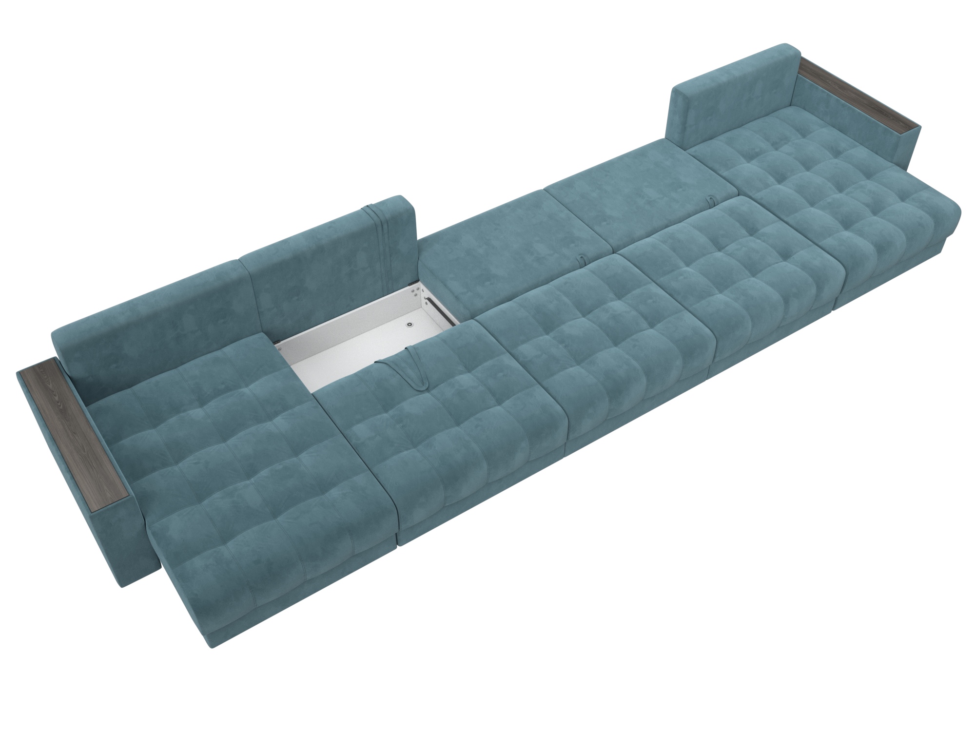 Диван П-образный с декором Лига-049 НПБ Мегалонг, SEVEN 113 бирюзовый, Велюр