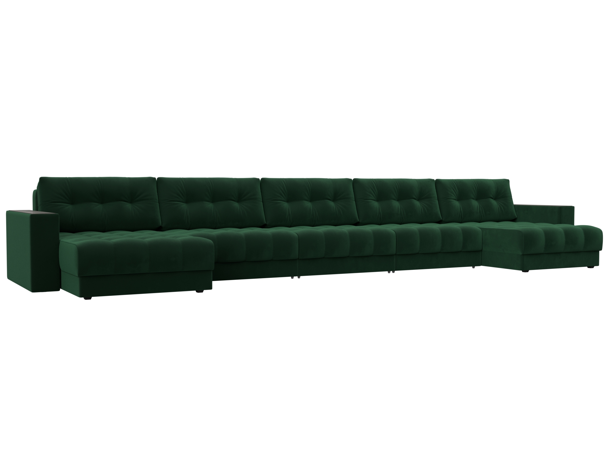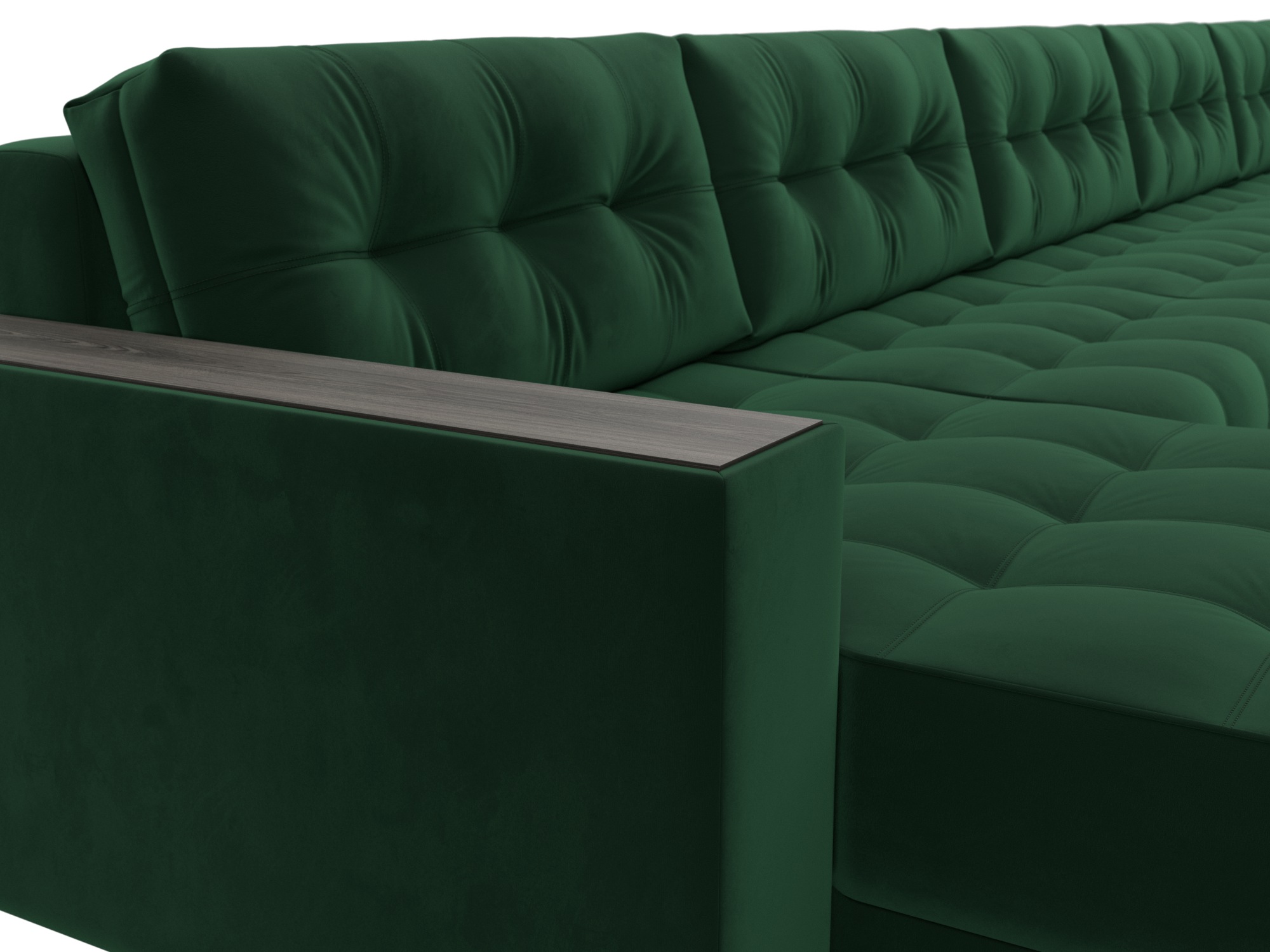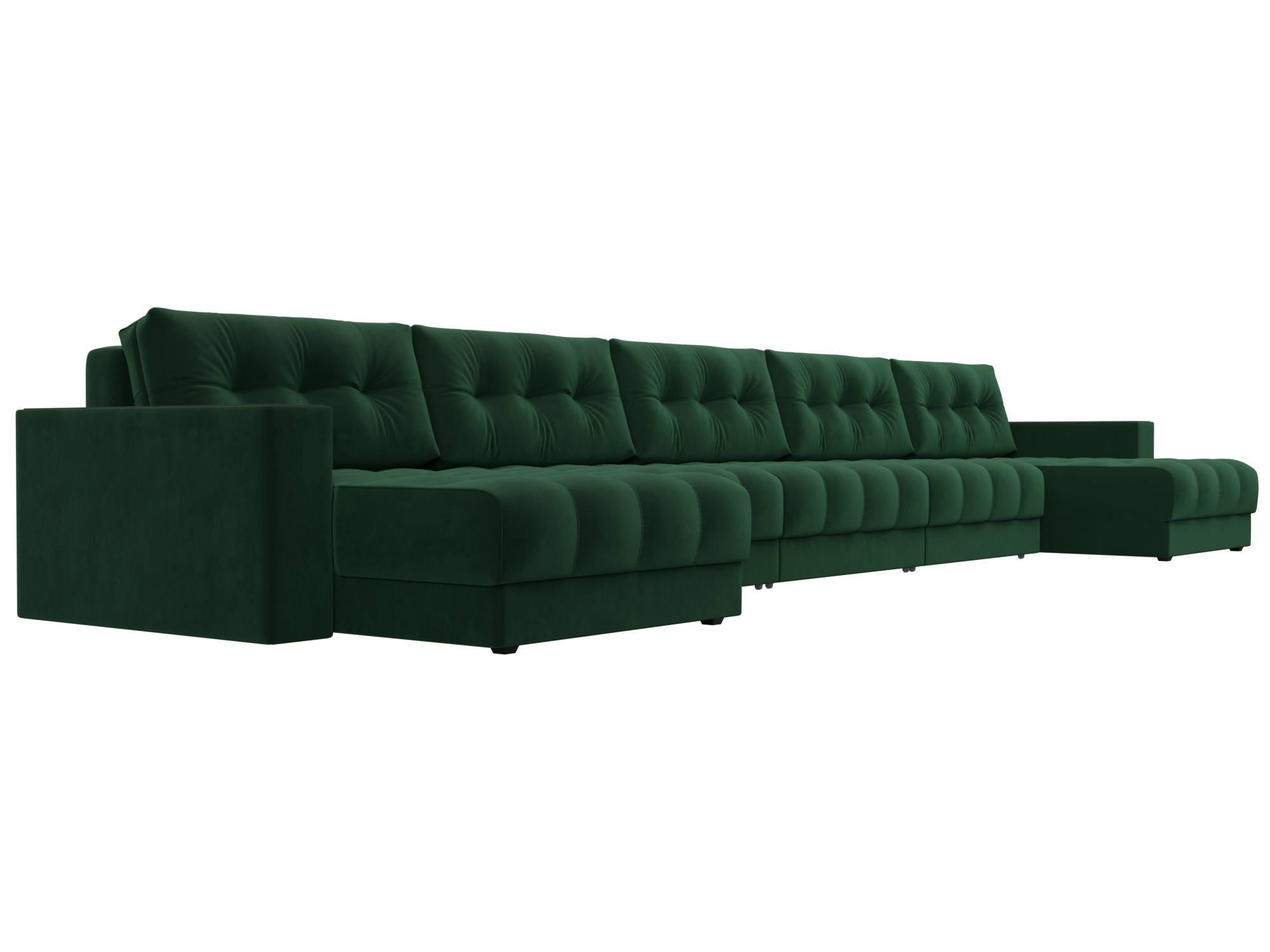 Диван П-образный с декором Лига-049 НПБ Мегалонг, SEVEN 626 зеленый, Велюр