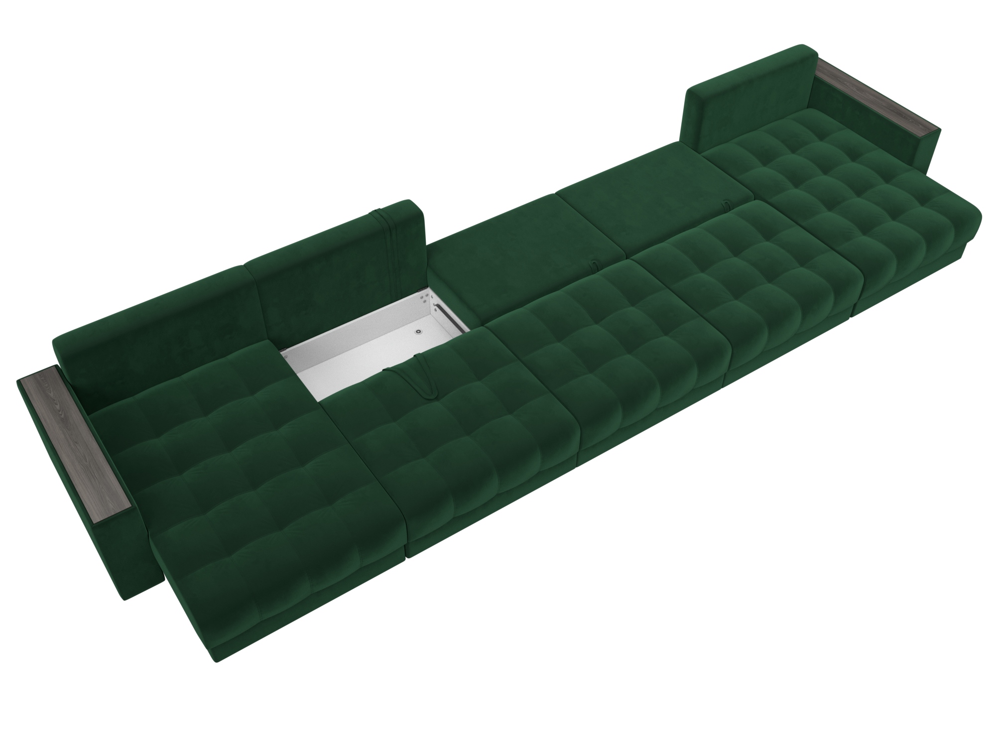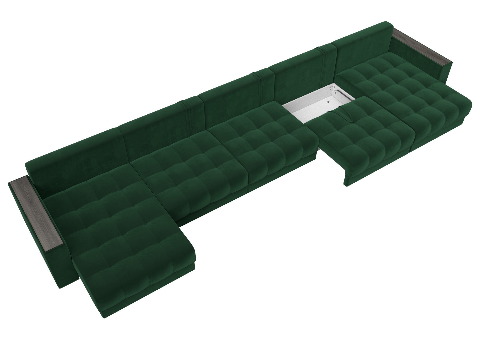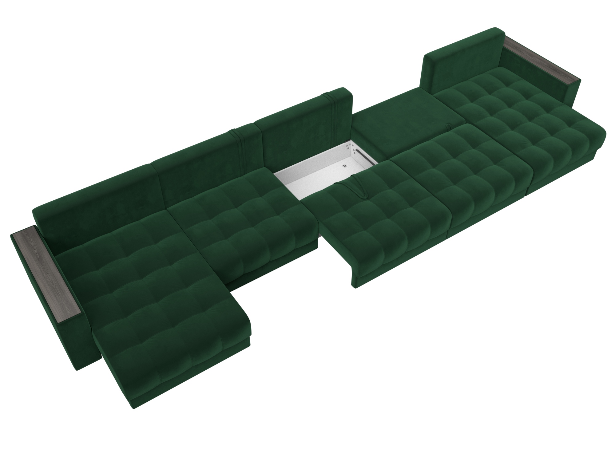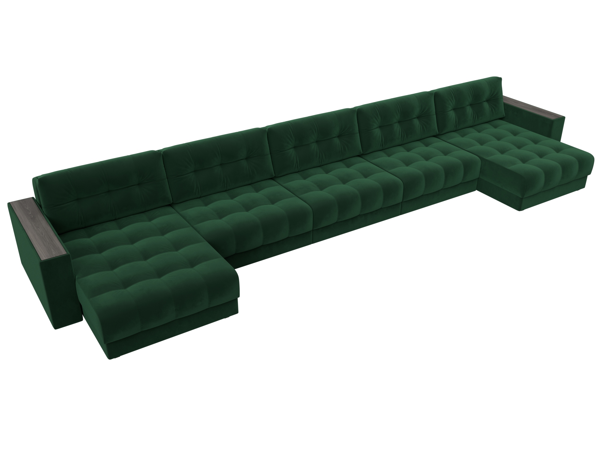 Диван П-образный с декором Лига-049 НПБ Мегалонг, SEVEN 626 зеленый, Велюр