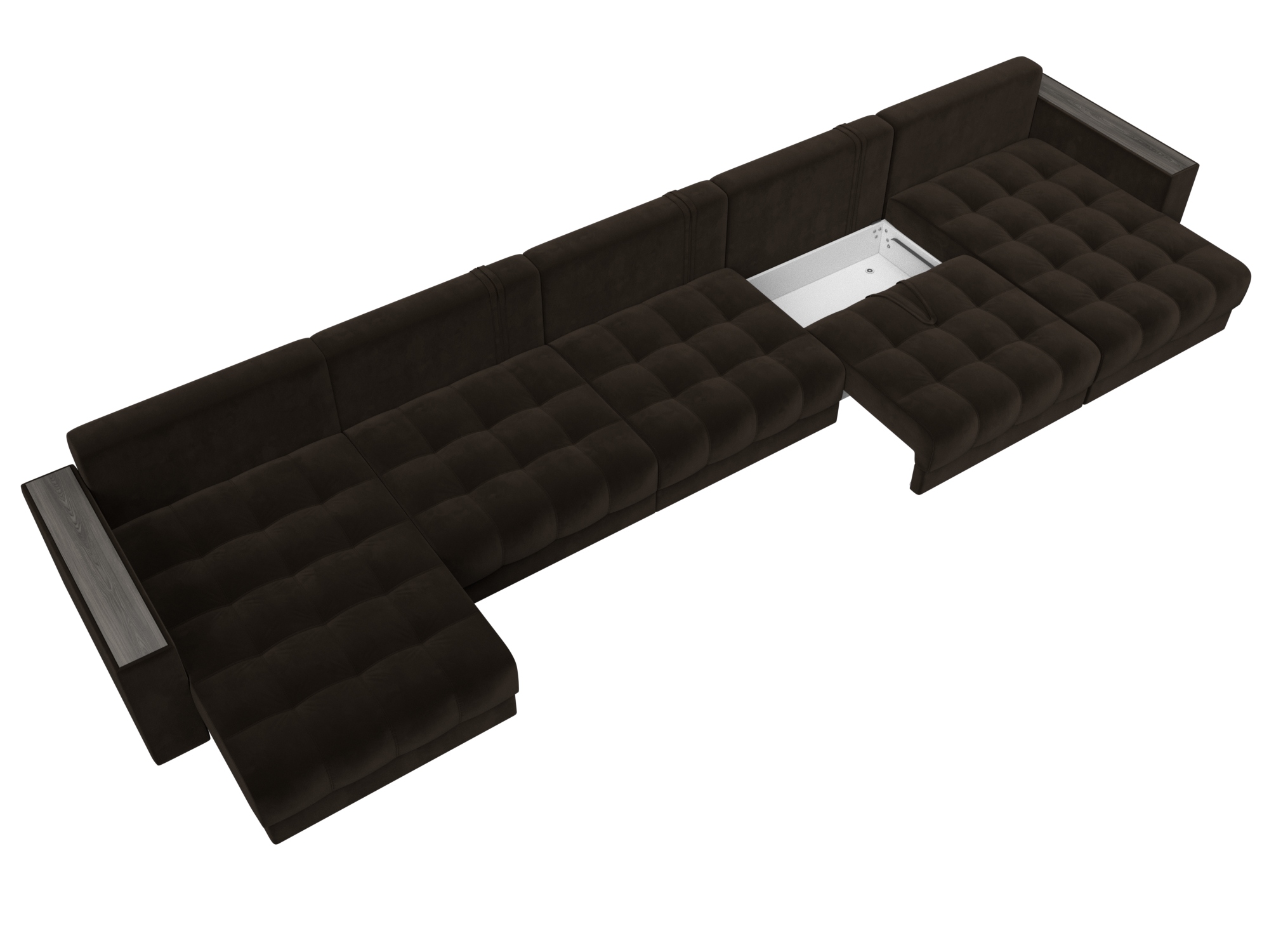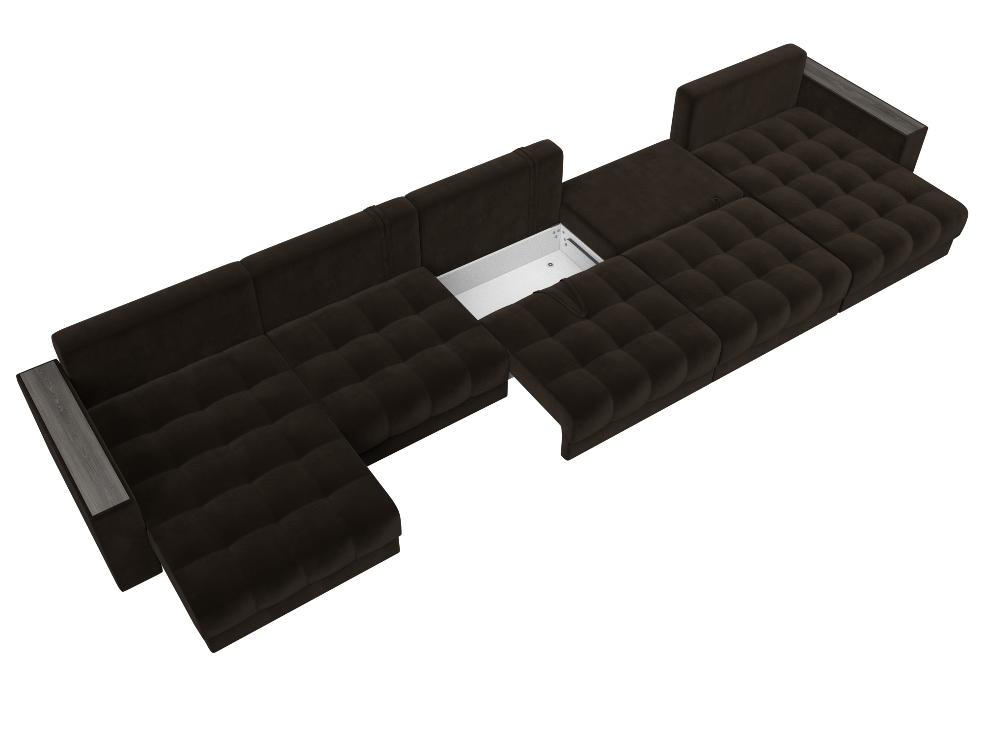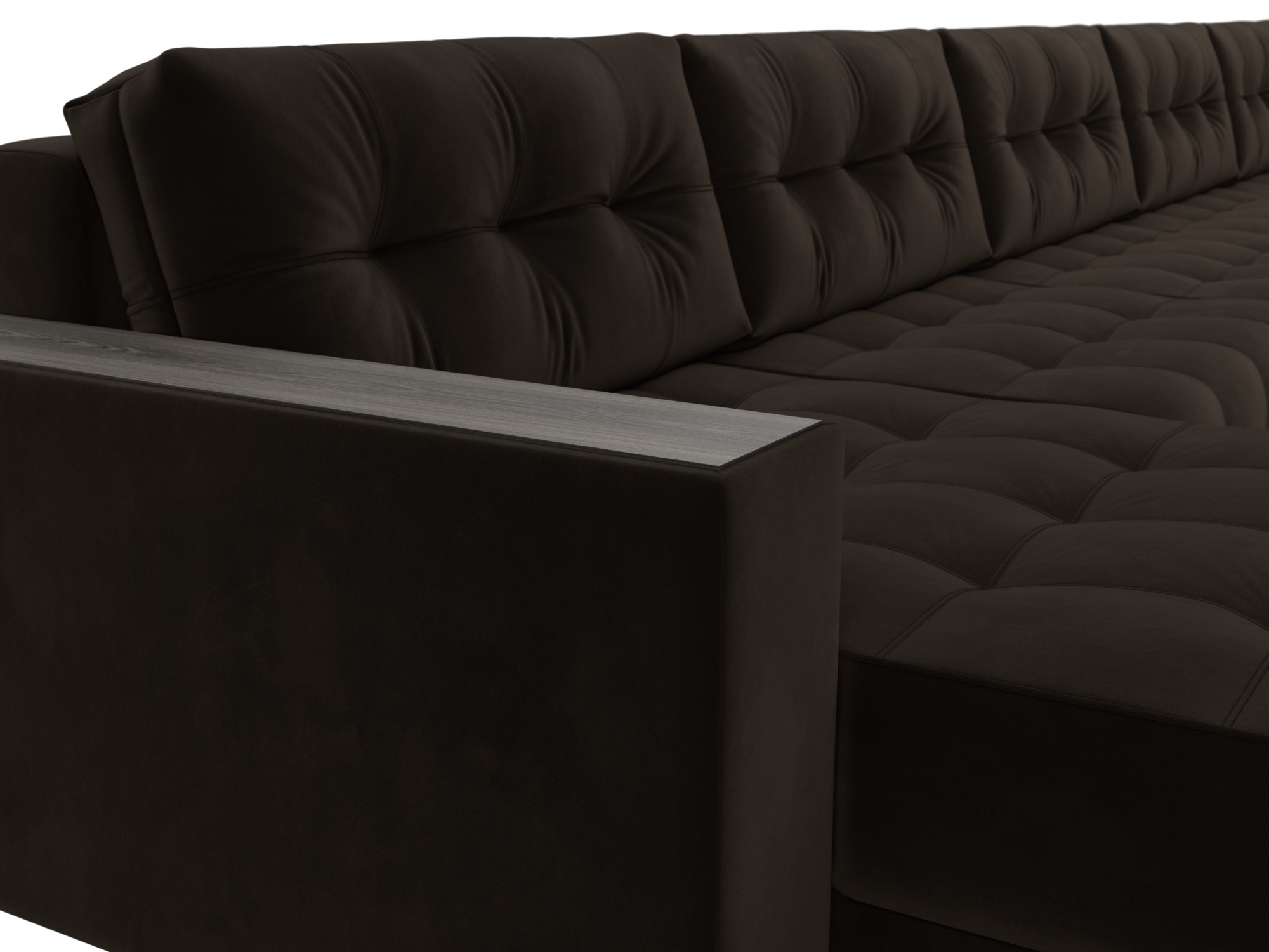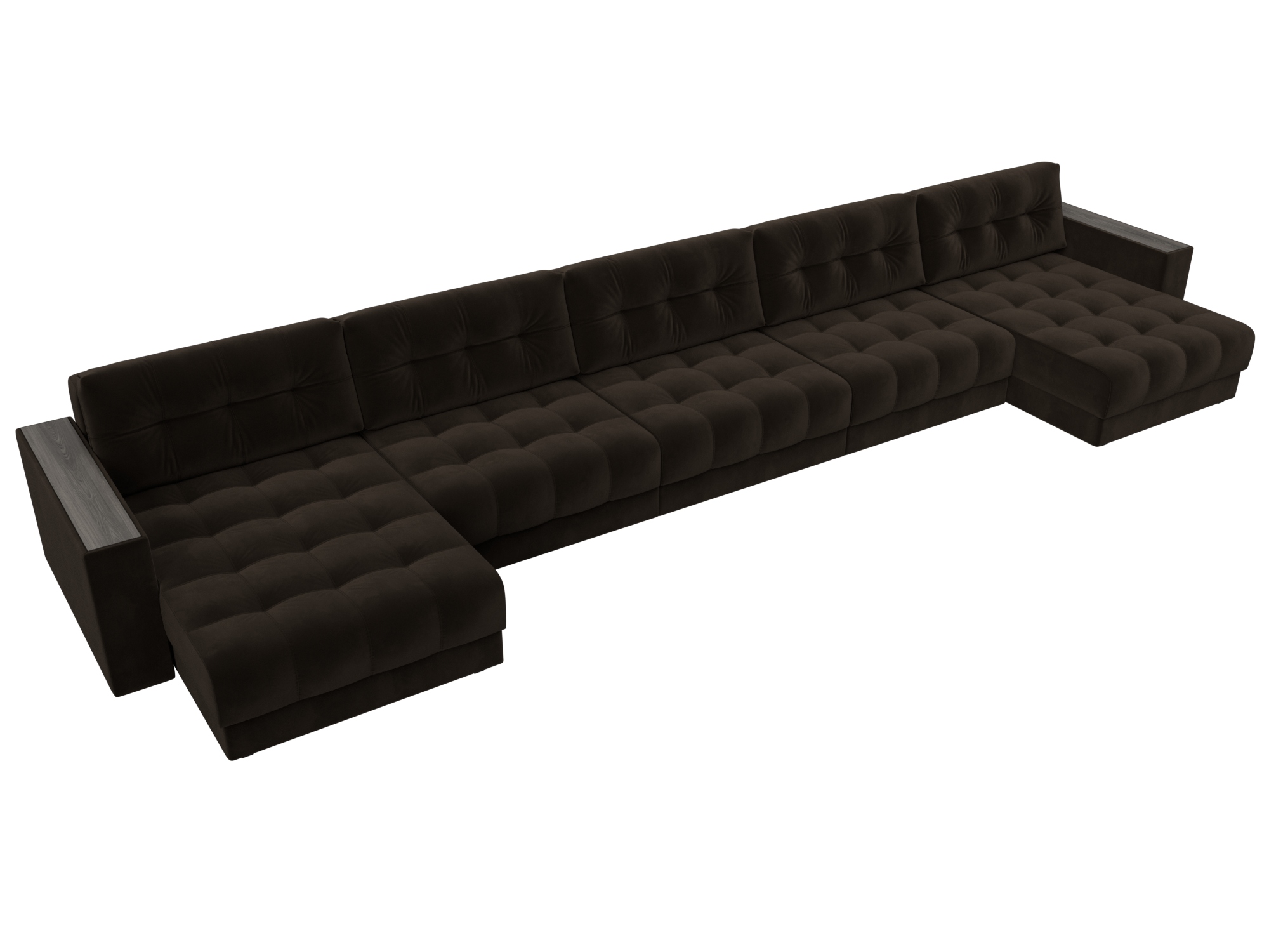 Диван П-образный с декором Лига-049 НПБ Мегалонг, SEVEN 727 коричневый, Велюр
