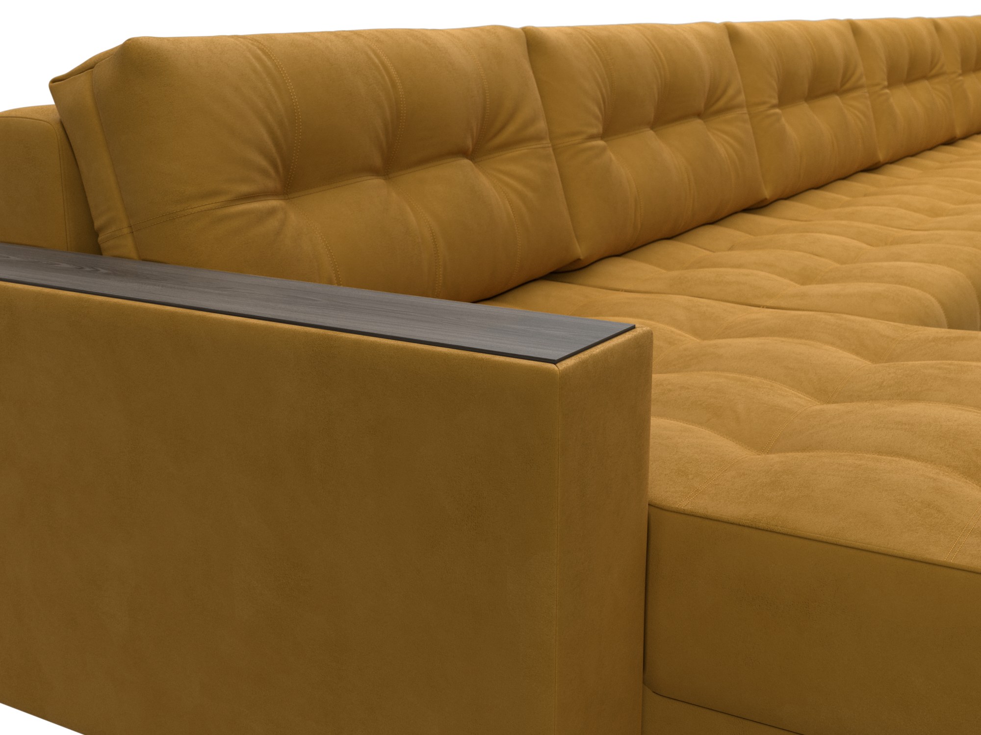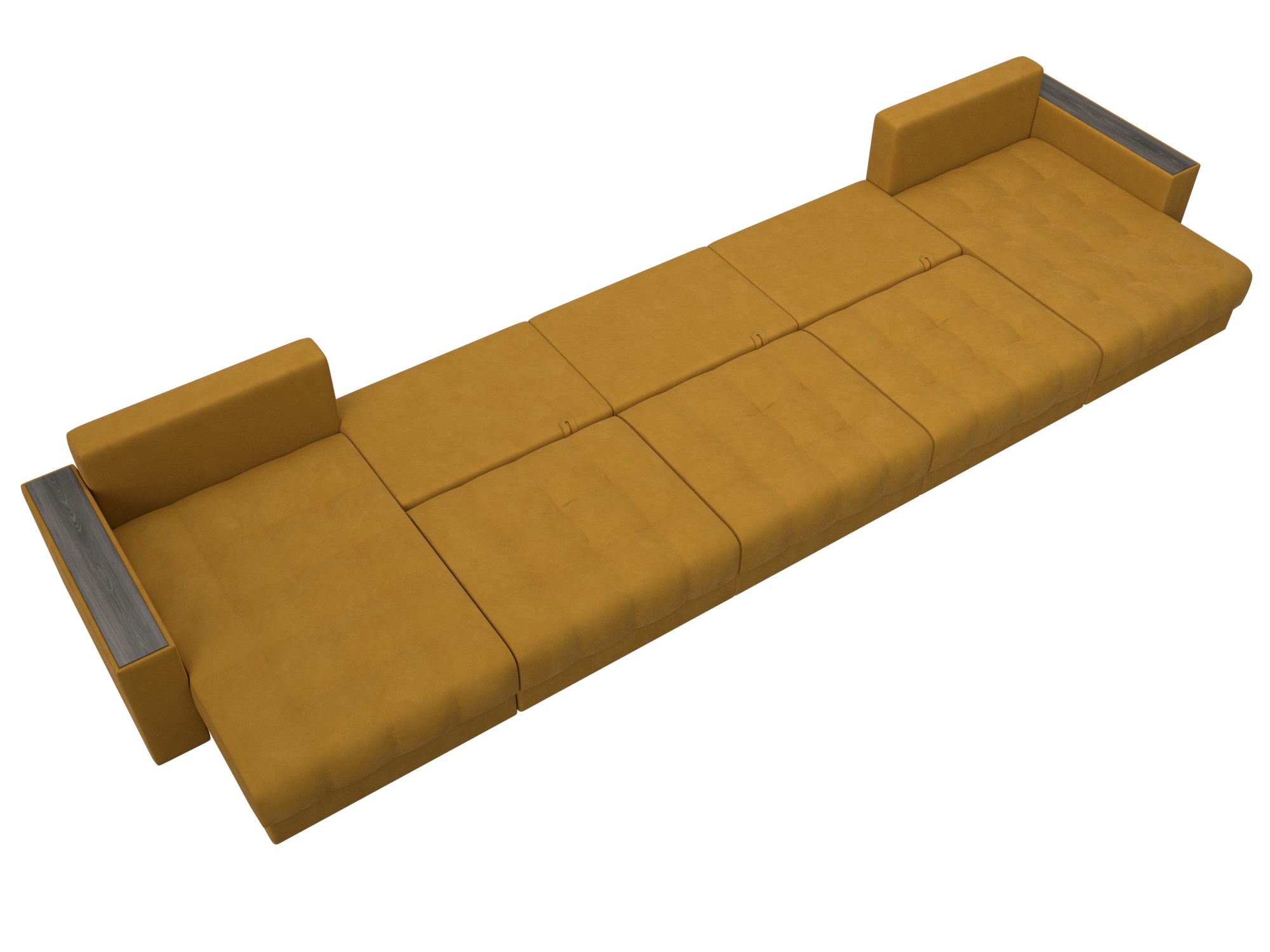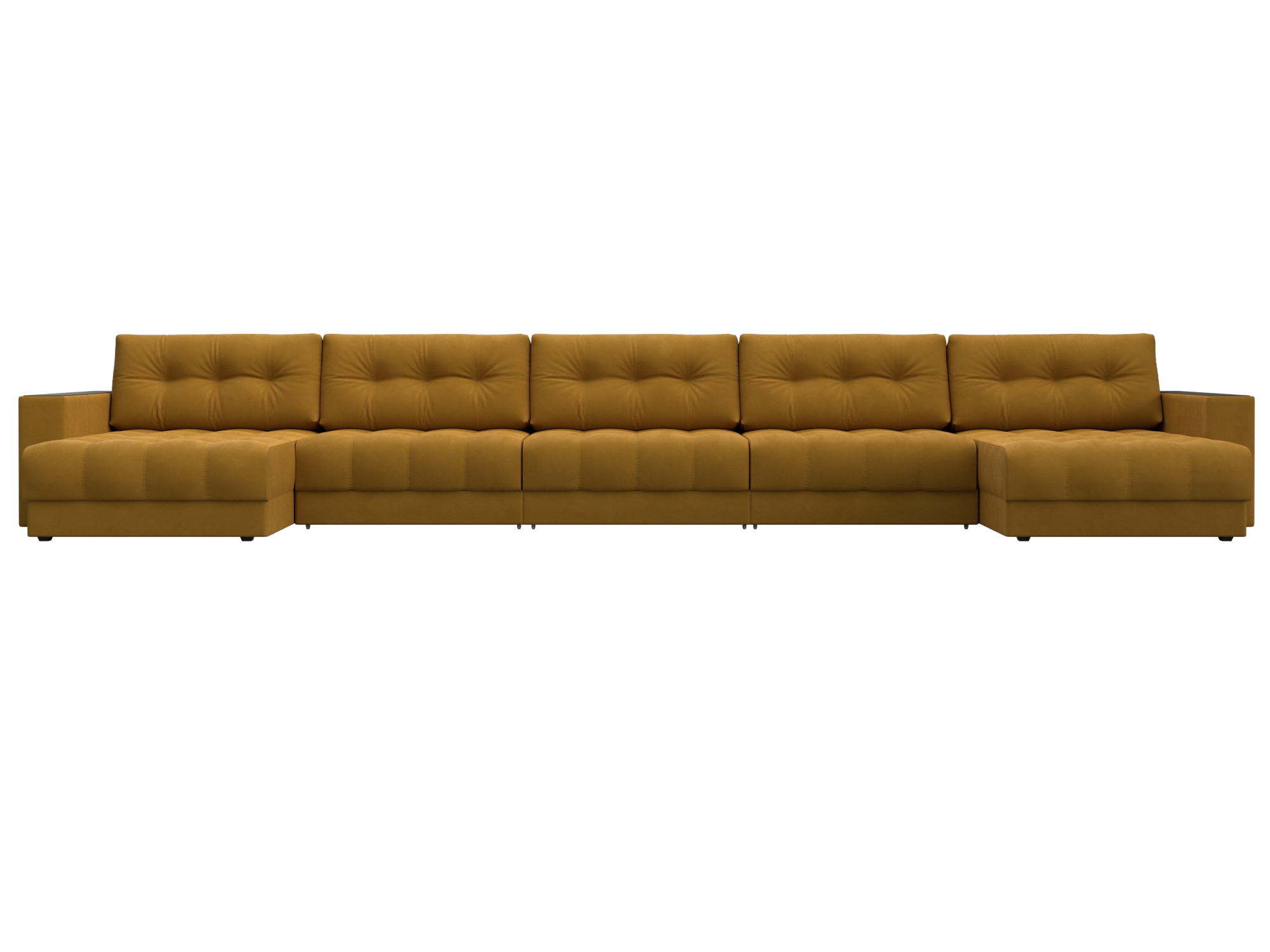 Диван П-образный с декором Лига-049 НПБ Мегалонг, BRUT 10 желтый, Велюр