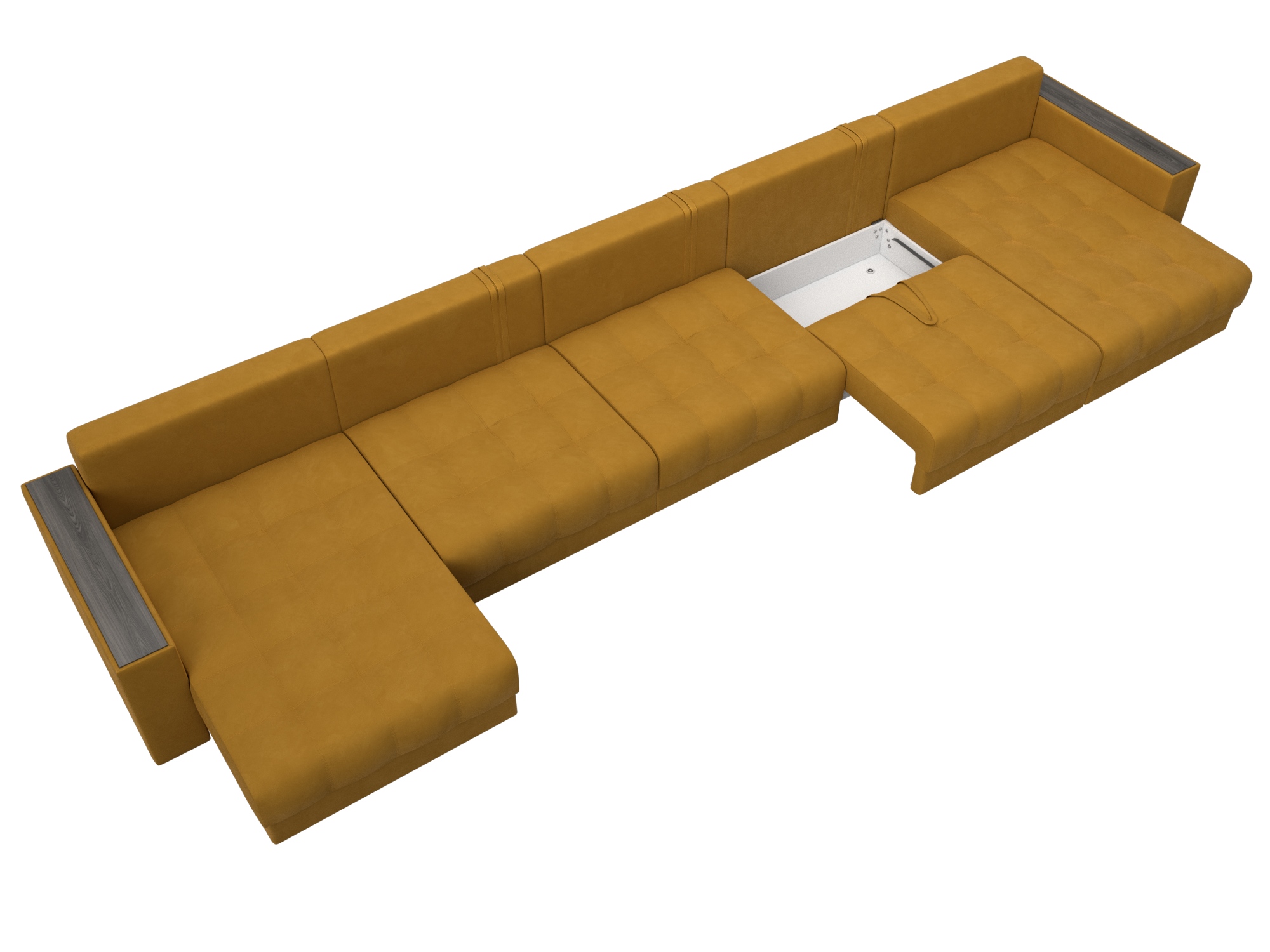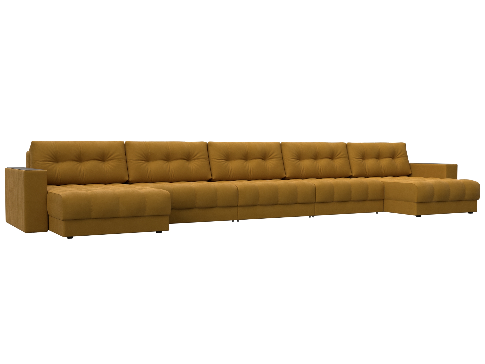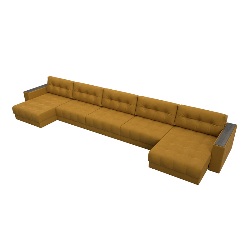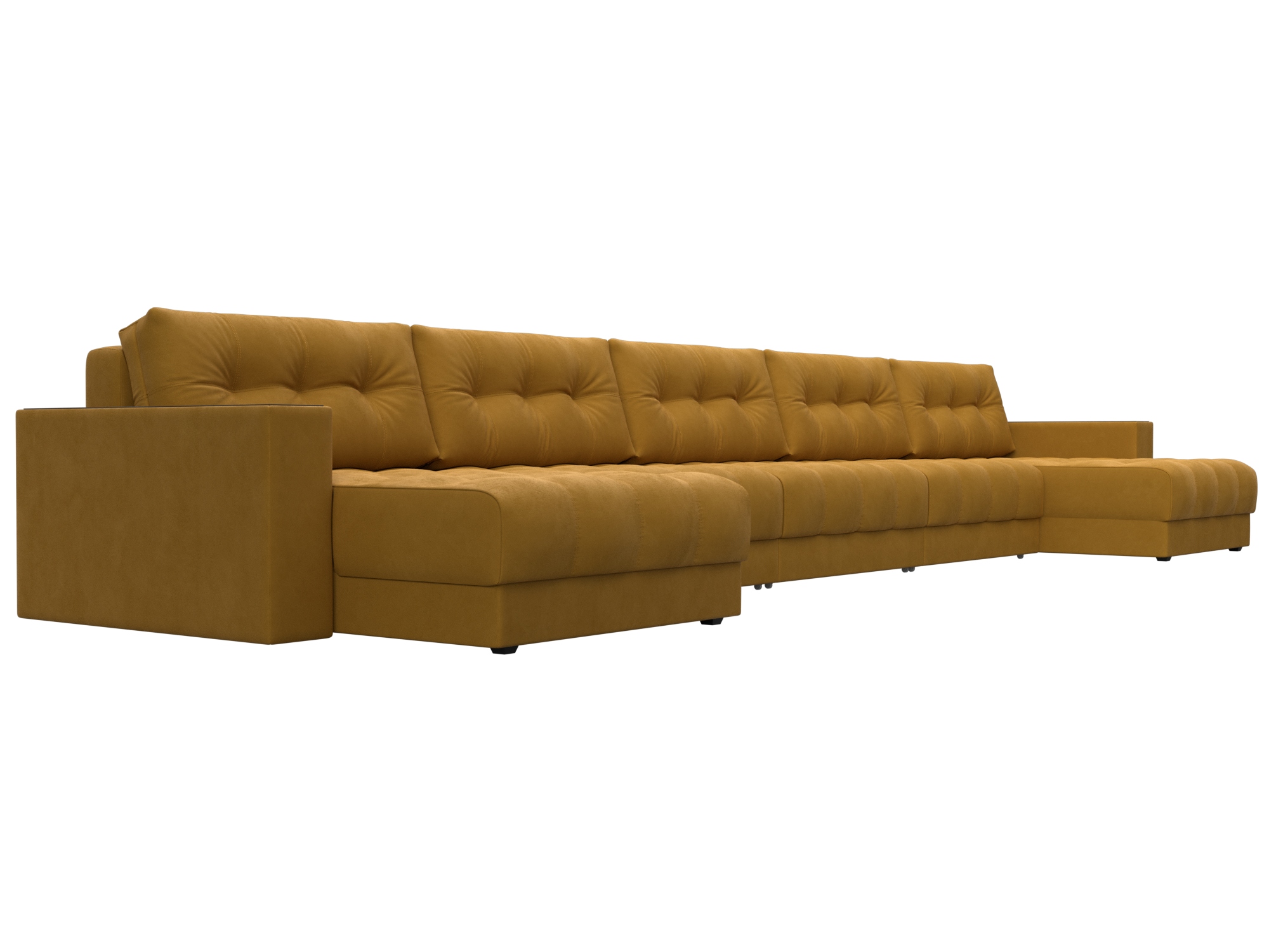 Диван П-образный с декором Лига-049 НПБ Мегалонг, BRUT 10 желтый, Велюр