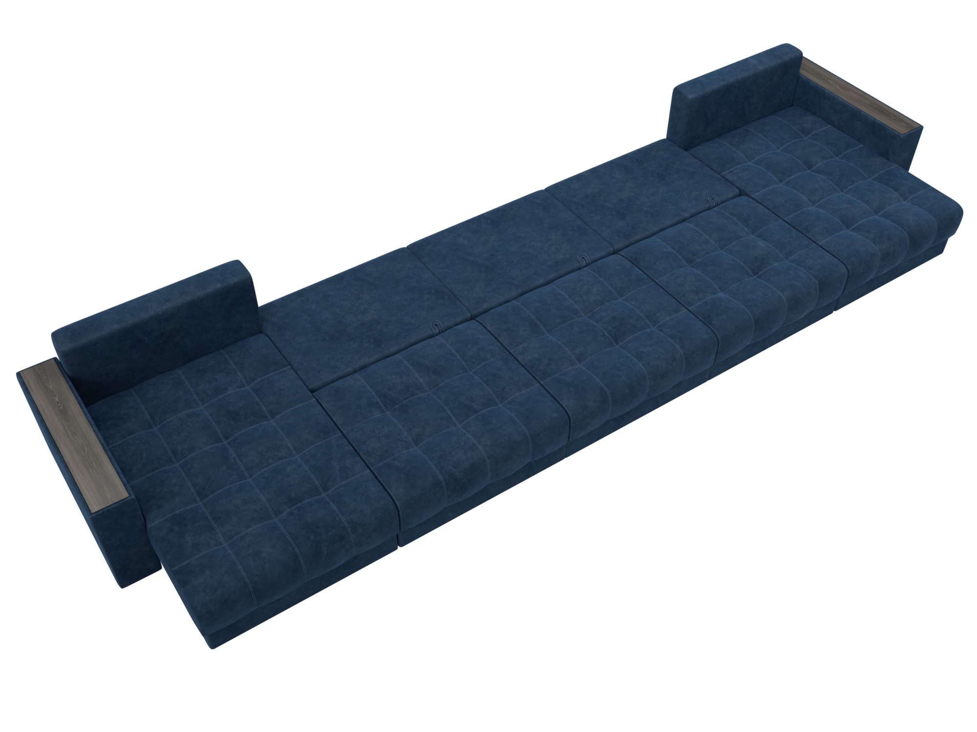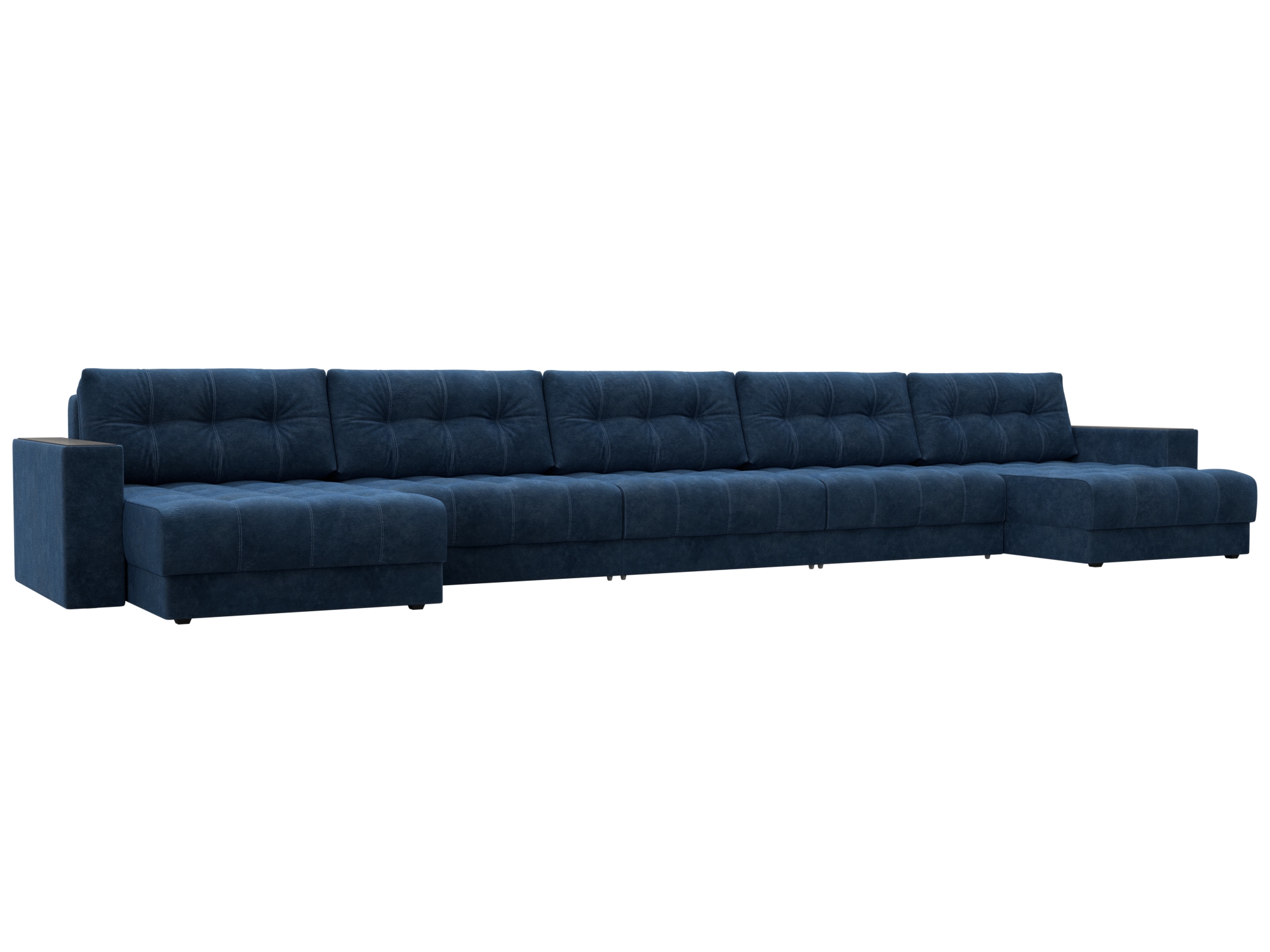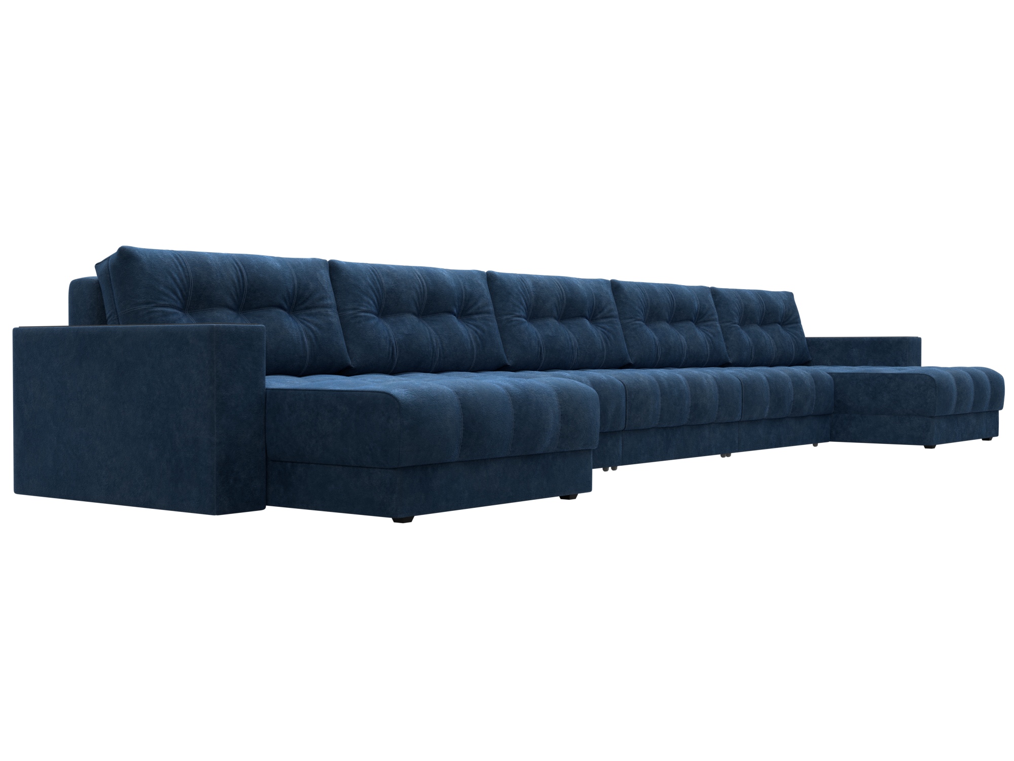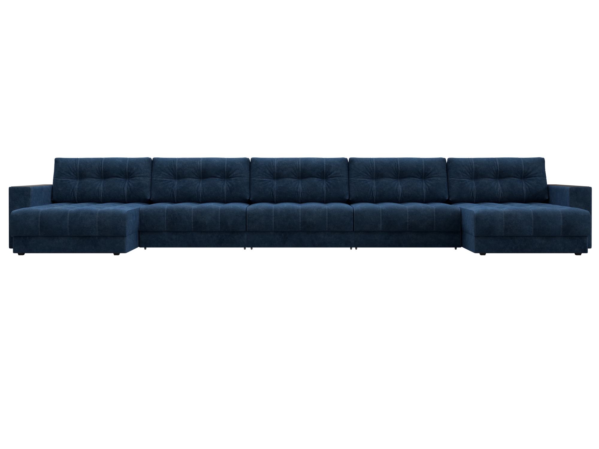 Диван П-образный с декором Лига-049 НПБ Мегалонг, BRUT 11 синий, Велюр