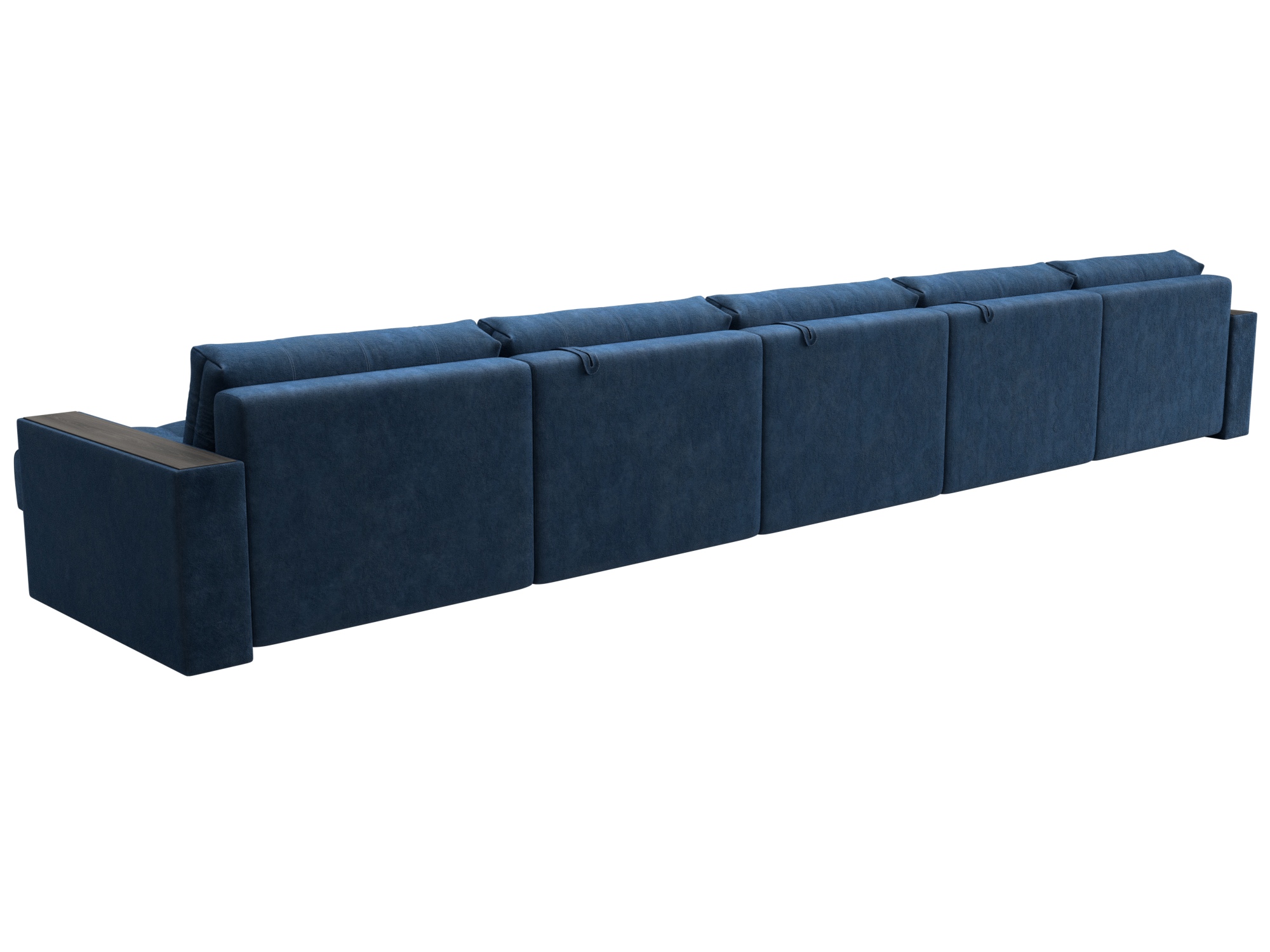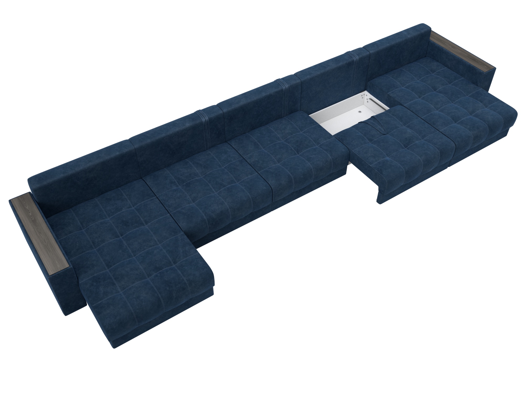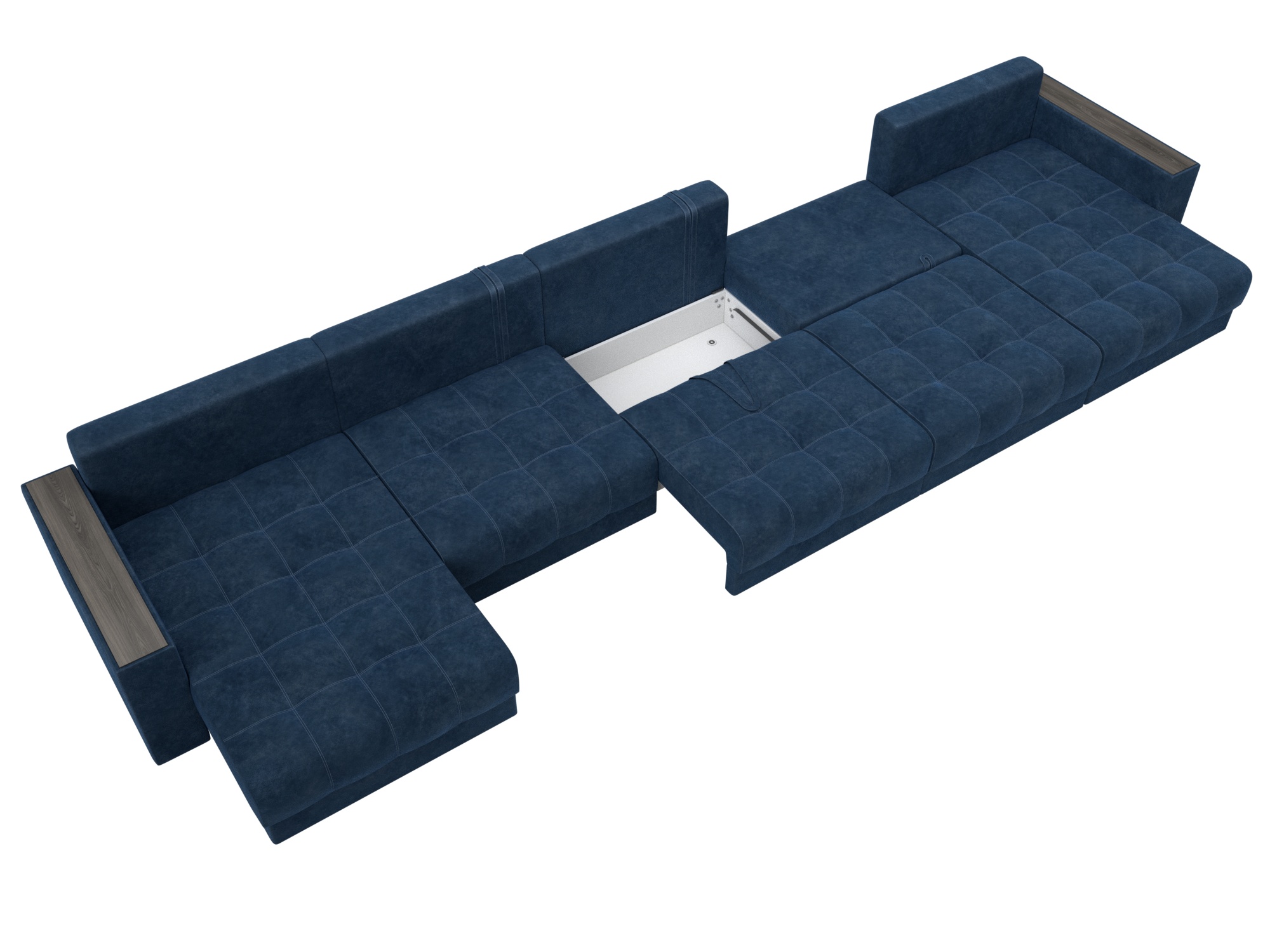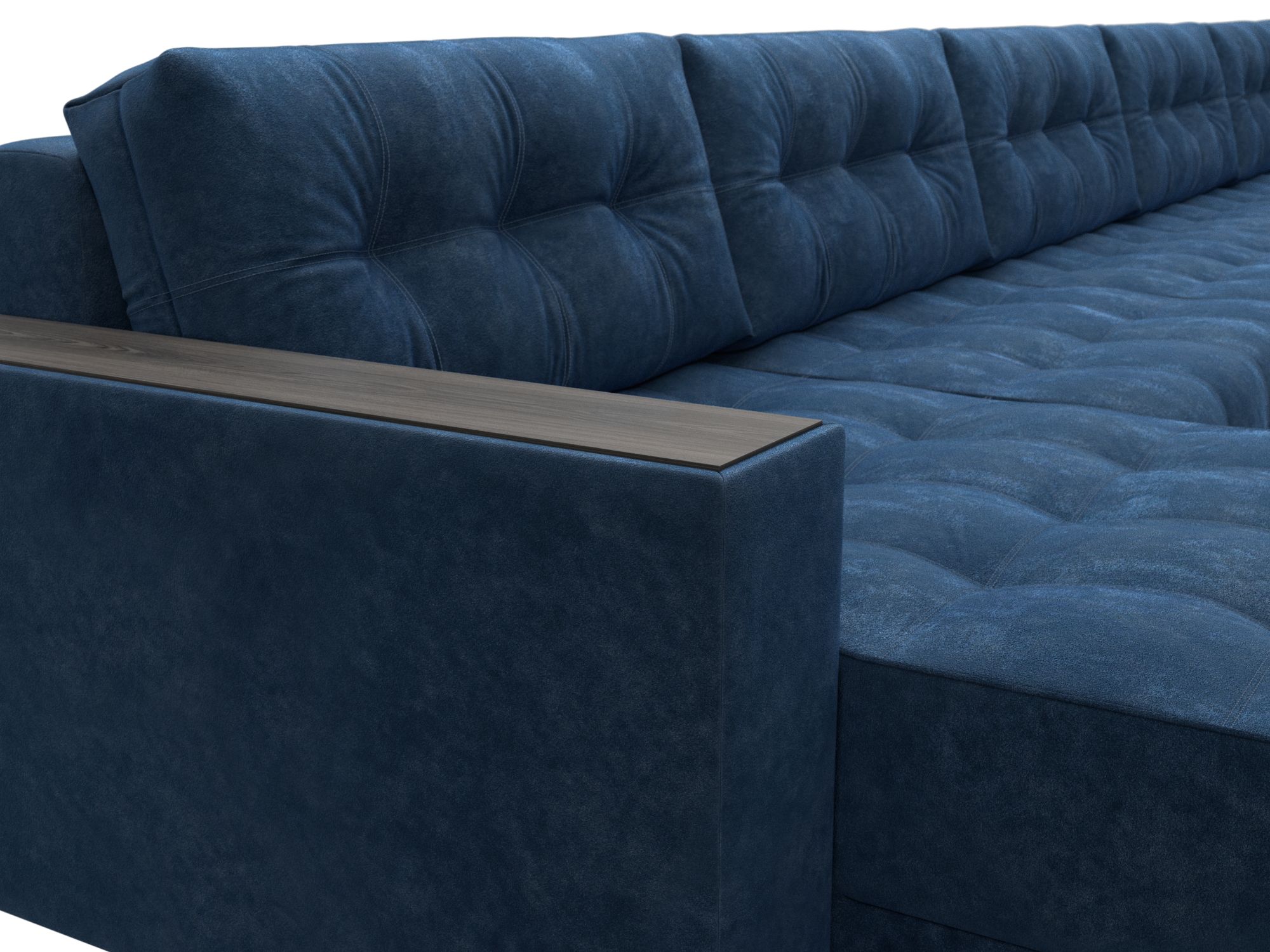 Диван П-образный с декором Лига-049 НПБ Мегалонг, BRUT 11 синий, Велюр
