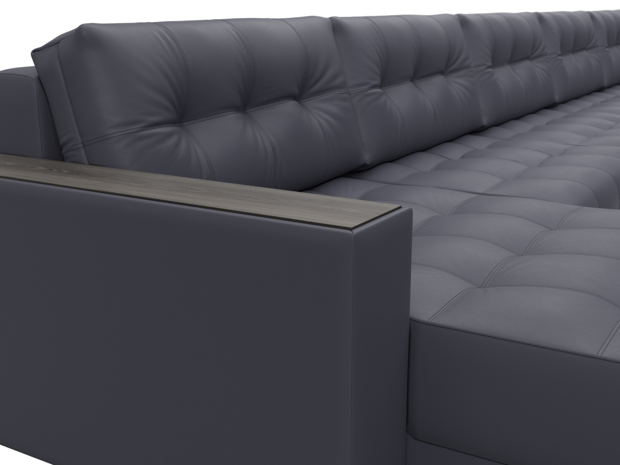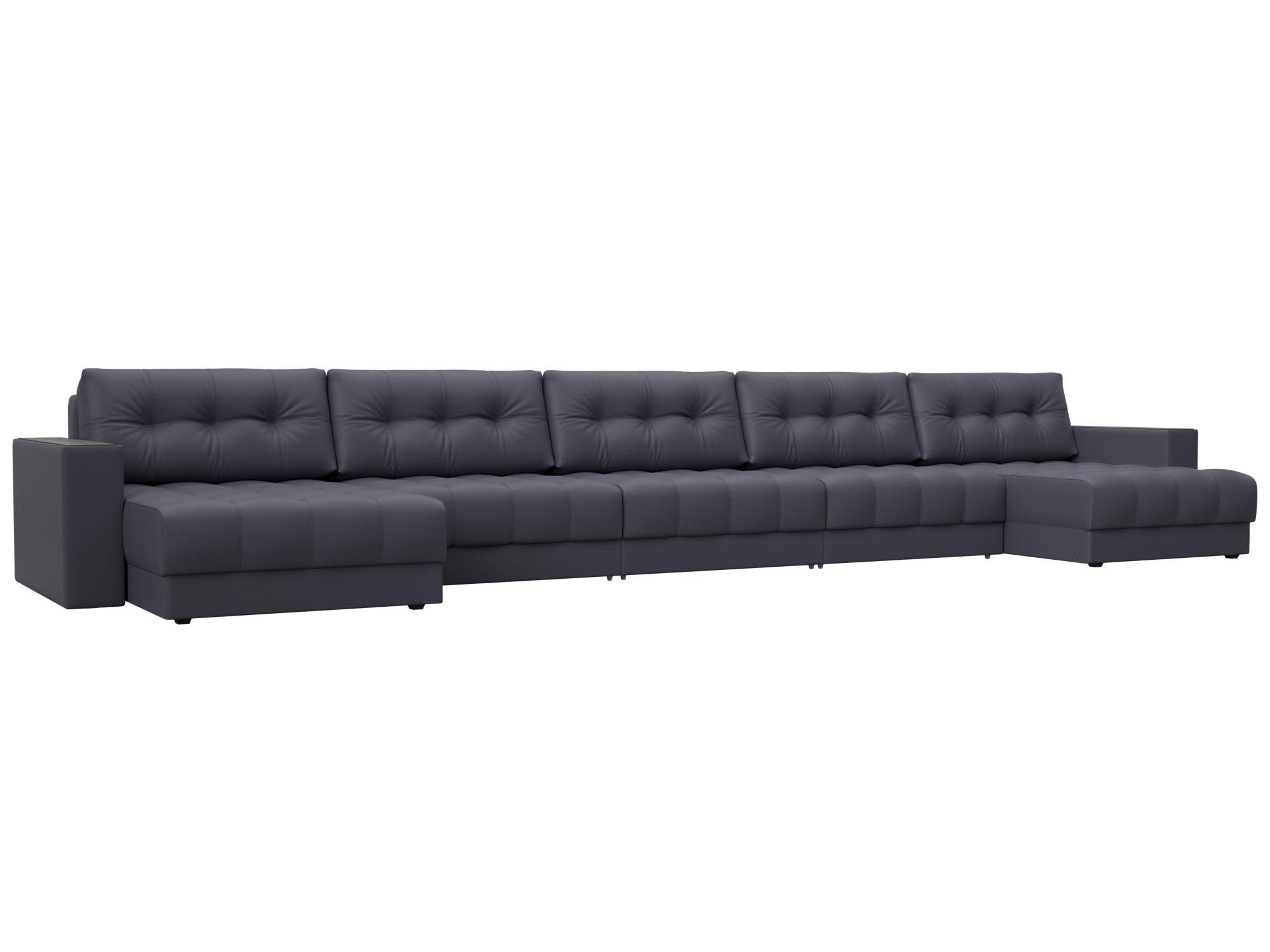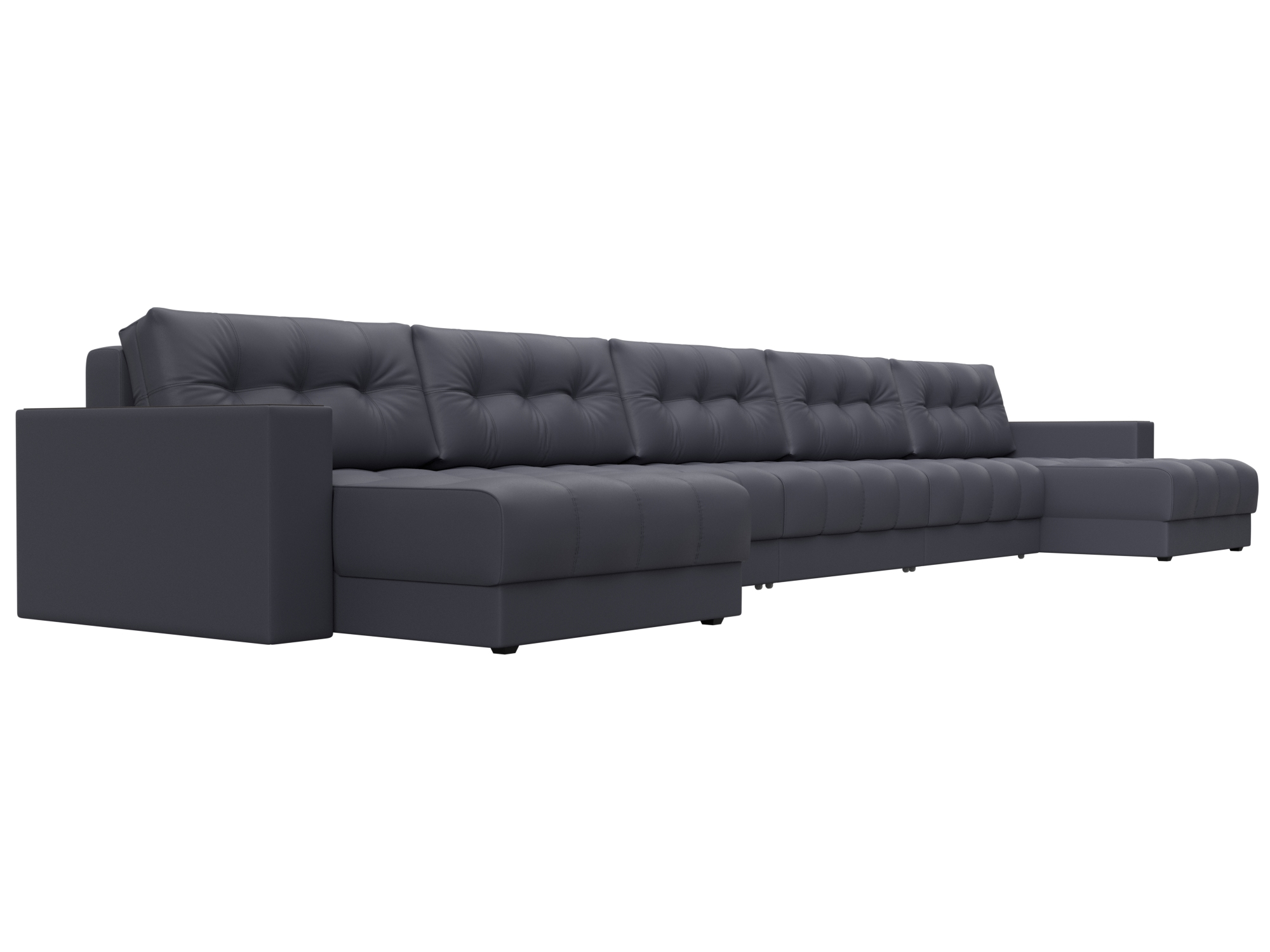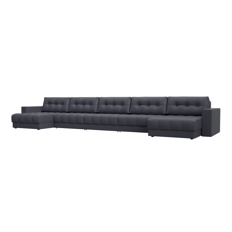 Диван П-образный с декором Лига-049 НПБ Мегалонг, GRIFON 15 серый, Экокожа